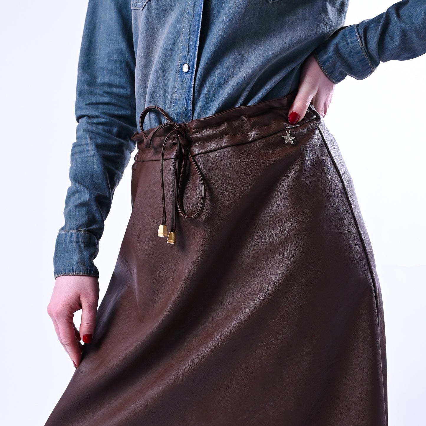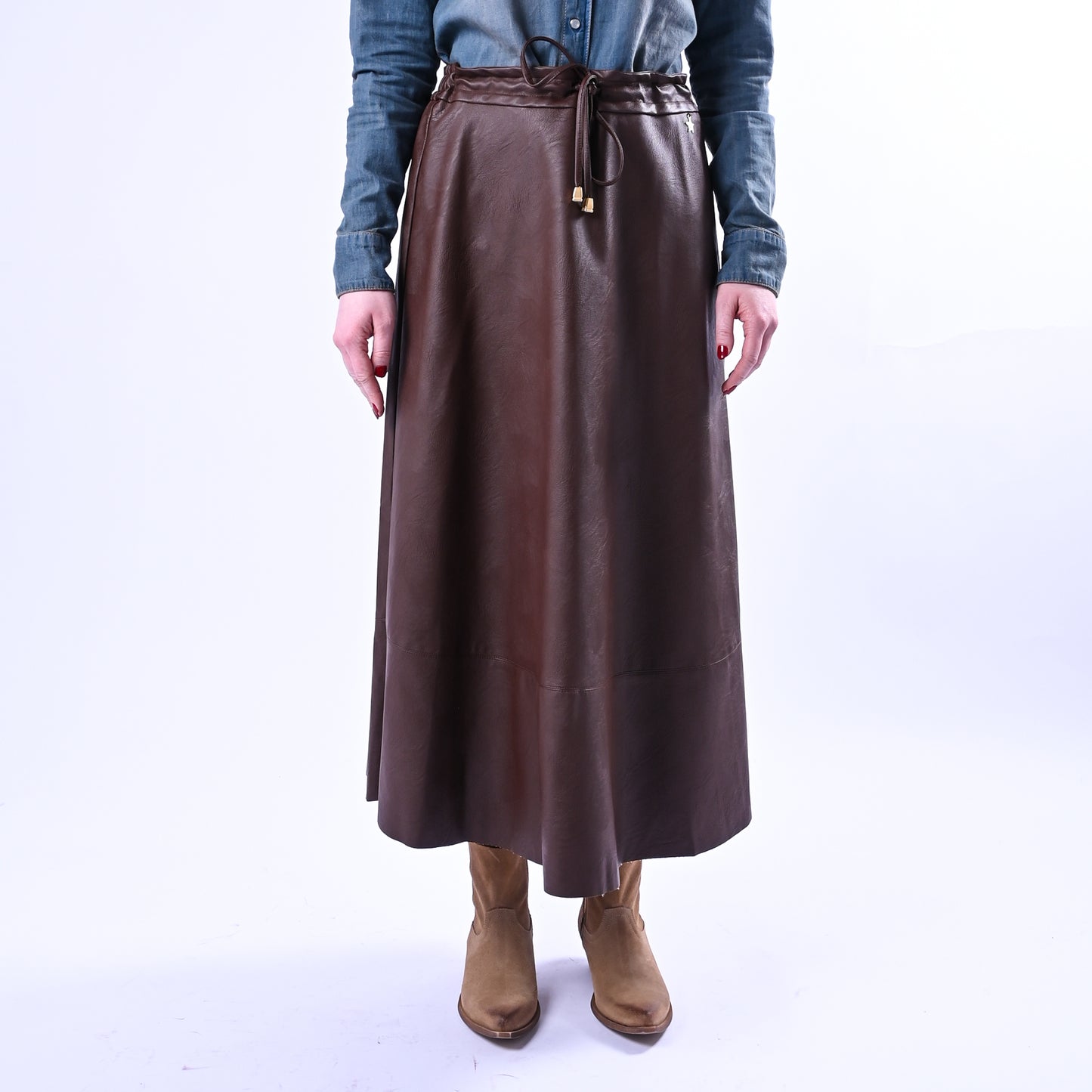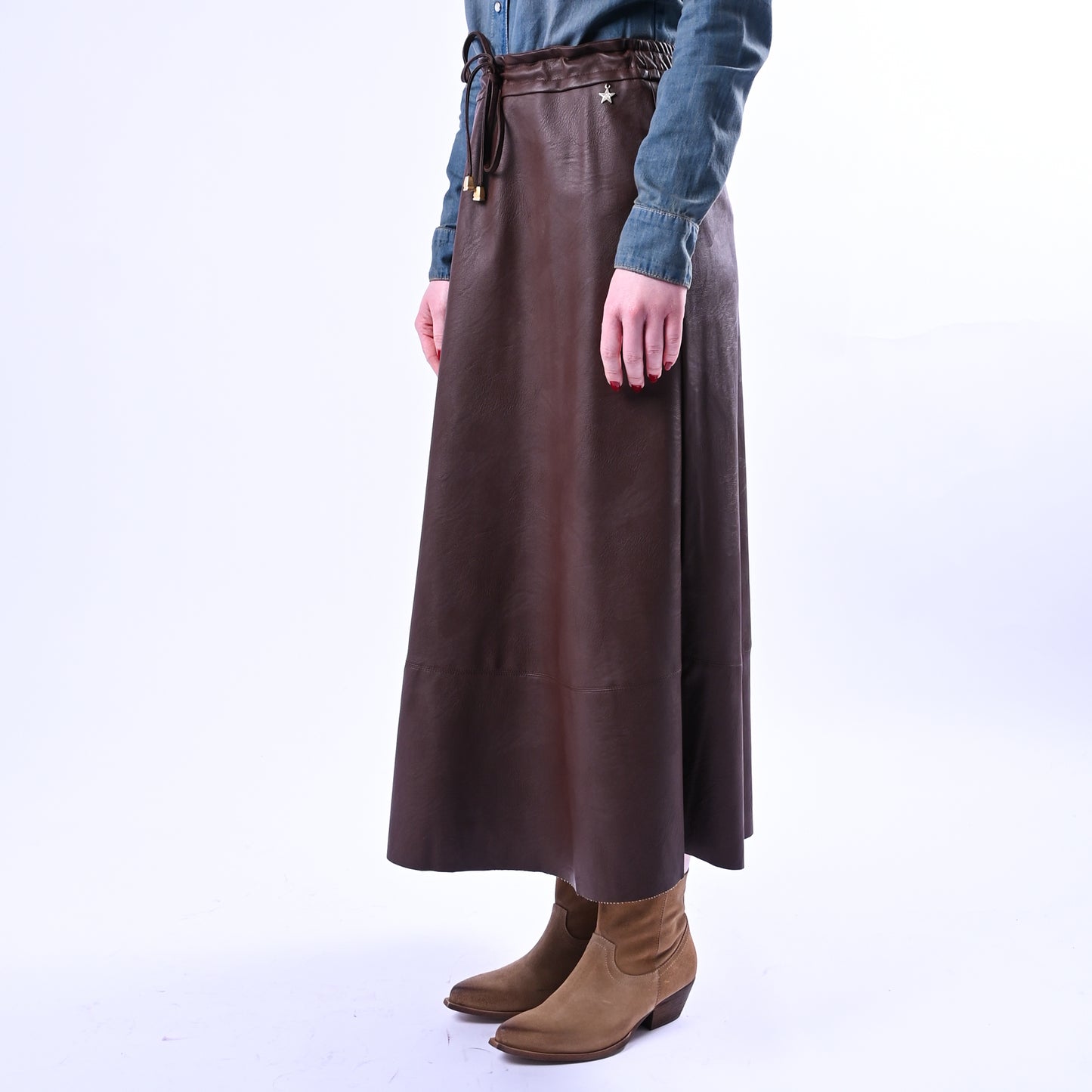 SOUVENIR - GONNA MIDI COULISSE IN ECOPELLE ART.S39M0798 - CIOCCOLATO