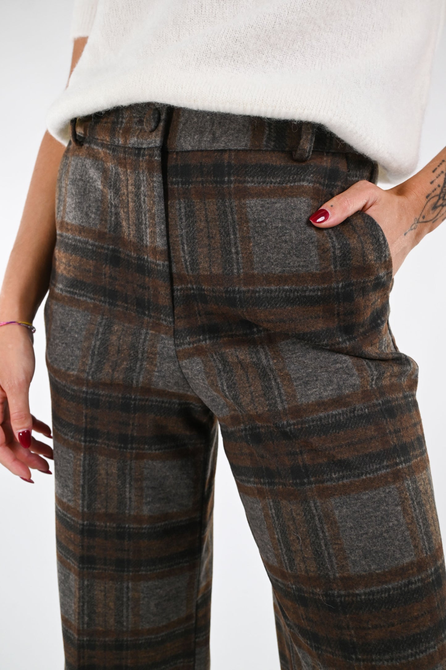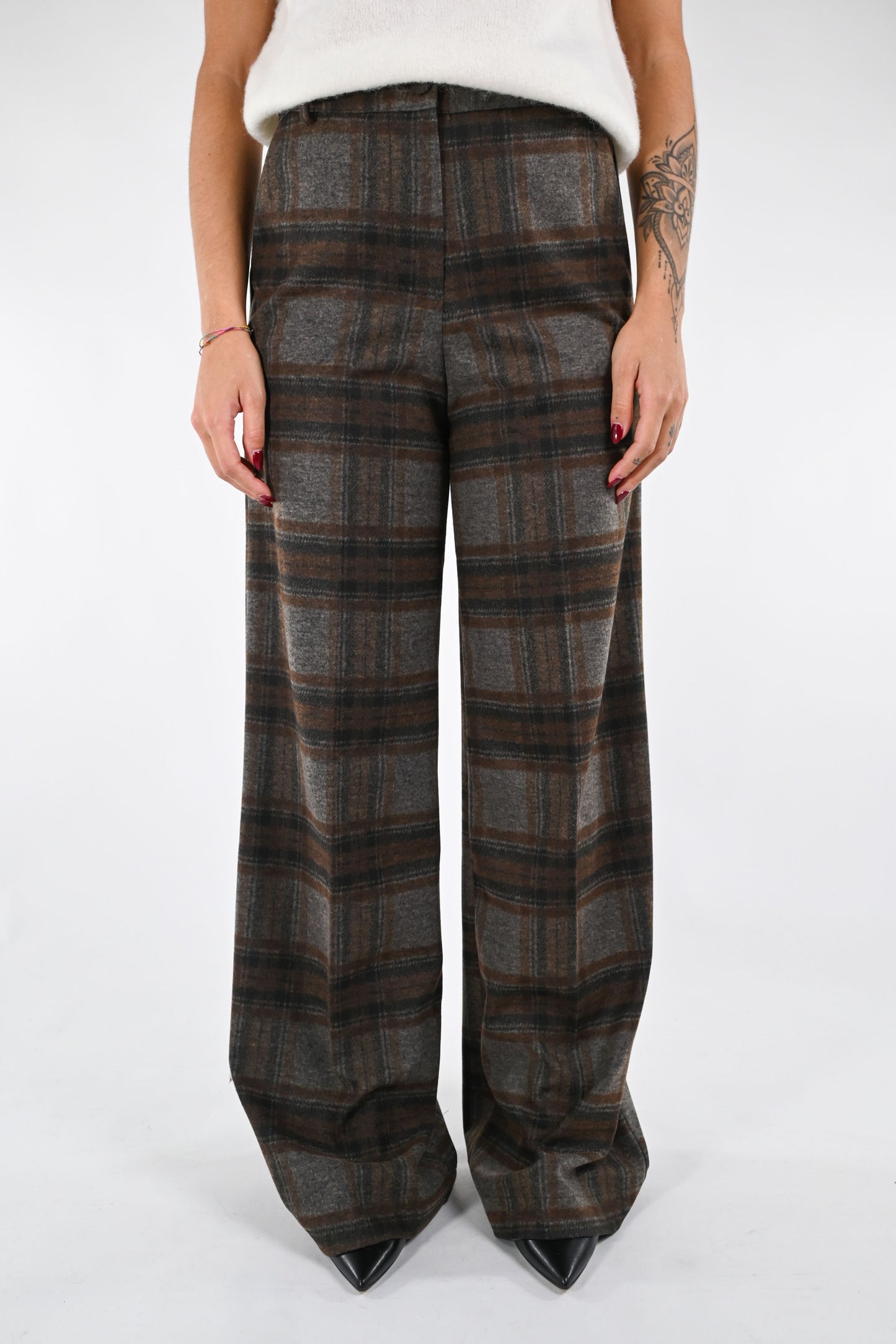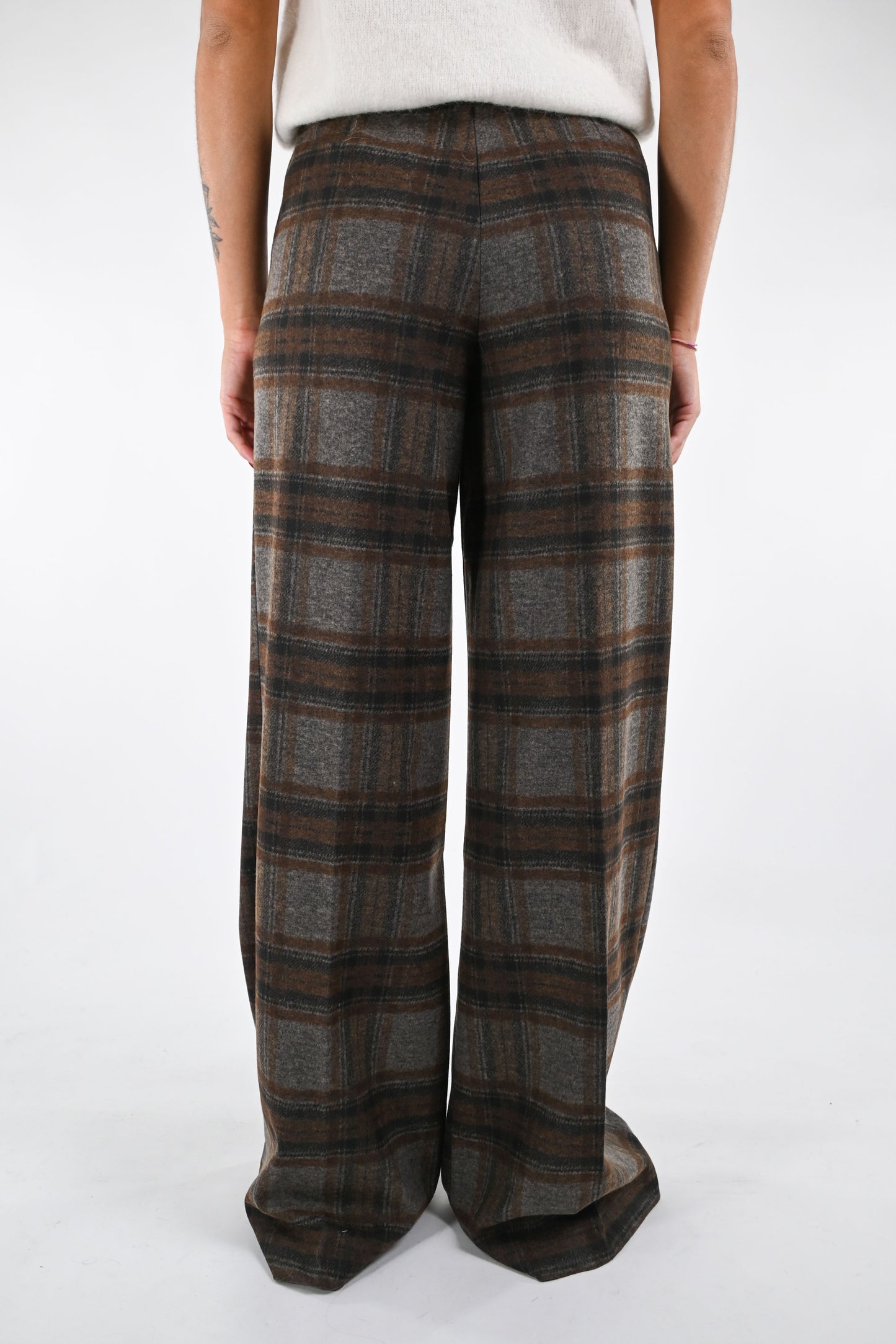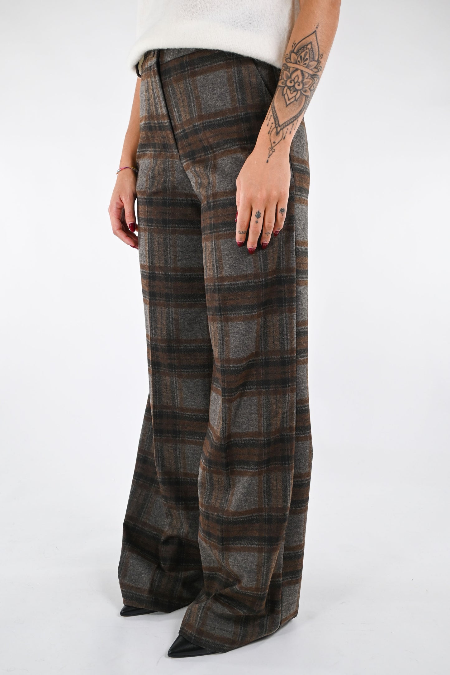 HAVEONE - PANTALONE PALAZZO FLANELLA ART.PMI-P241 - CHECK MORO/TABACCO