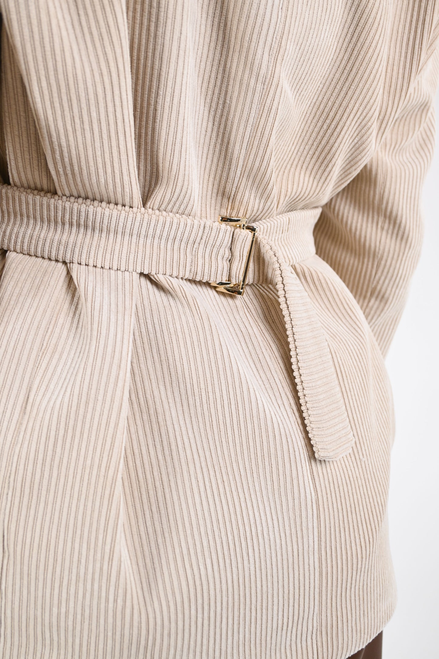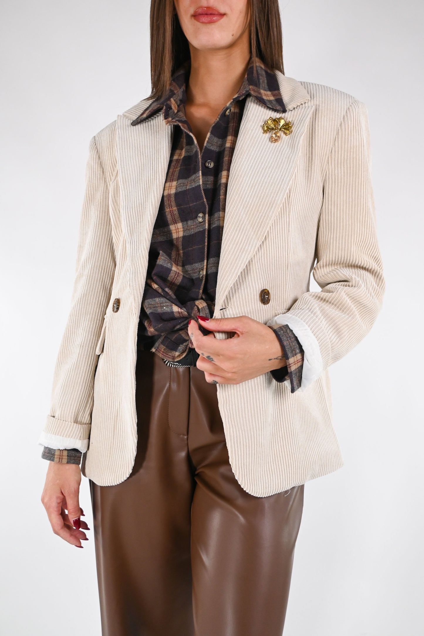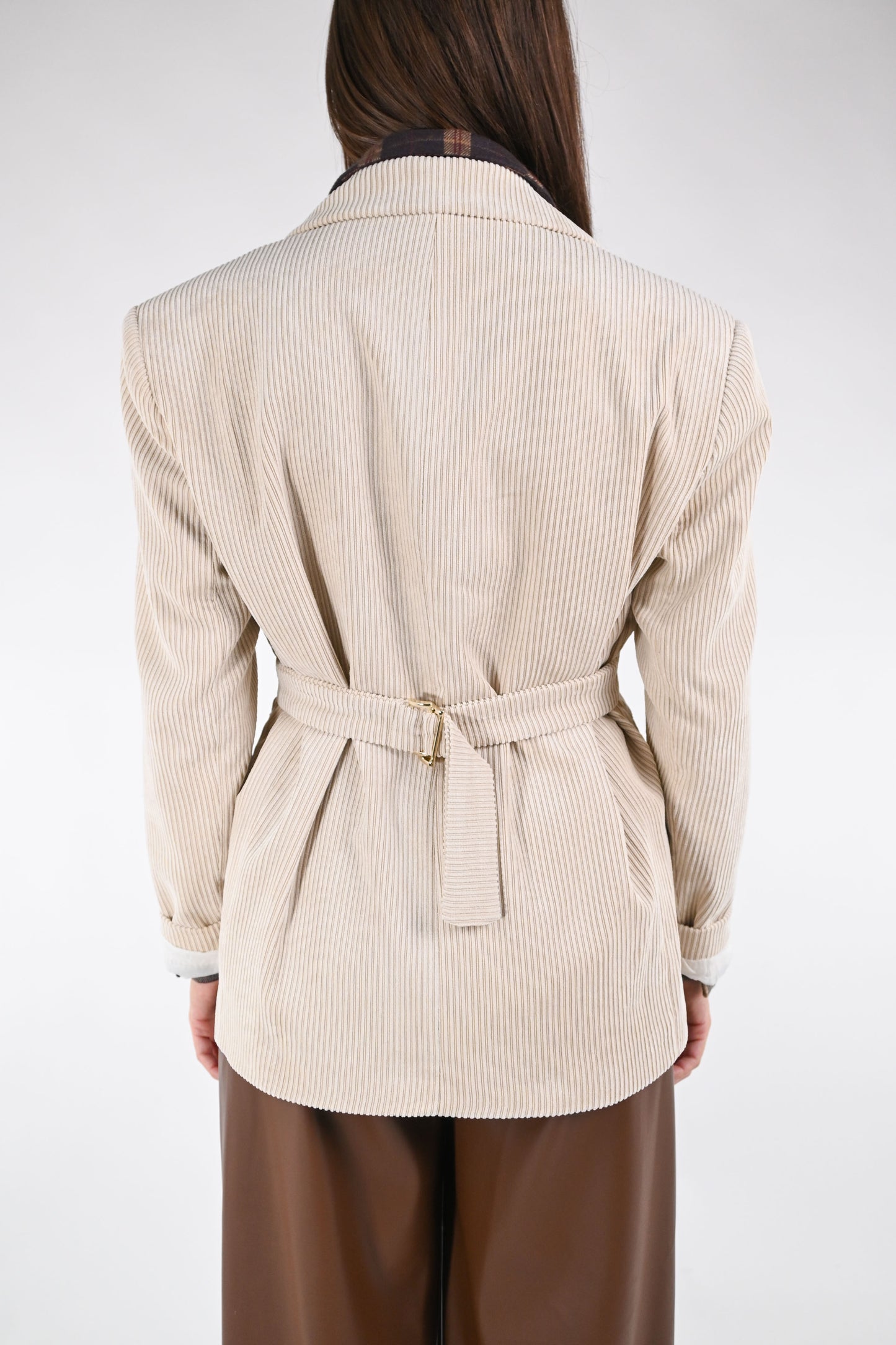 Giacca doppiopetto in velluto a coste, con martingala dietro, foderata, colore panna