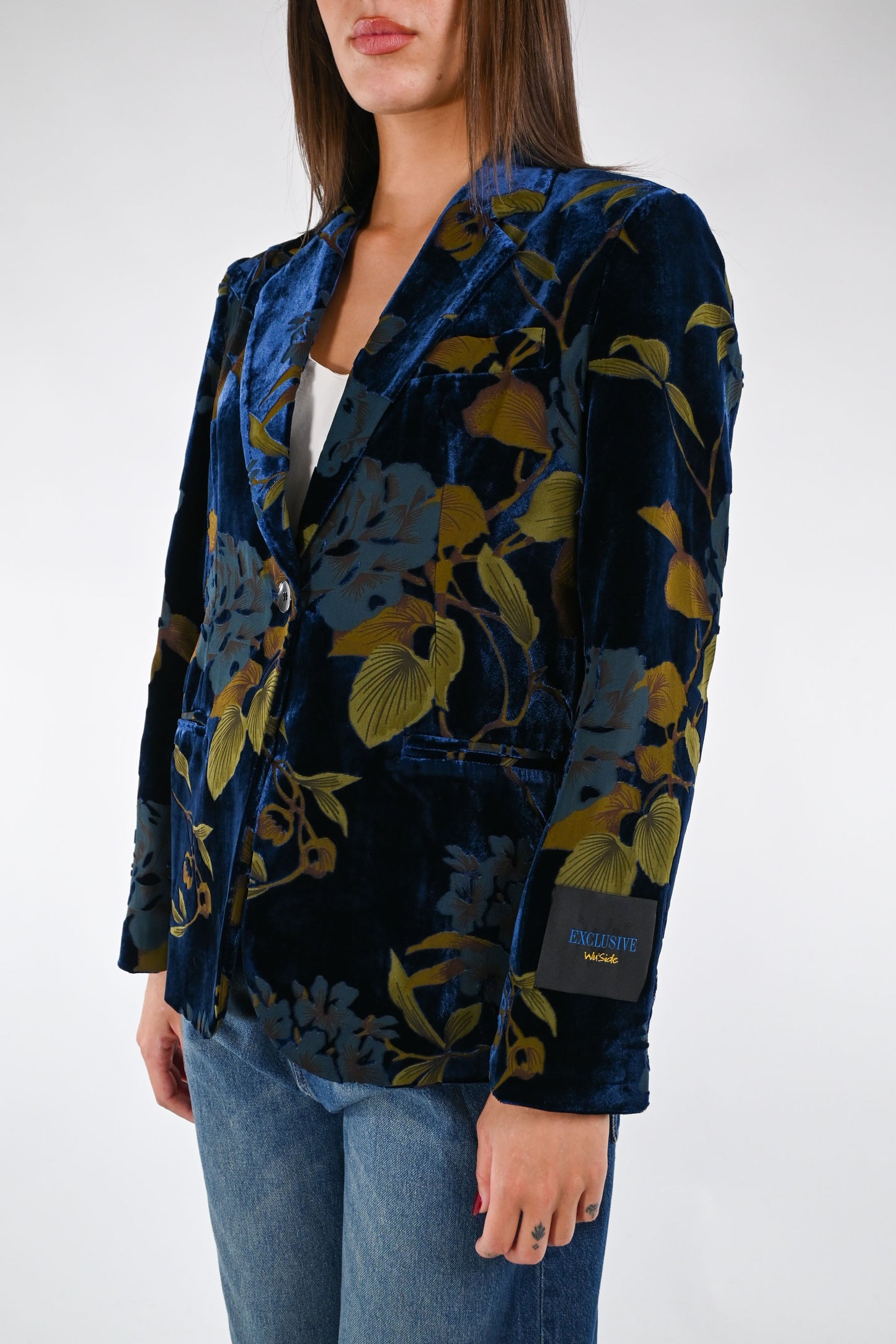 WU'SIDE - GIACCA VELLUTO DEVORE' FLOREALE ART.25650 - BLU