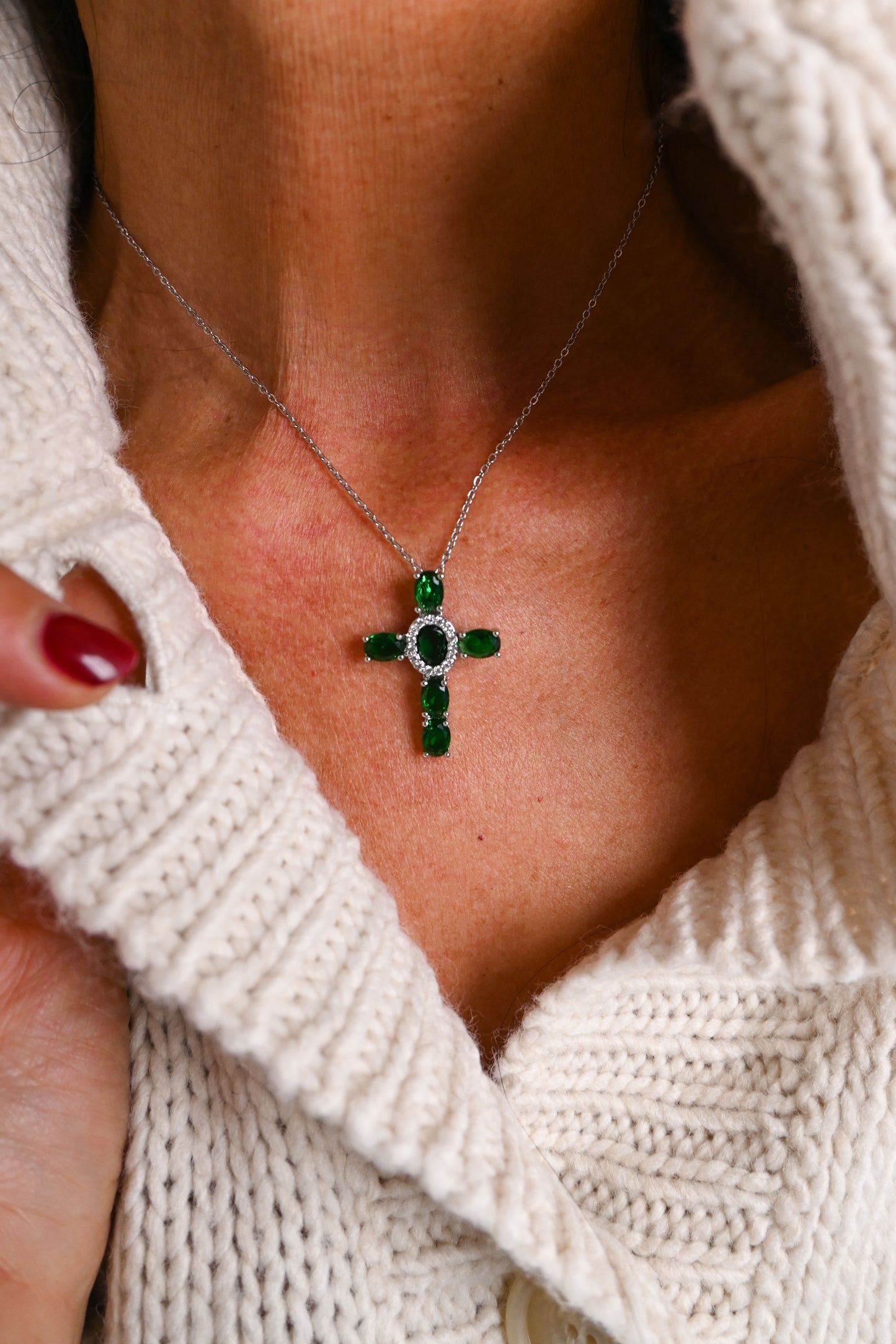 B LOVE - COLLANA CROCE STRASS ART.C0117 - SMERALDO/SILVER