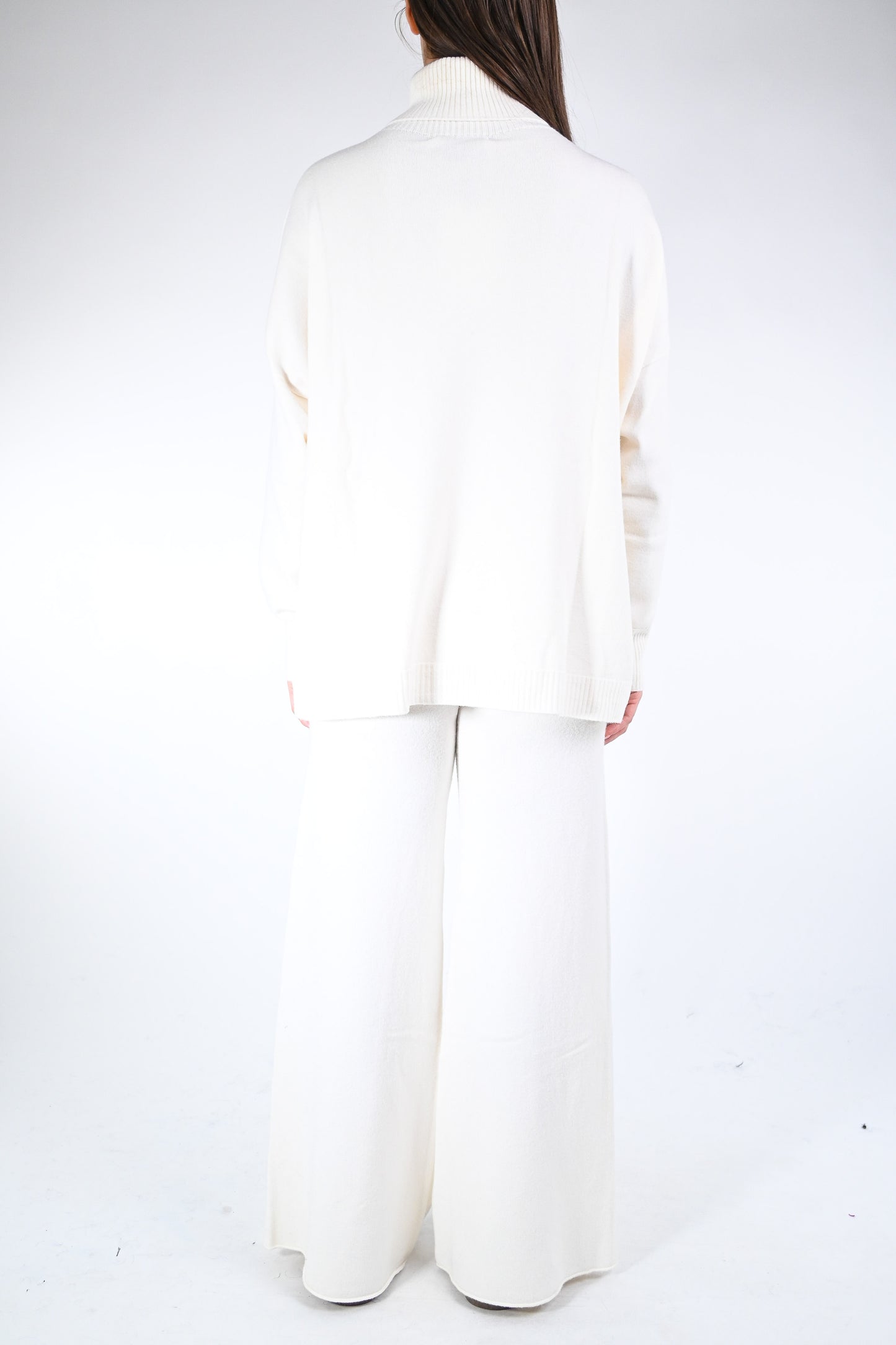Prezzo normale €54,50Completo in maglia dolcevita con pantalone palazzo con coulisse in vita, elasticizzato, colore panna