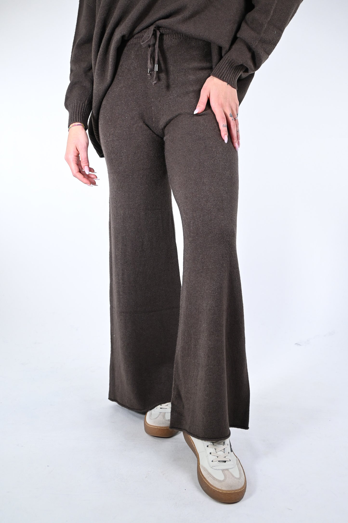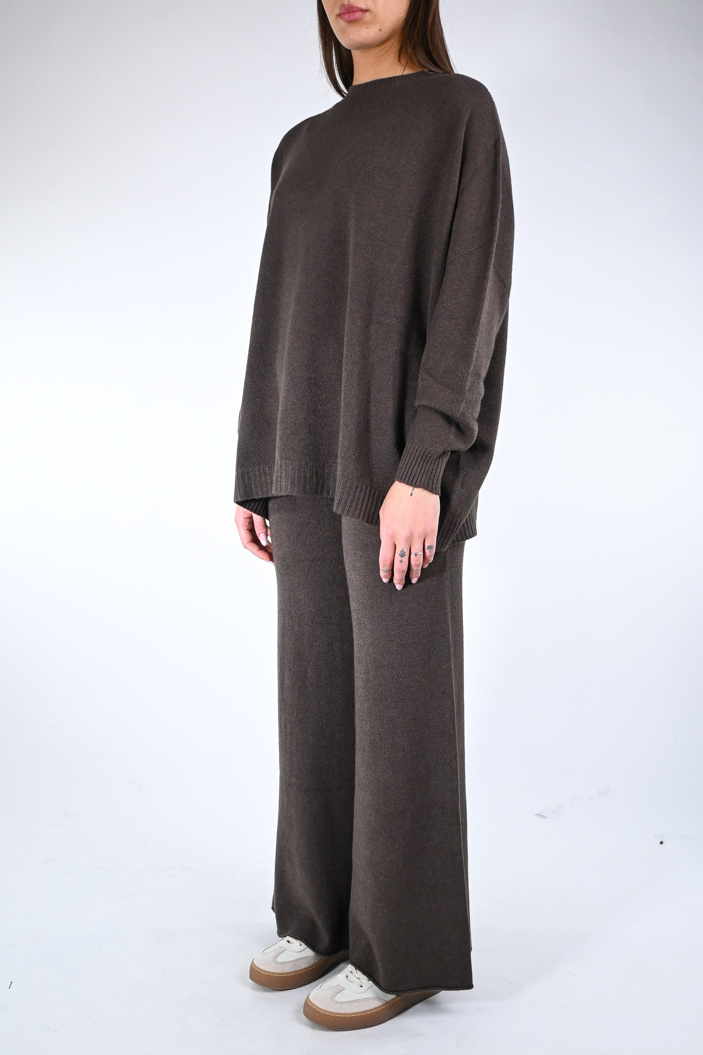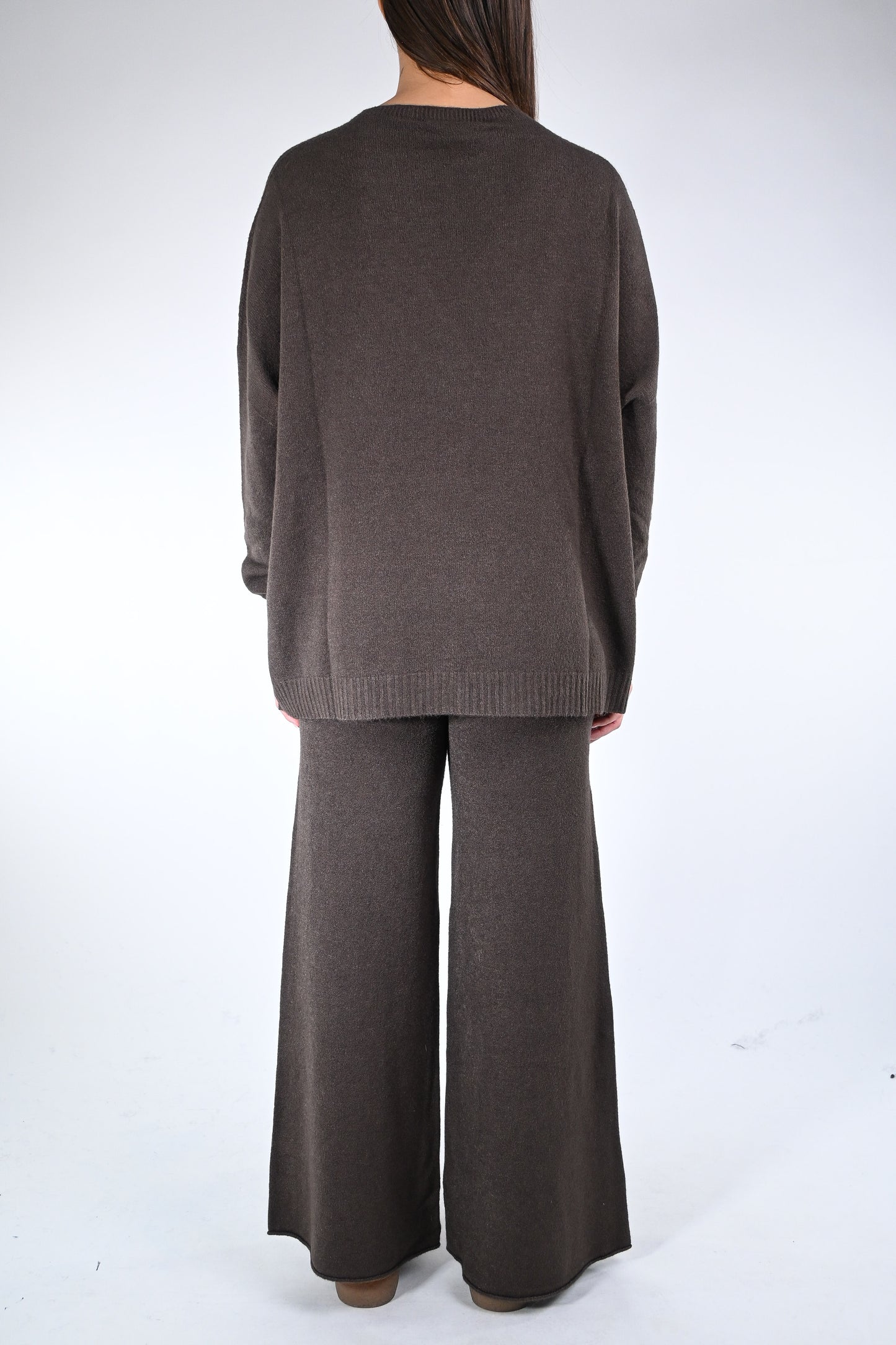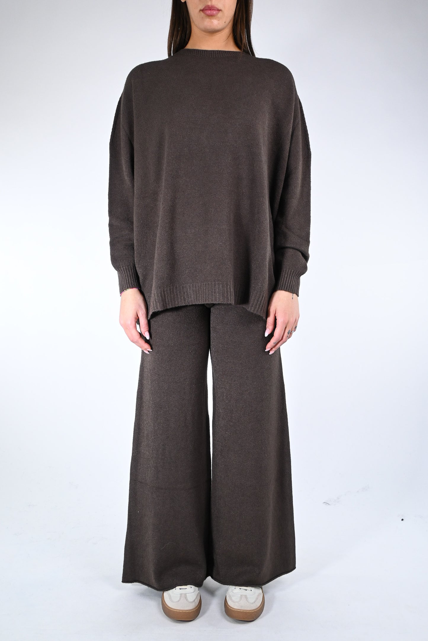 Prezzo normale €54,50Completo in maglia girocollo con pantalone palazzo con coulisse in vita, elasticizzato, colore moro