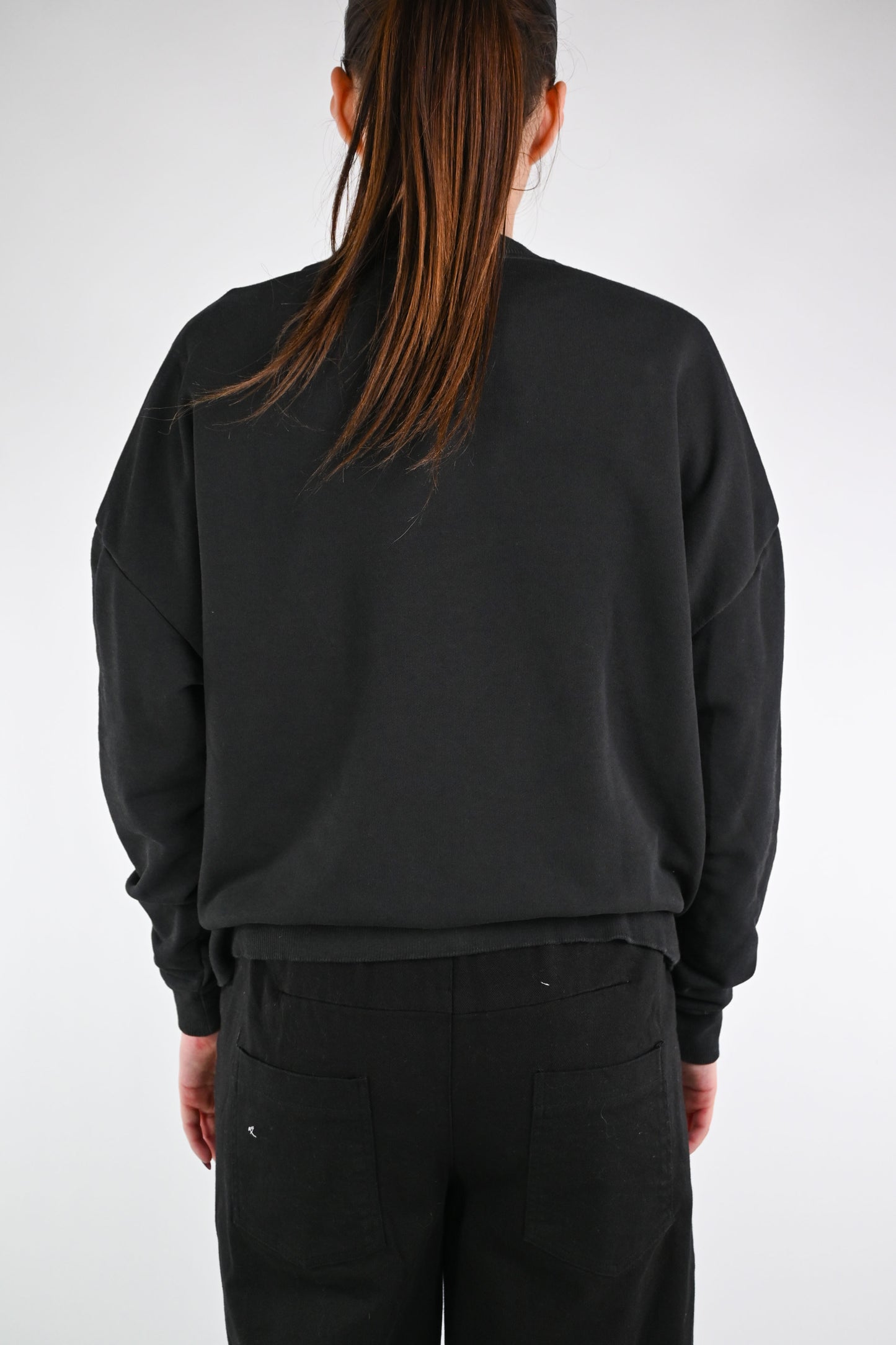 Felpa over stampa Never, con spalla scesa, garzata, tinta freddo, color Grigio
