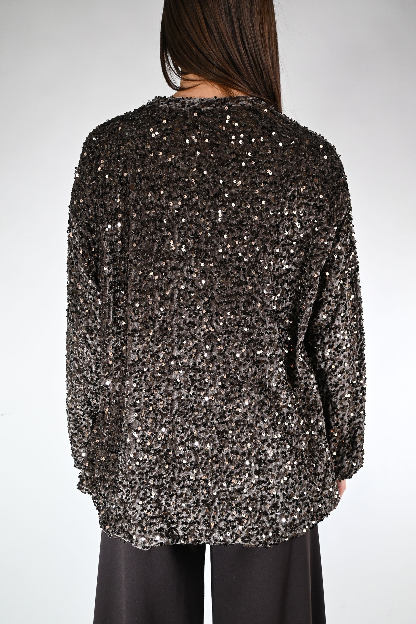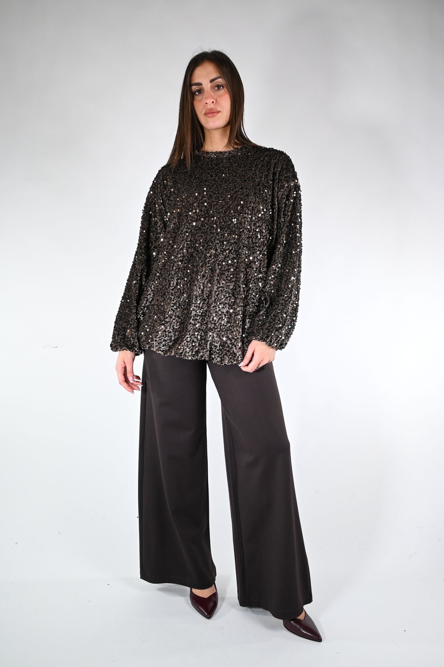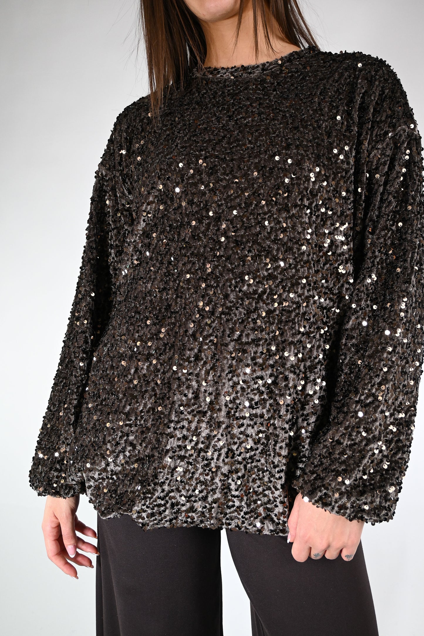 Prezzo normale €49,50Maglia/felpa over con paillettes, foderata, rimborsata sul fondo, colore moro