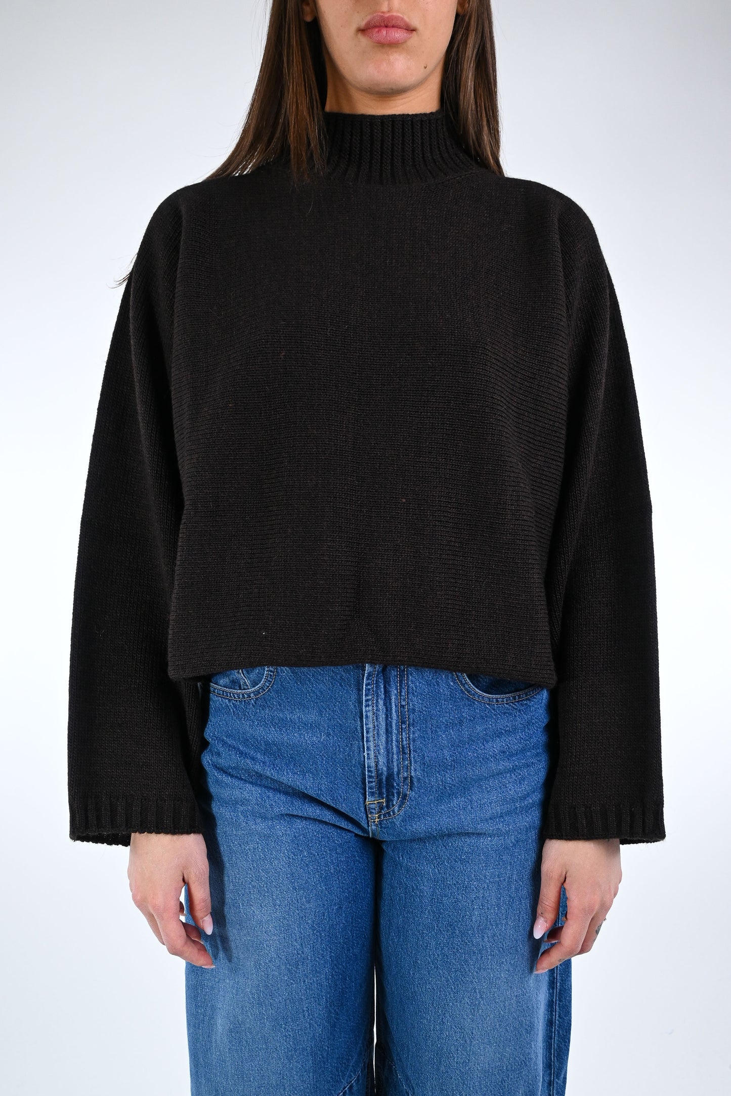 Prezzo normale €44,50Maglia over a scatola con collo a cratere, con manica larga, colore moro