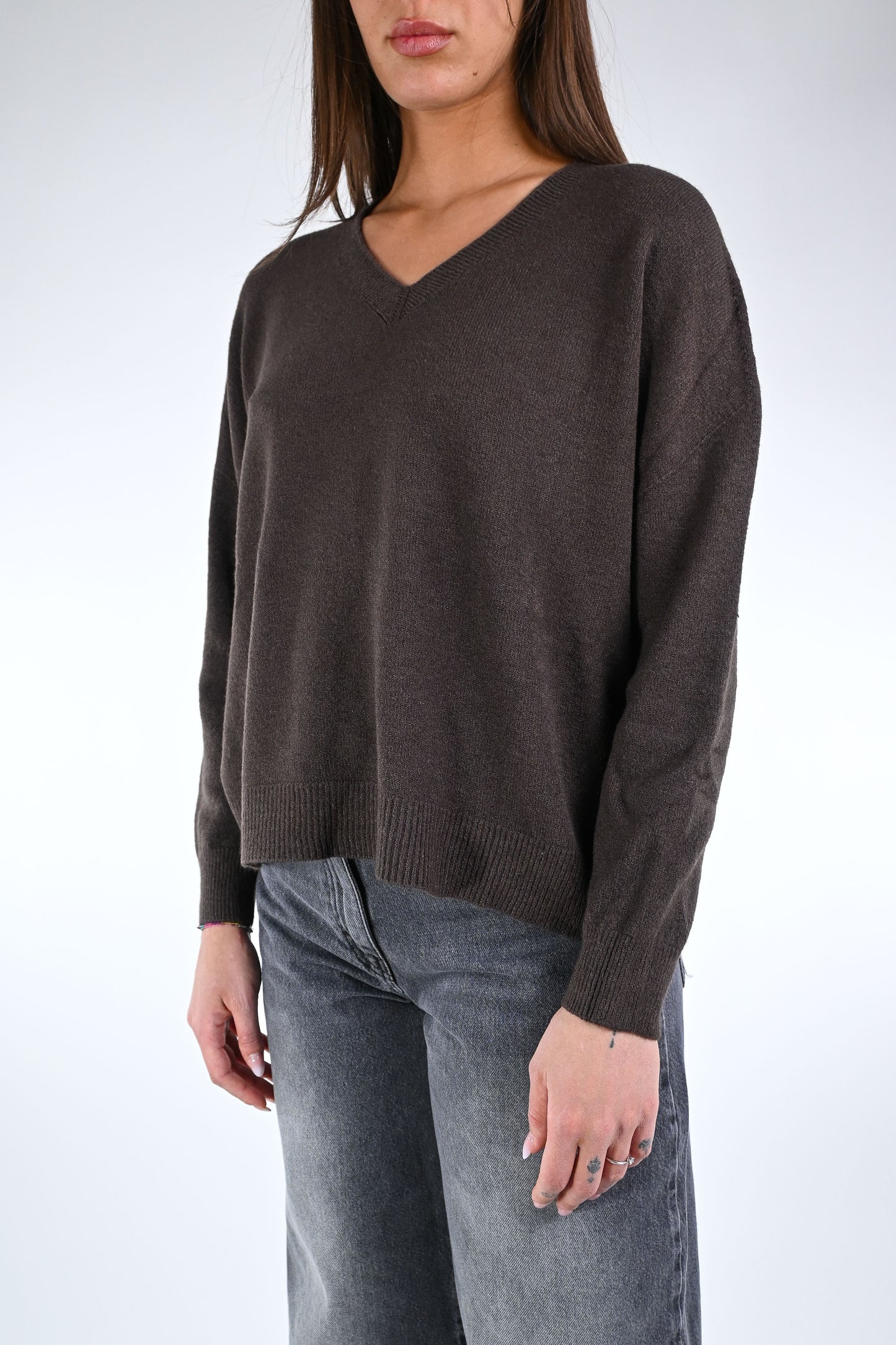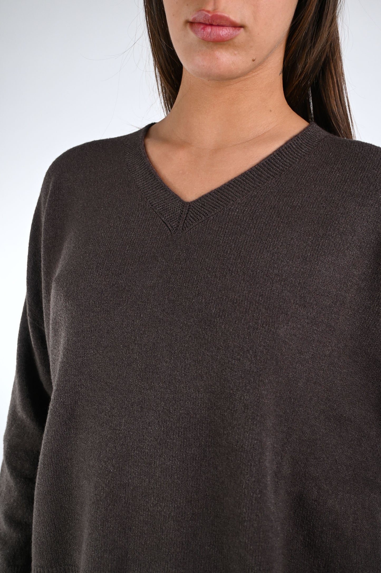 HAVEONE - MAGLIA OVER SCOLLO V ART.MMG-P353 - CACAO