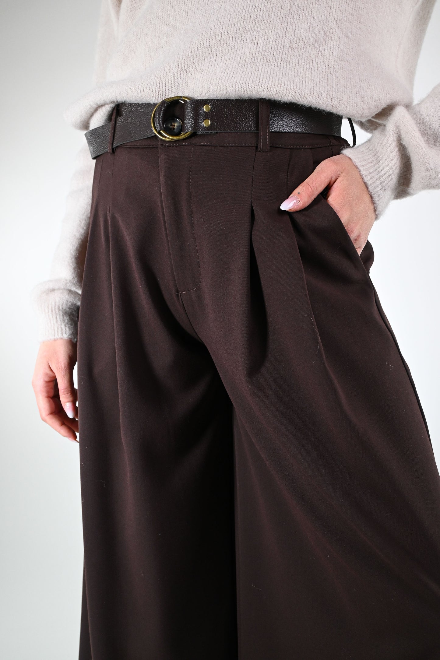 Prezzo normale €40,75Pantalone largo, con cintura, con pinces, con mezzo elastico in vita, tasche, color Moro