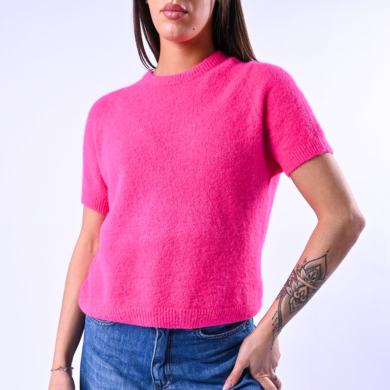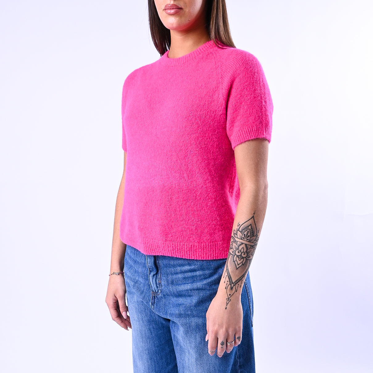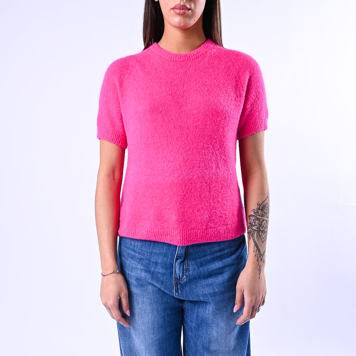 Prezzo normale €22,50Maglia girocollo baby alpaca, manica corta, colore Fuxia