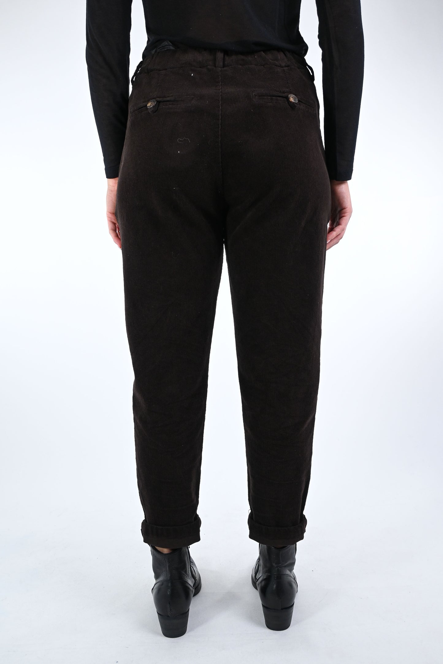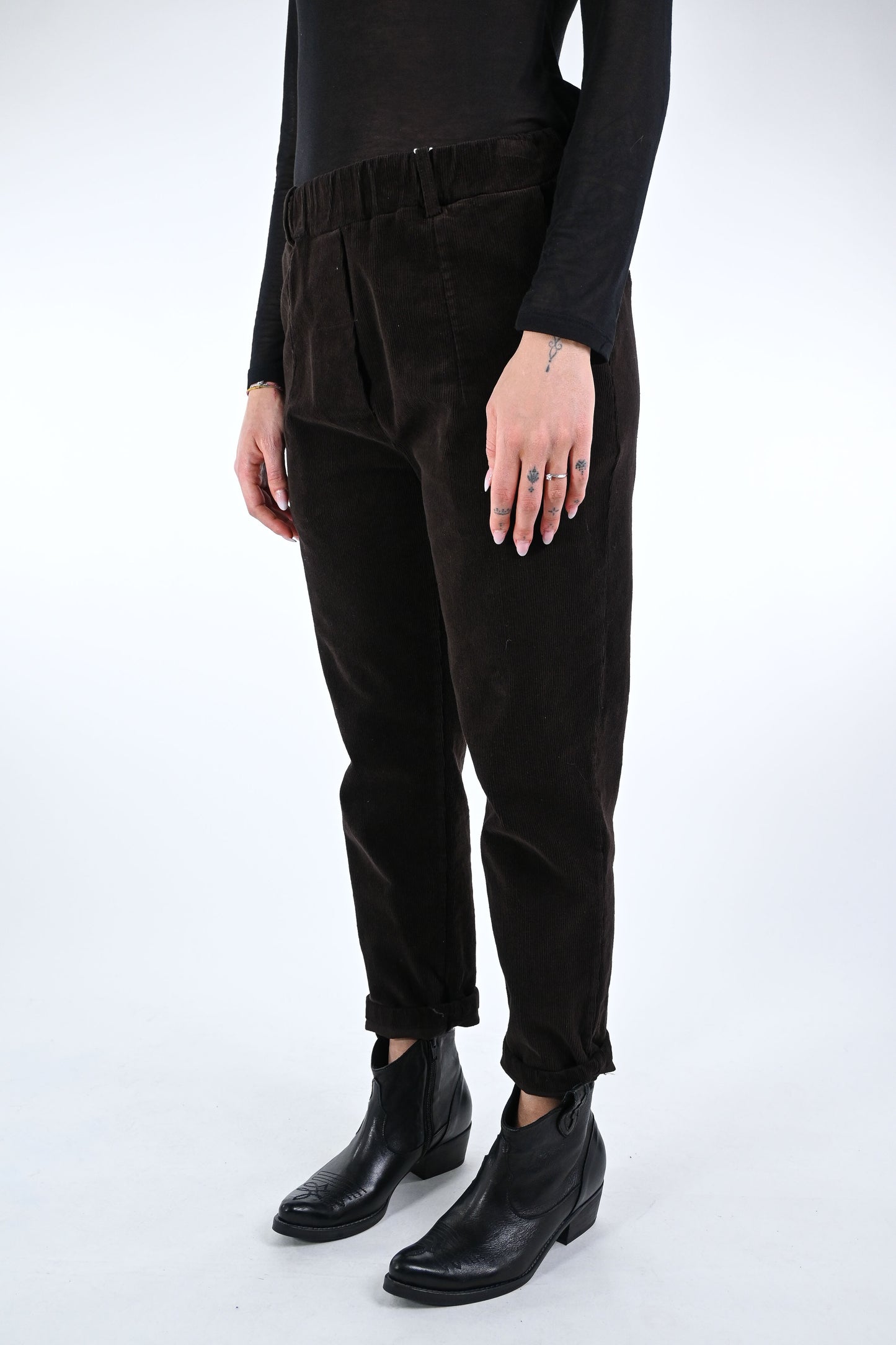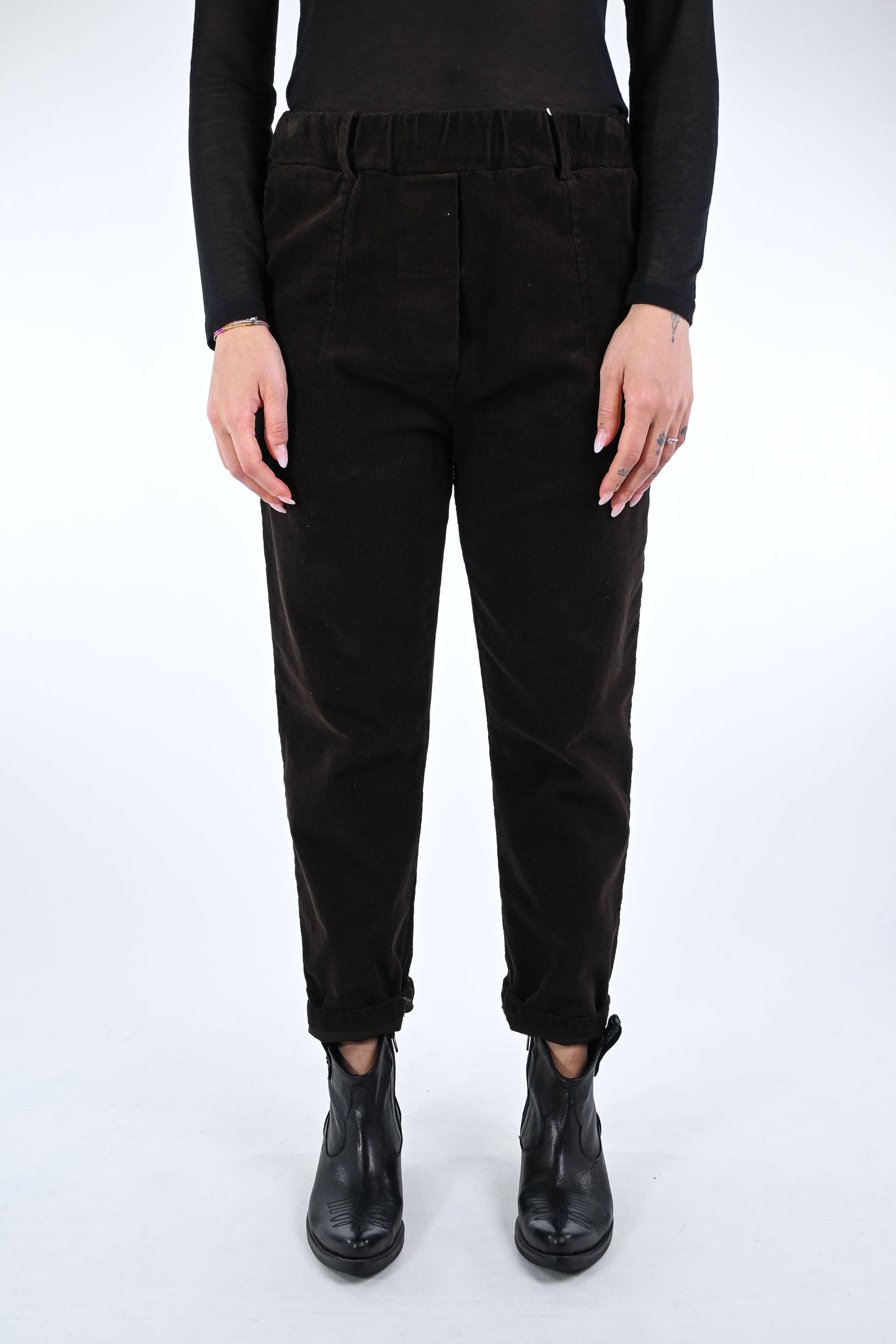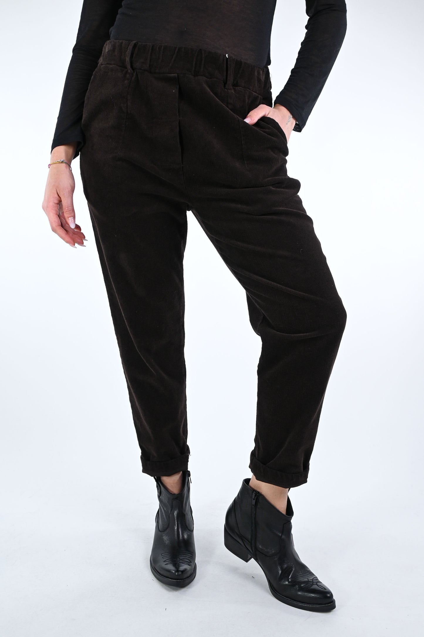 Prezzo normale €32,00Pantalone baggy in velluto lavato, con mezzo elastico in vita, colore Moro