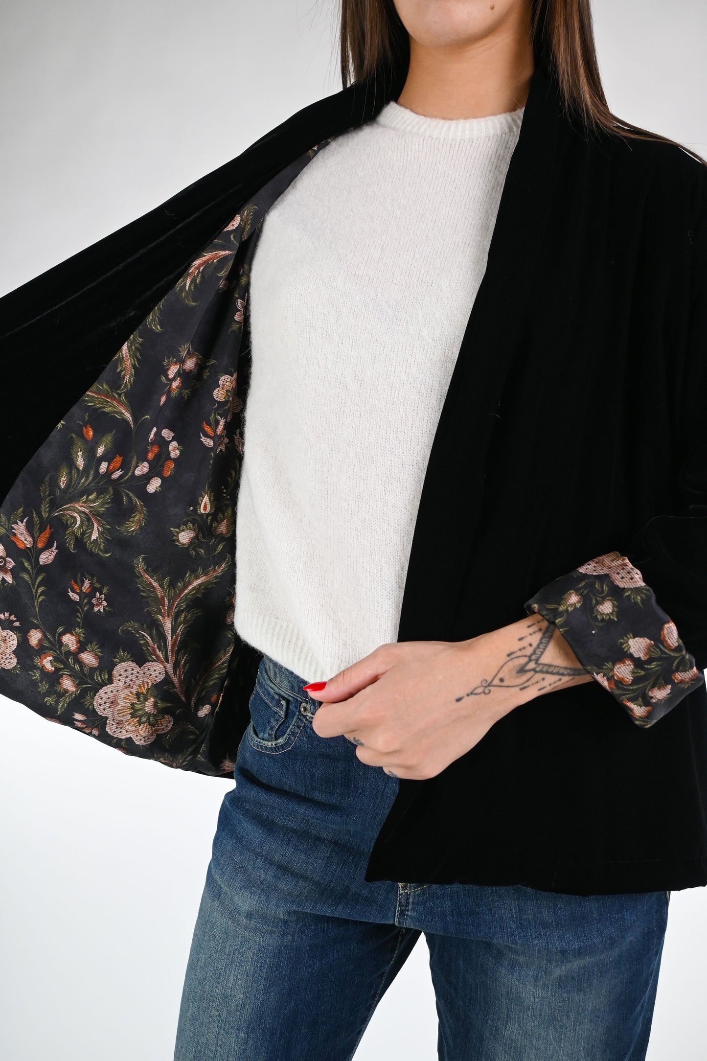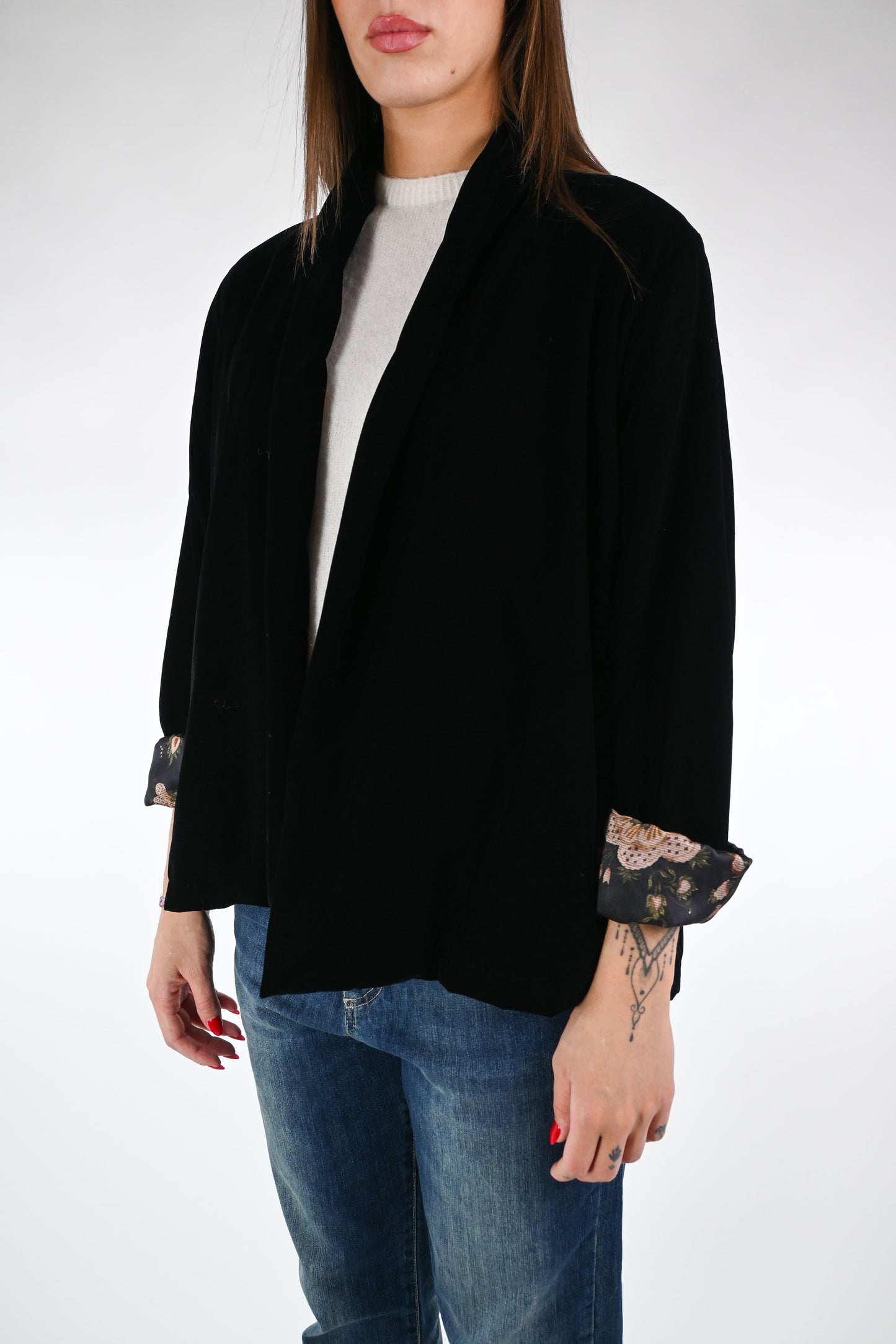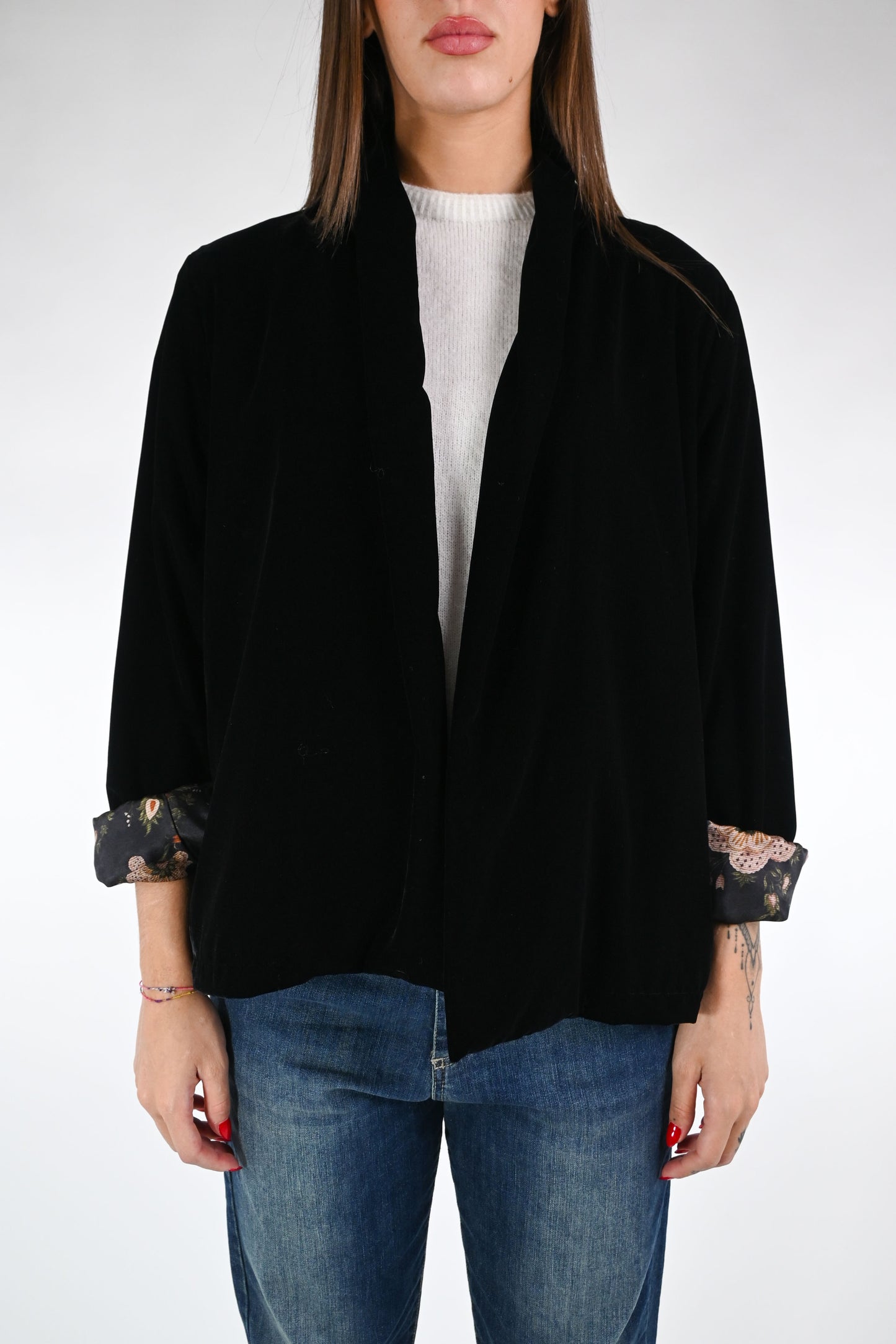 WU'SIDE - GIACCA KIMONO VELLUTO LISCIO ART.25698 - NERO