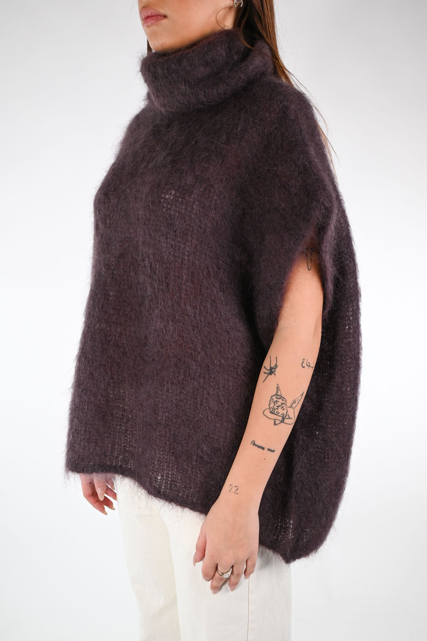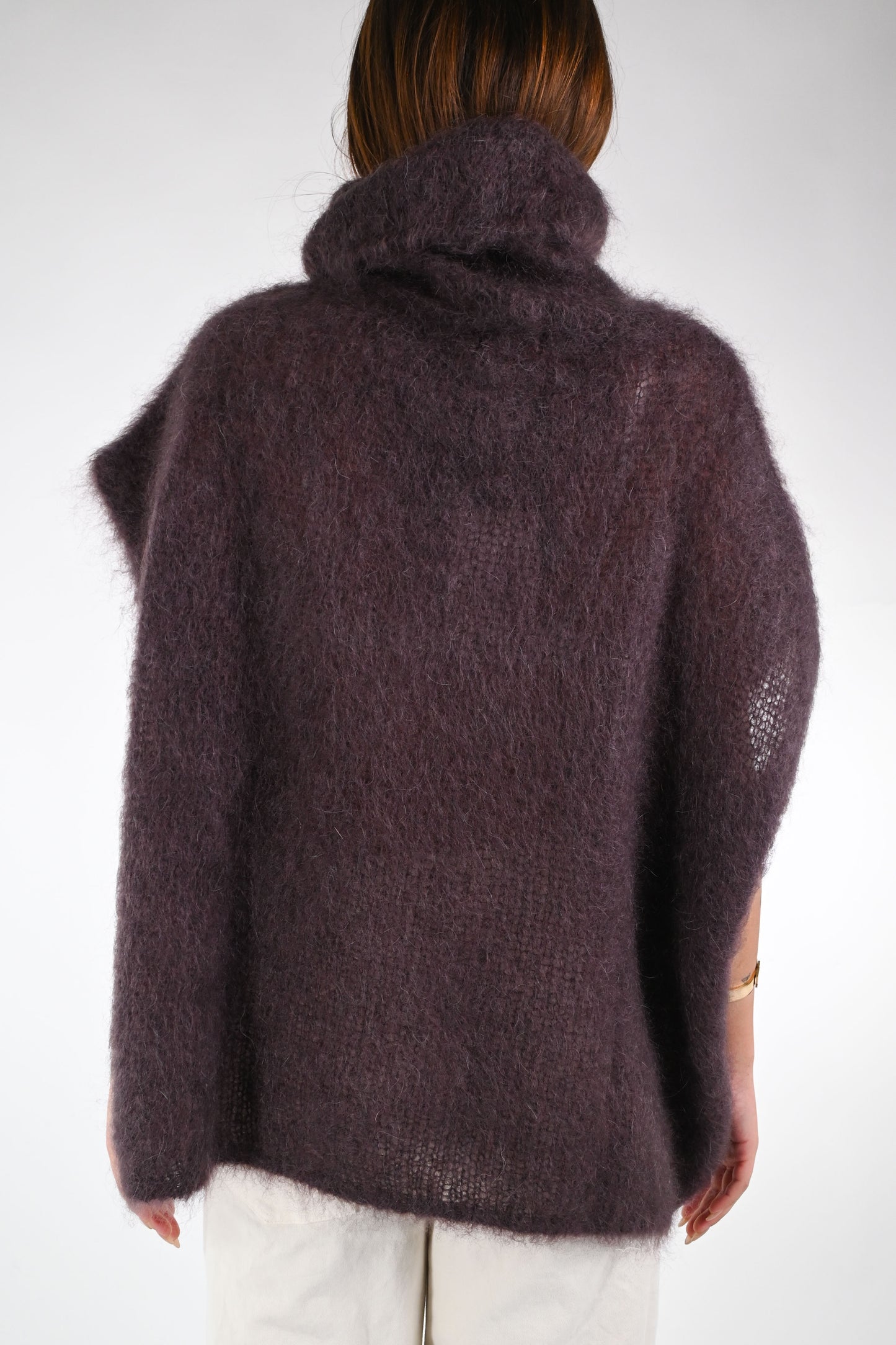 Gilet over con collo ciambella in kid mohair, colore Moro