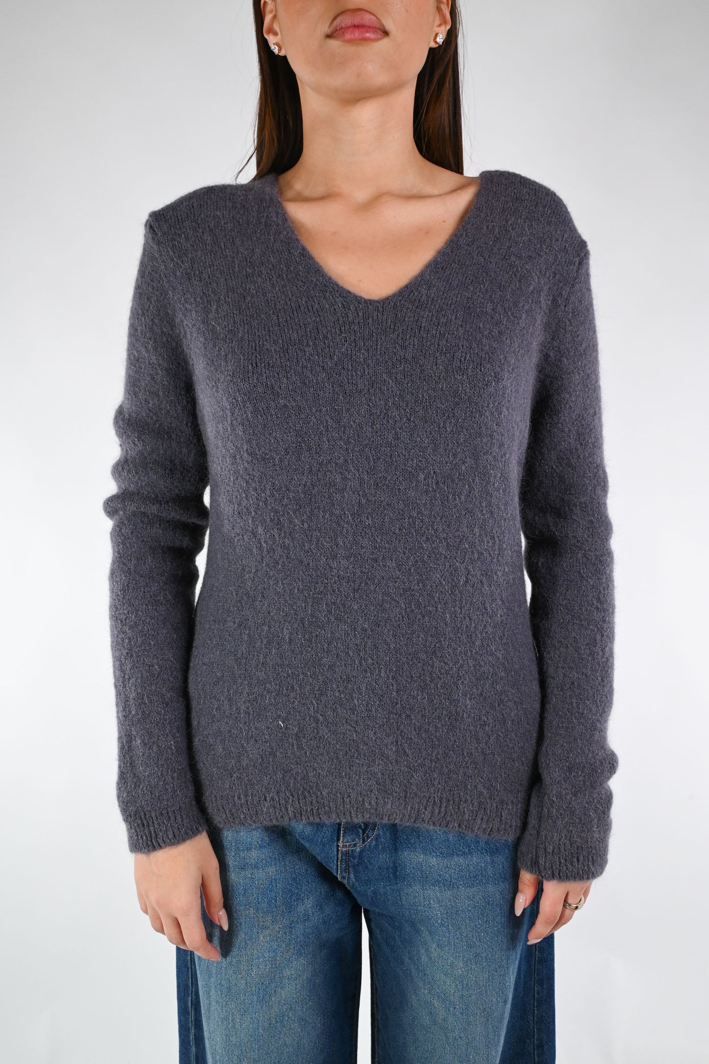 B LOVE - MAGLIA BABY ALPACA SCOLLO V ART.SOFT/7106 - GRIGIO