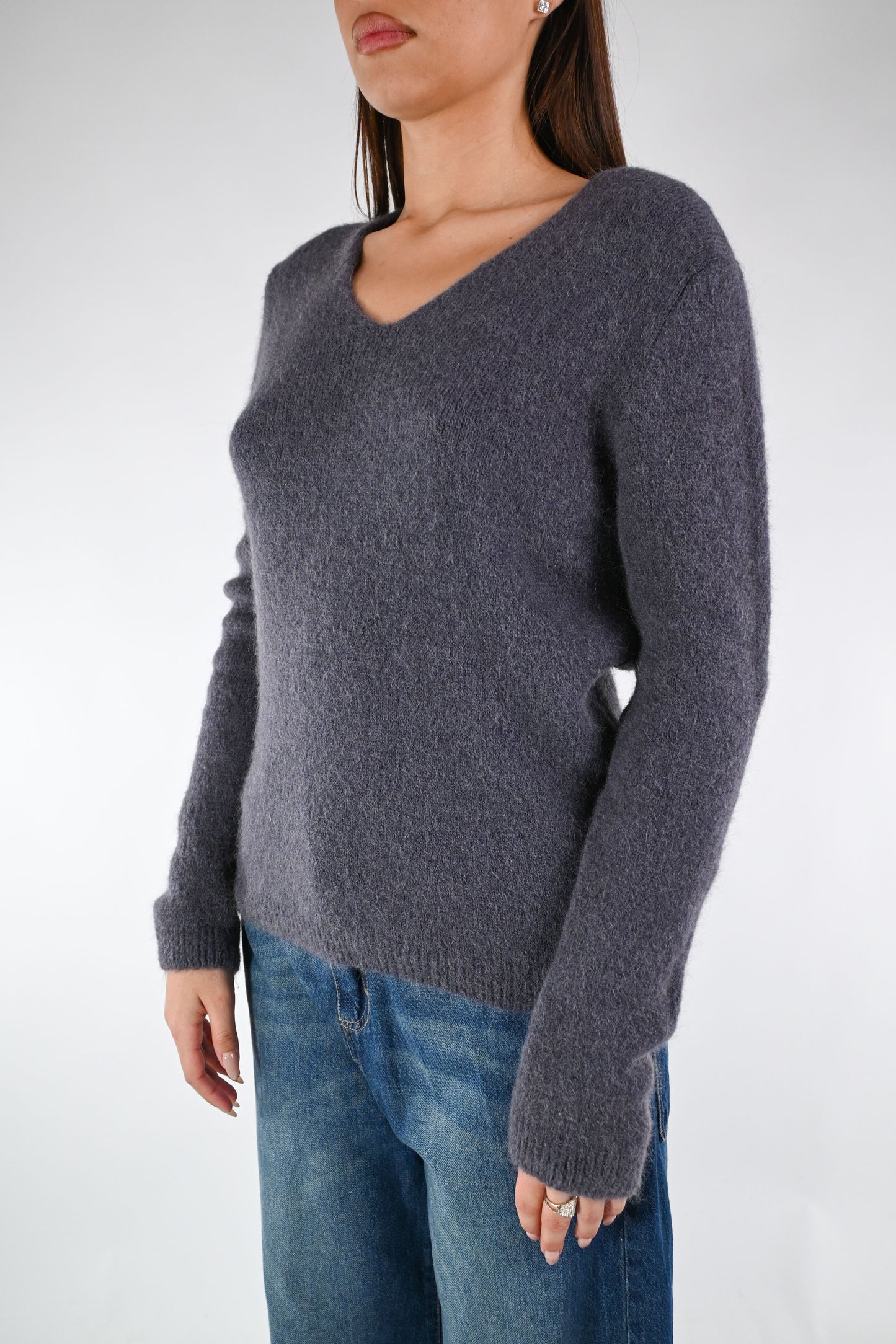 Maglia scollo V baby alpaca, manica lunga, colore grigio