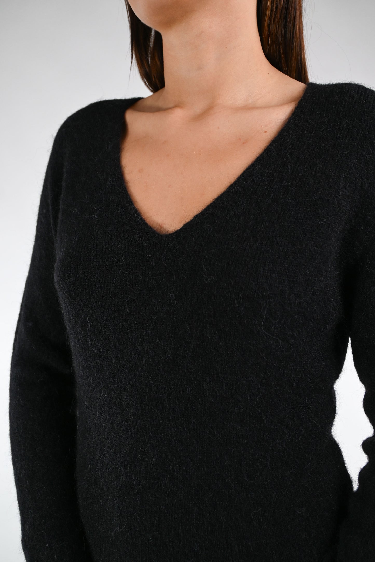 B LOVE - MAGLIA BABY ALPACA SCOLLO V ART.SOFT/7106 - NERO