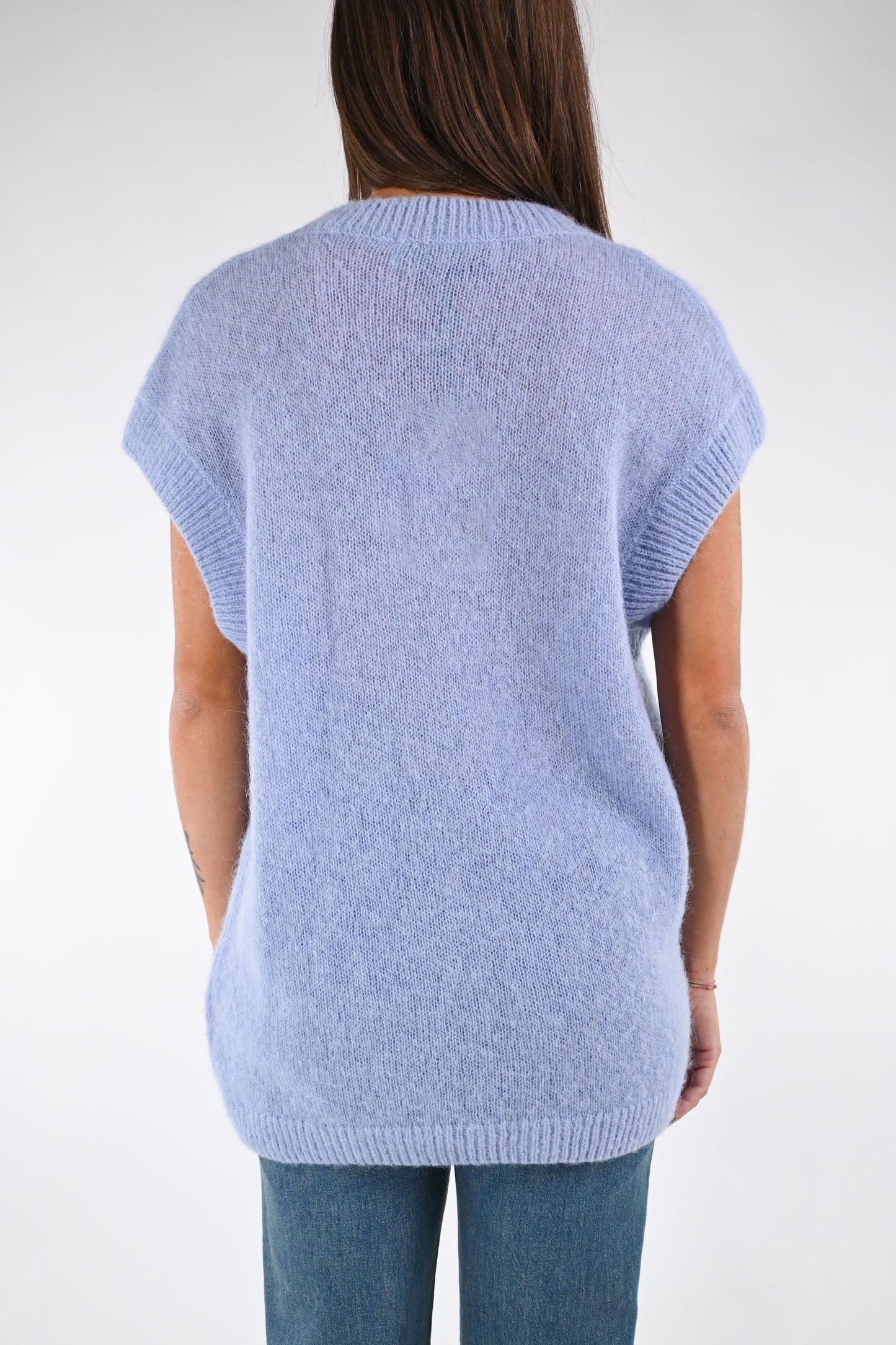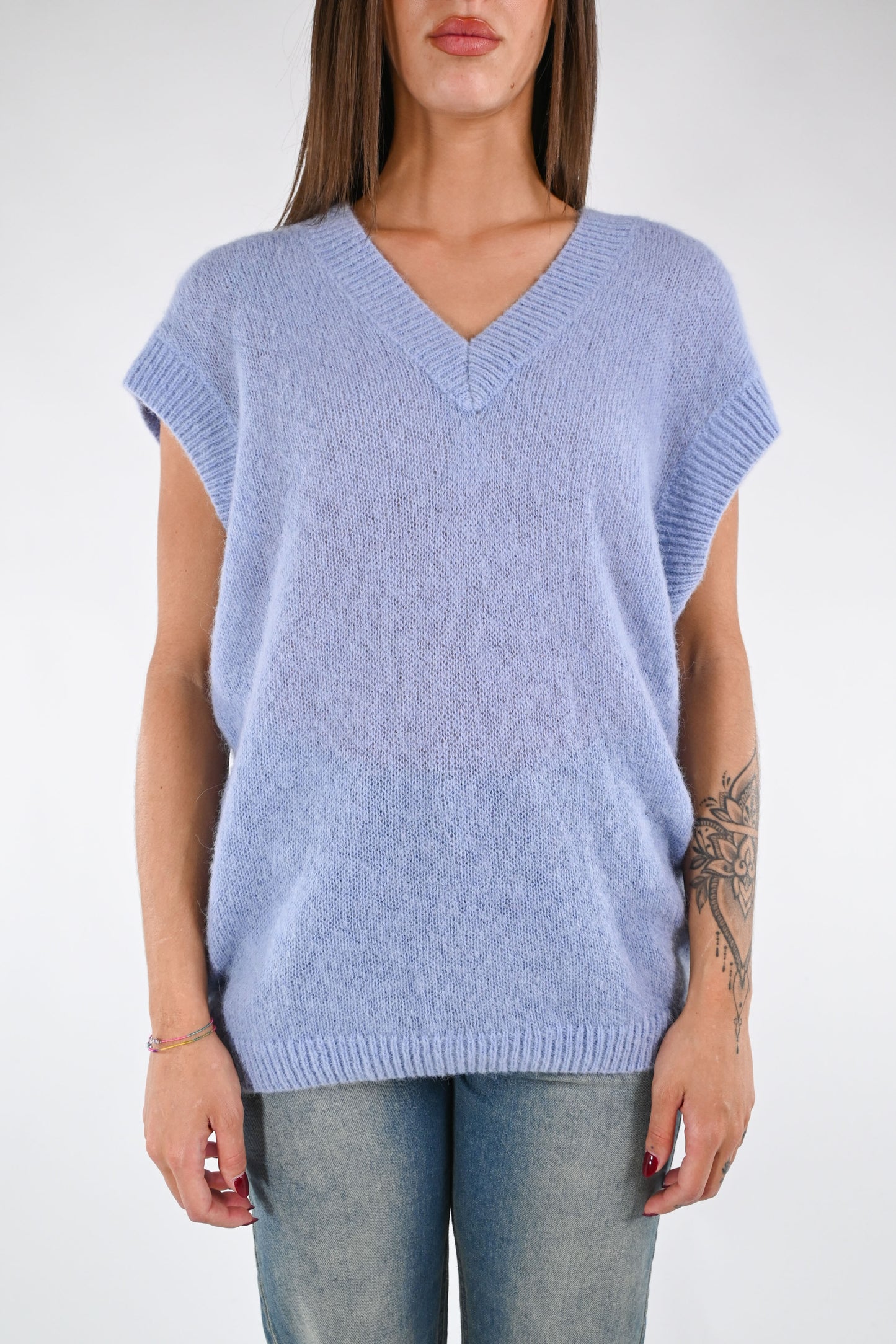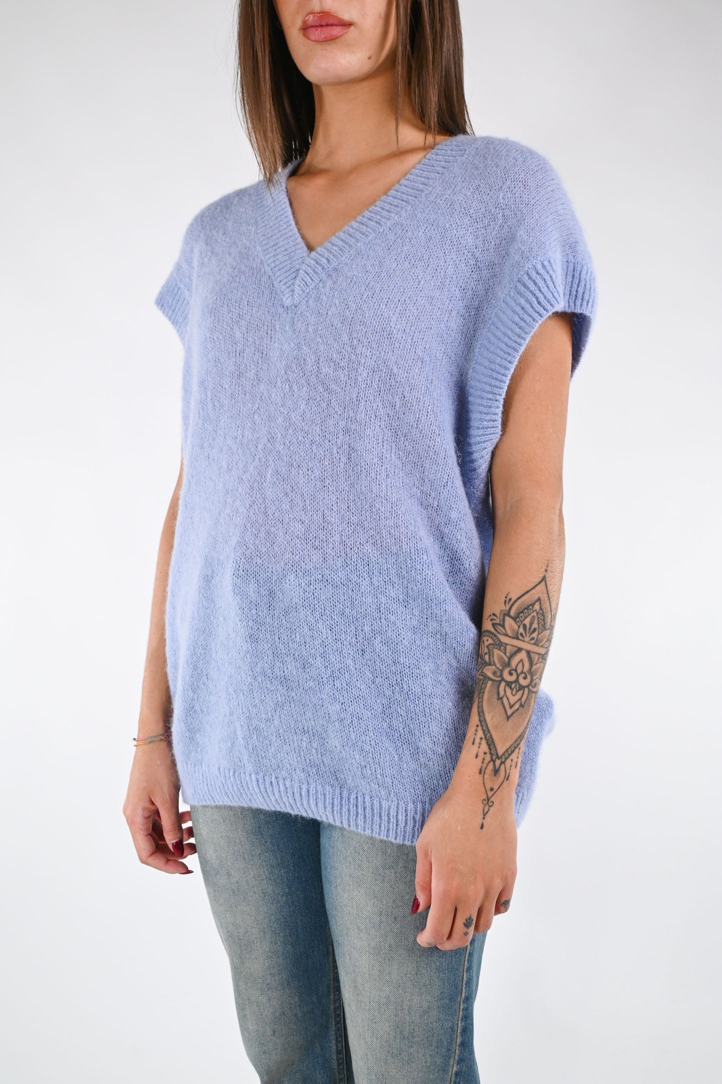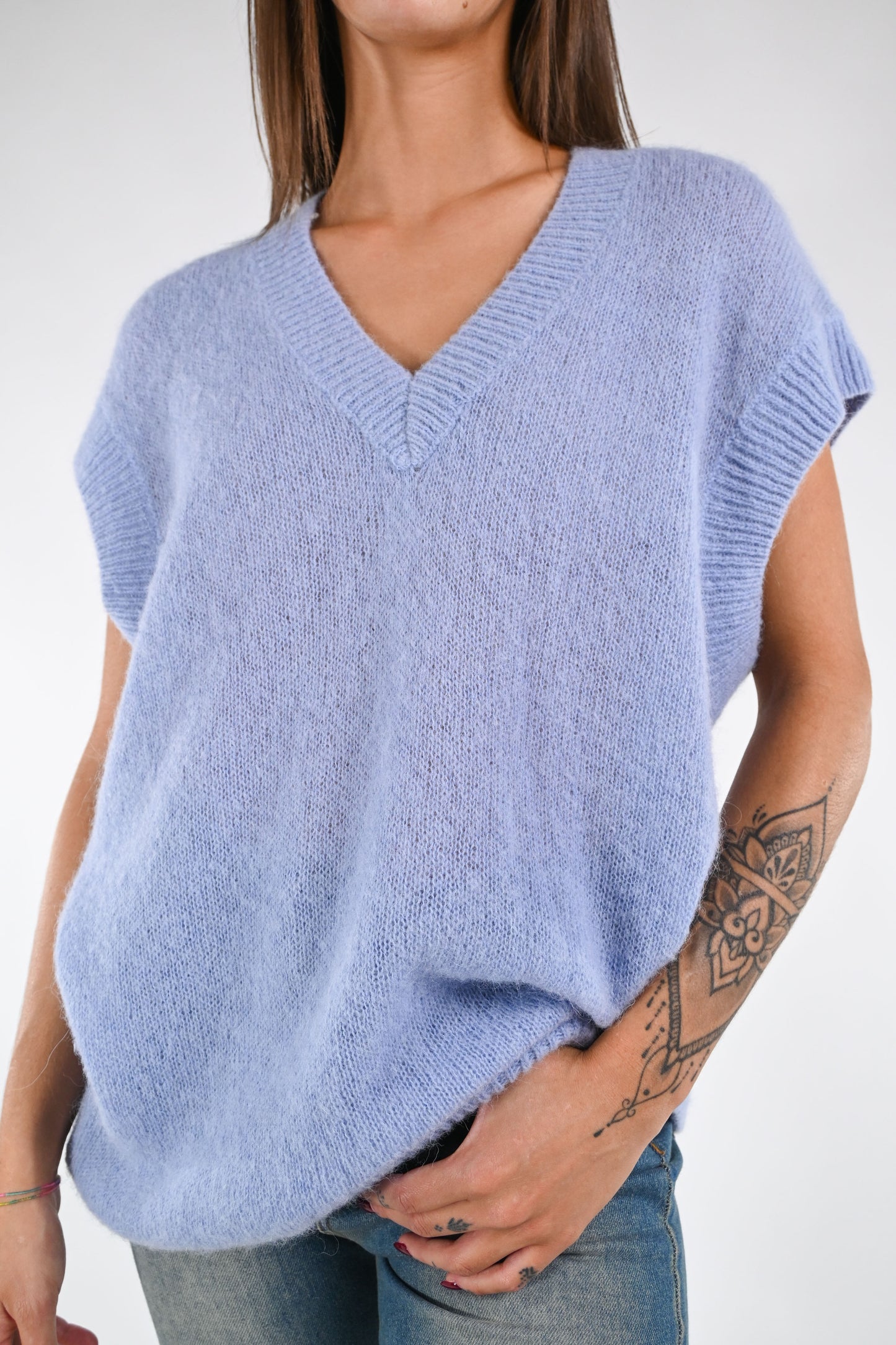 Gilet over scollo V in alpaca/lana, colore celeste