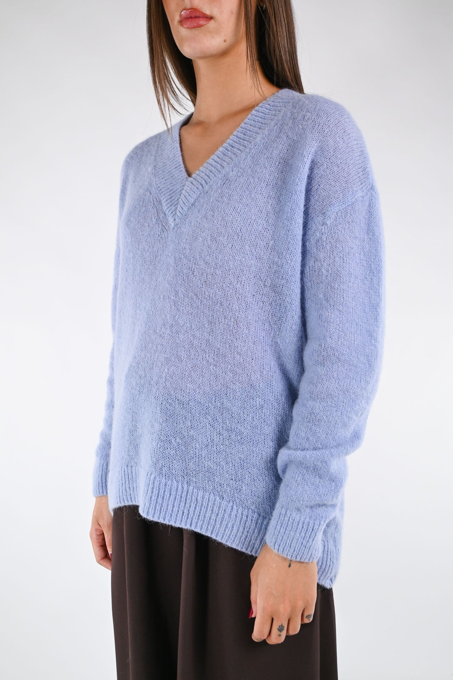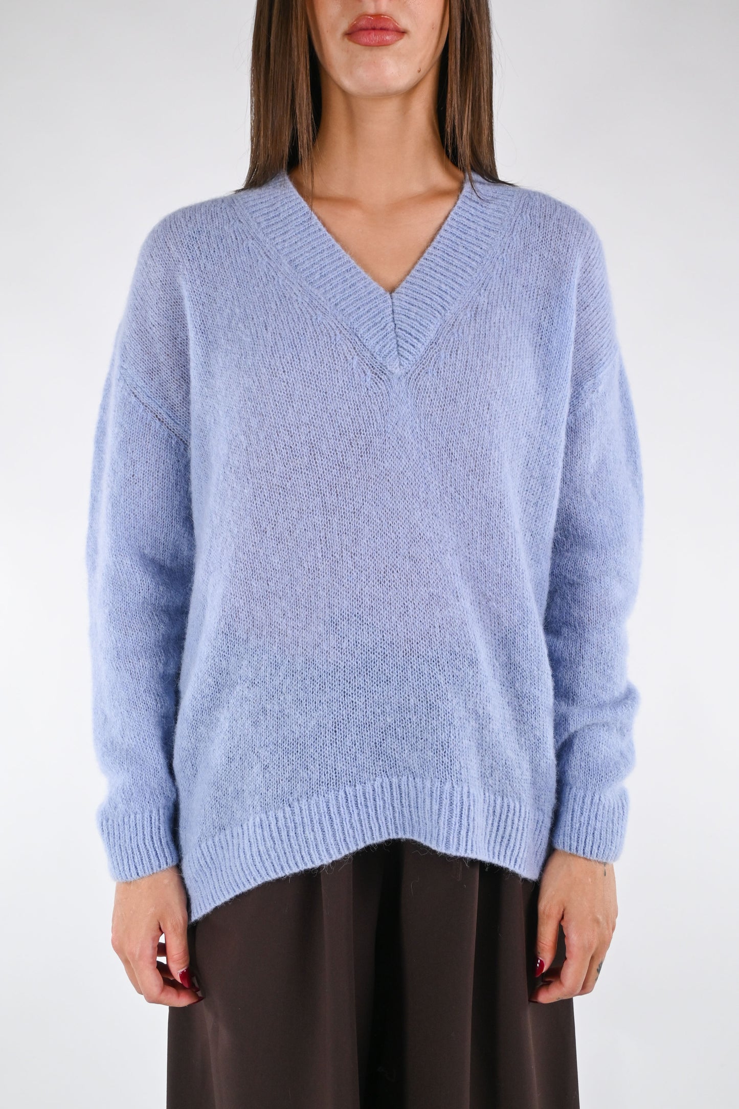 HAVEONE - MAGLIA OVER SCOLLO V ART.MNC-P206 - CELESTE