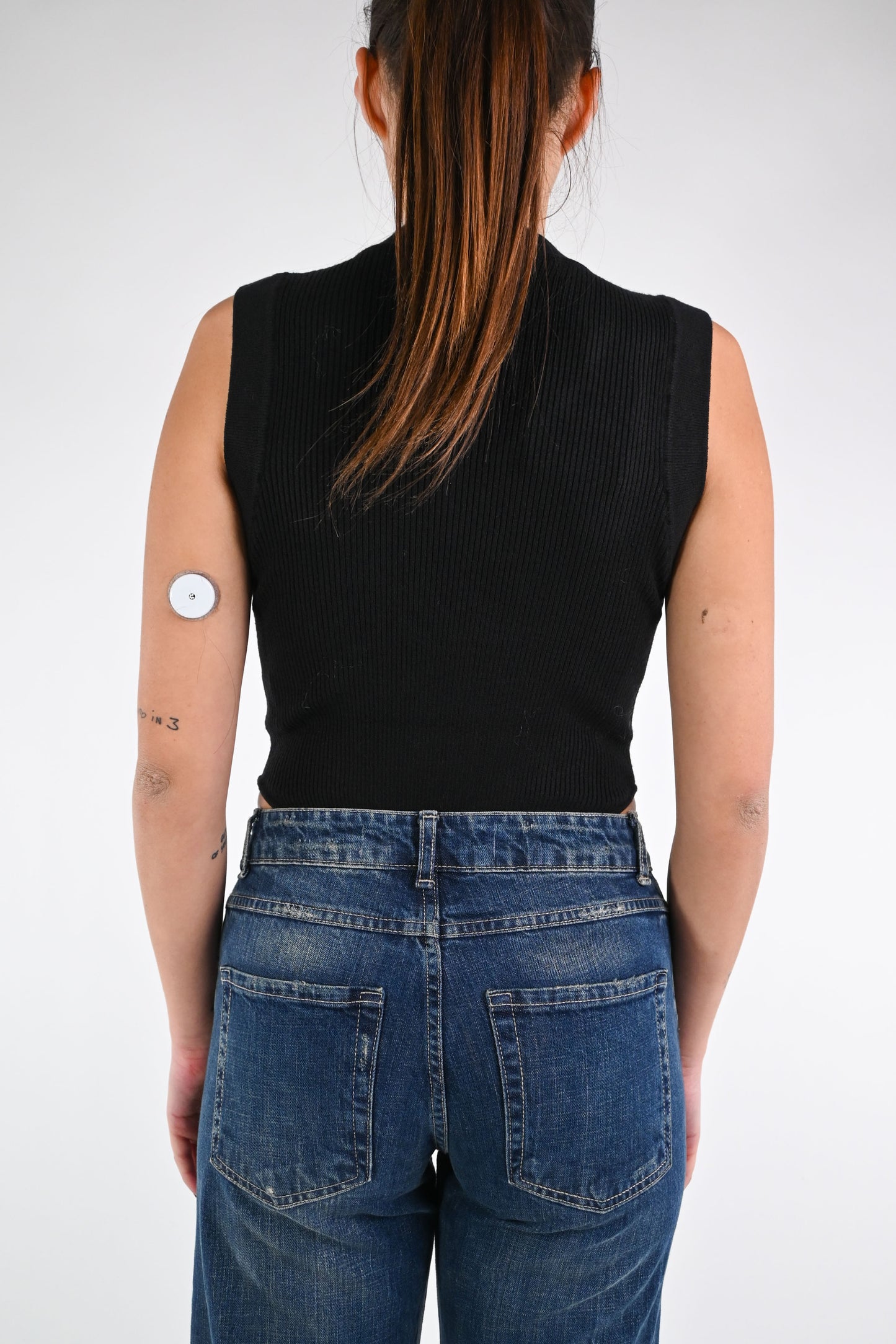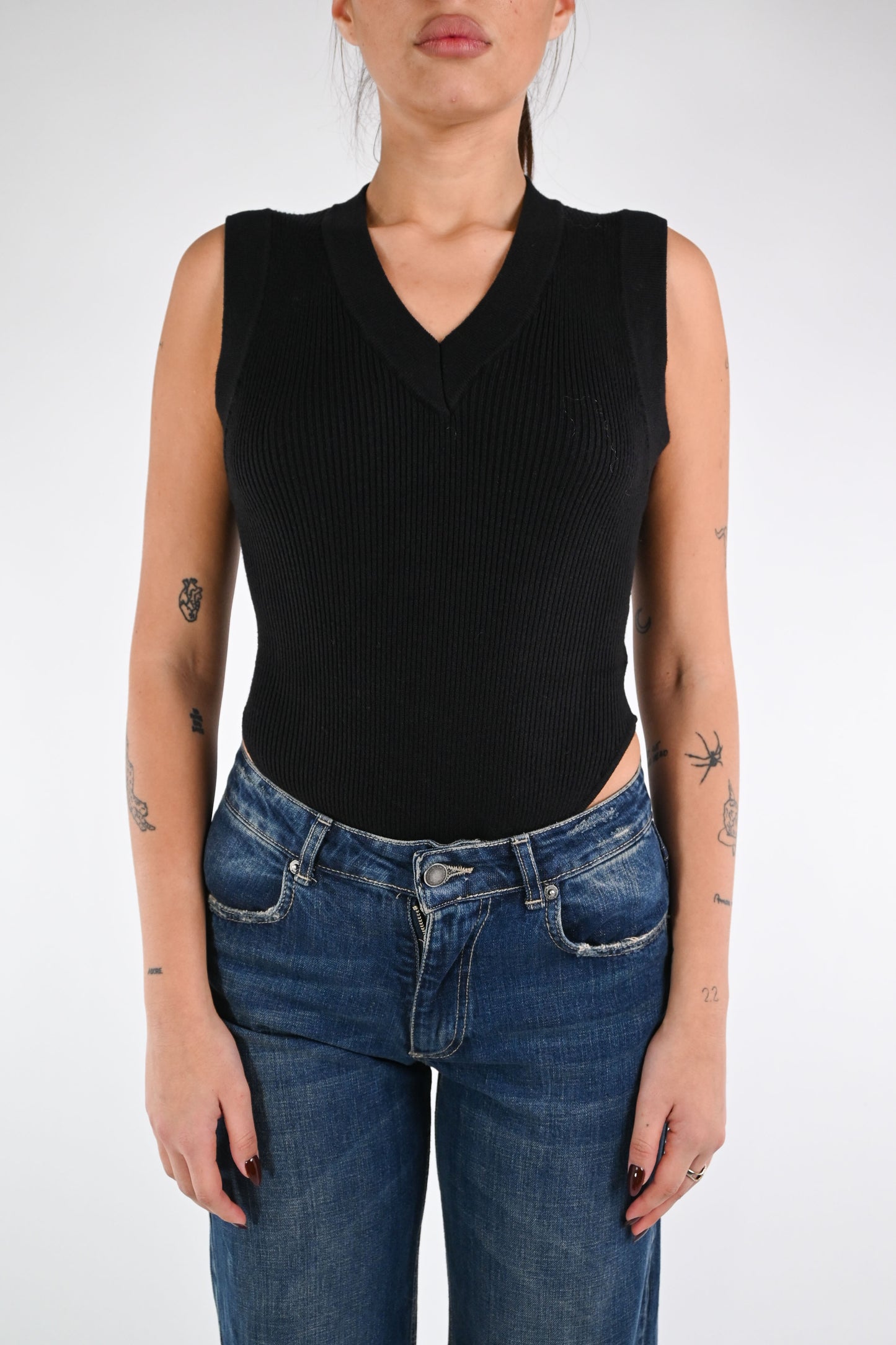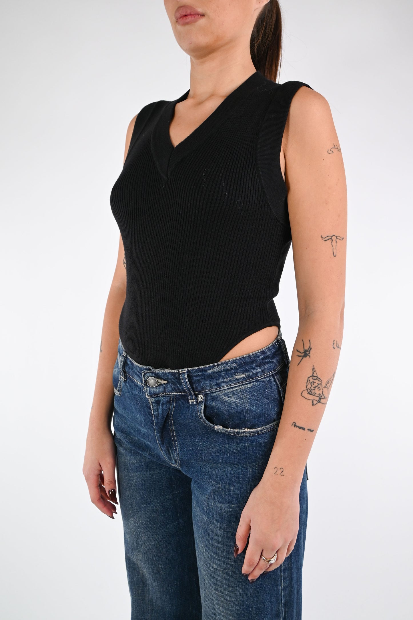 VICOLO - MAGLIA BODY A COSTINE ART.22150F - NERO