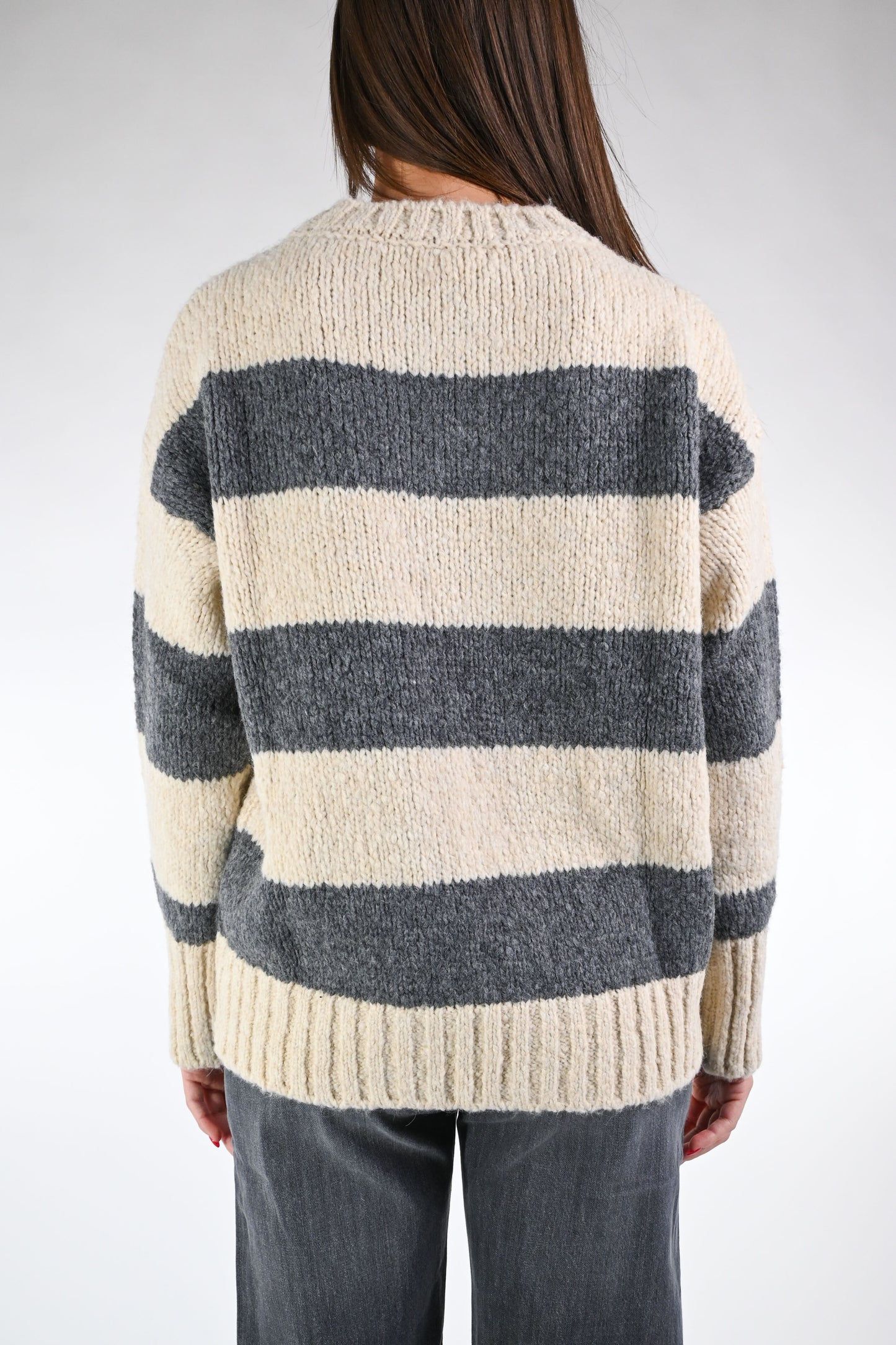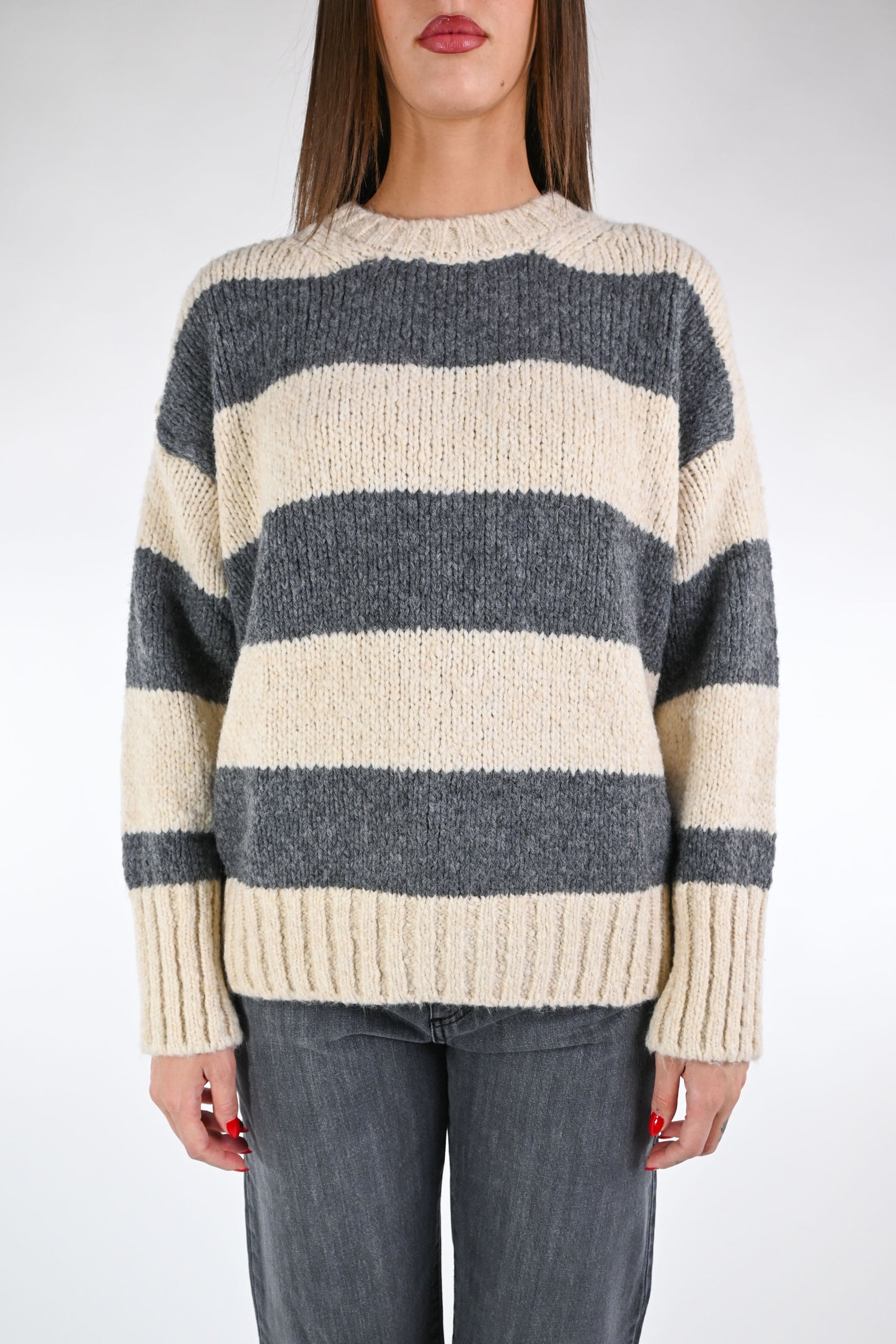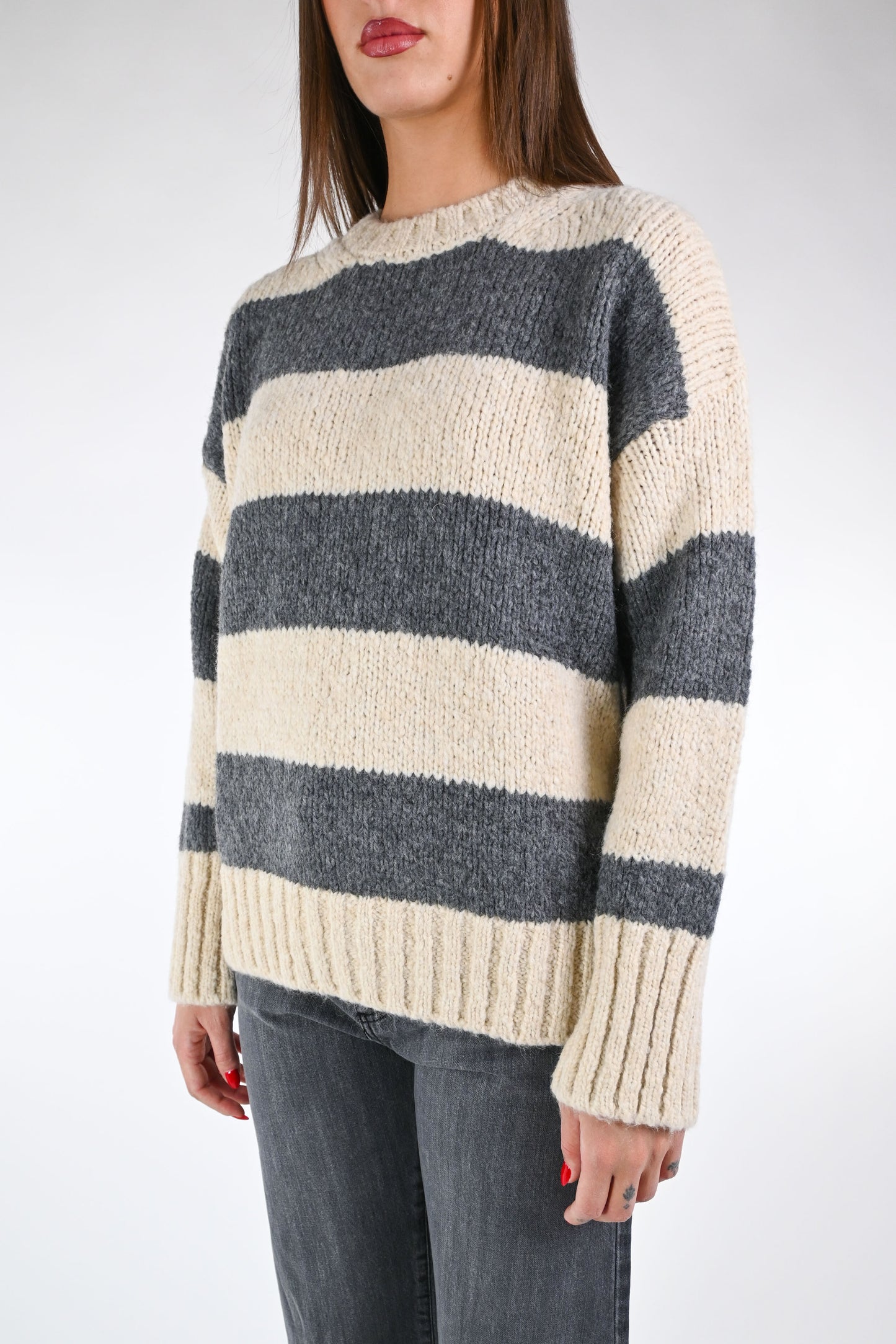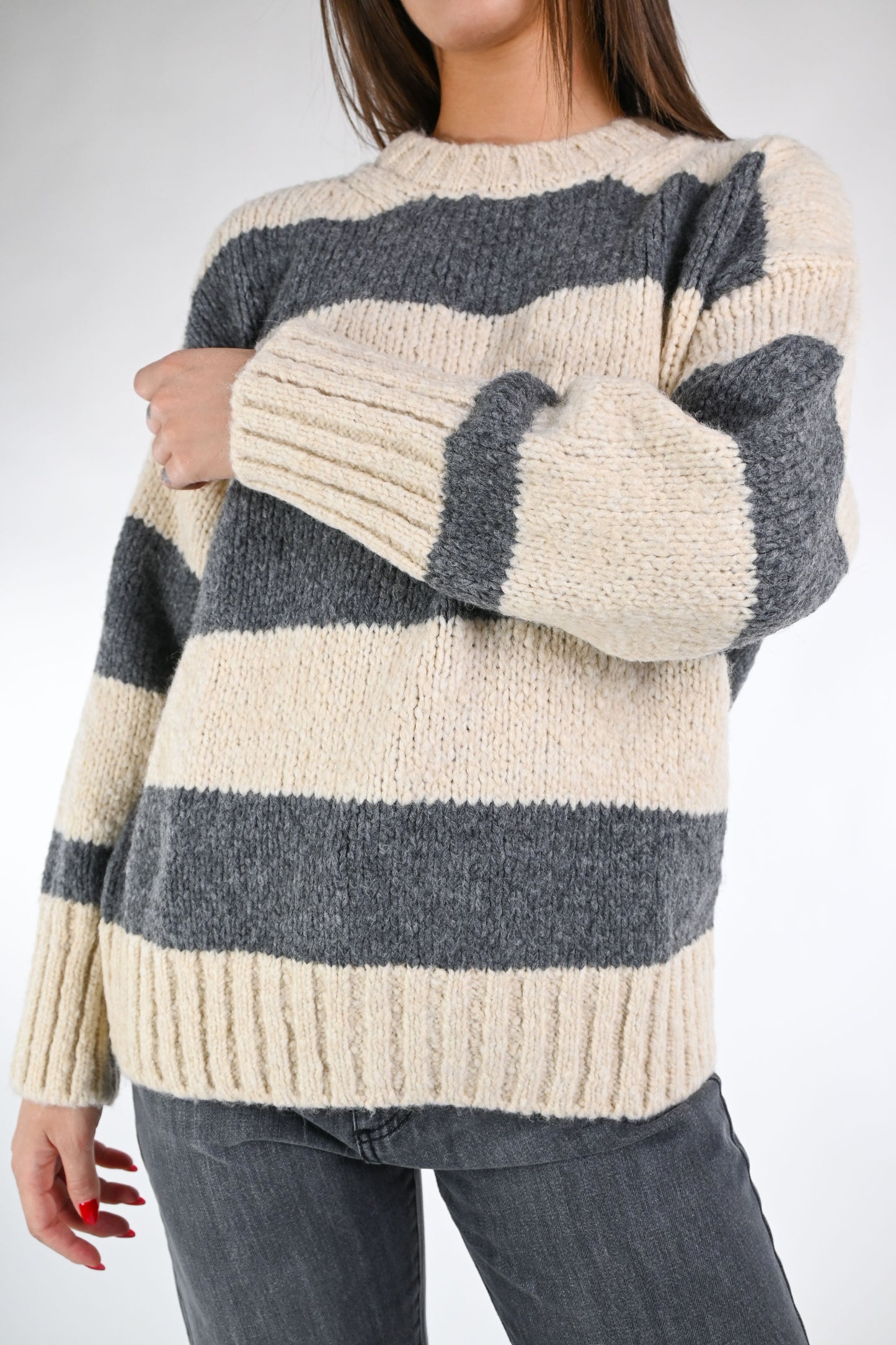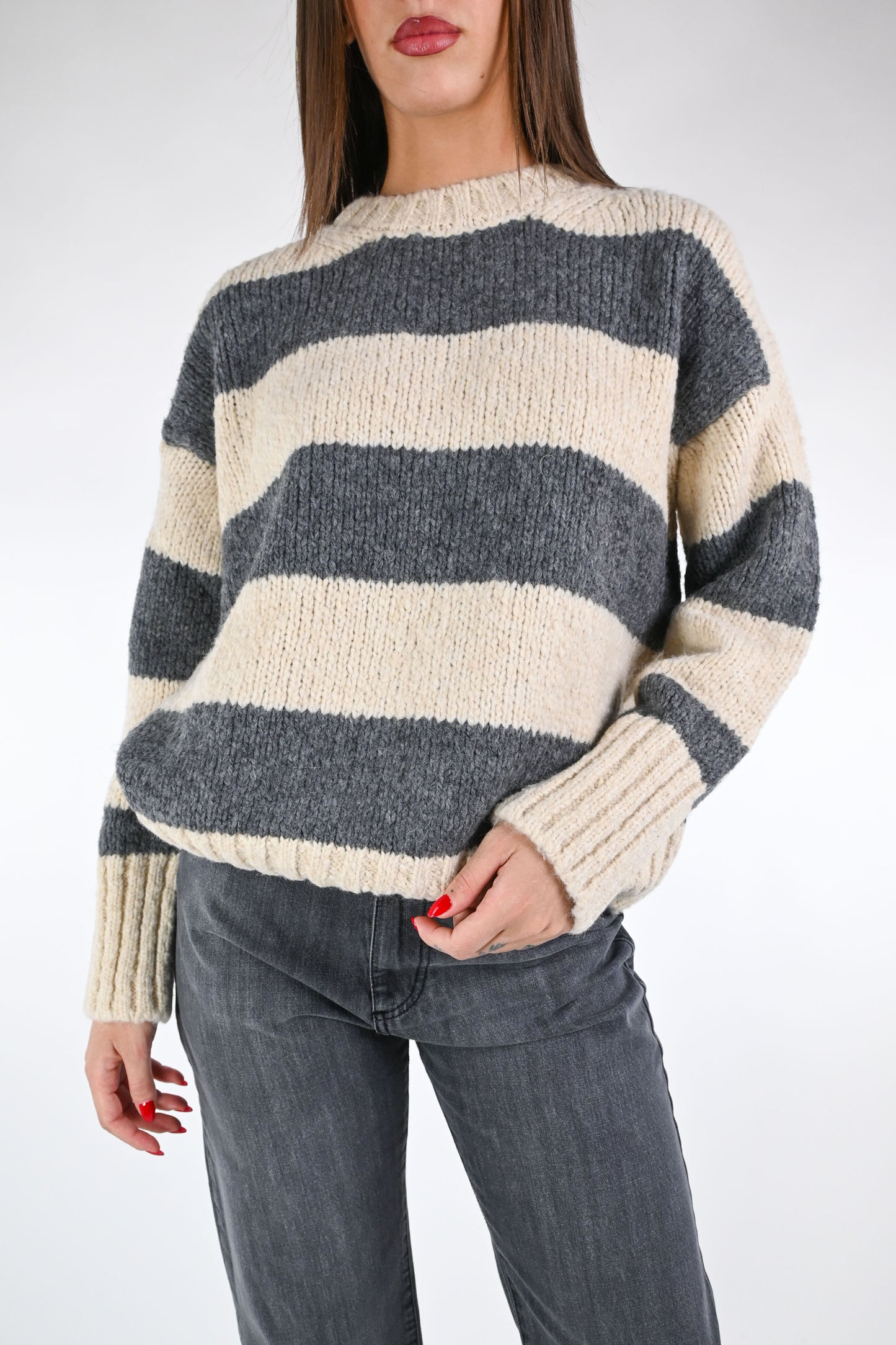 VICOLO - MAGLIA TRICOT A RIGHE ART.33061F - PANNA/GRIGIO