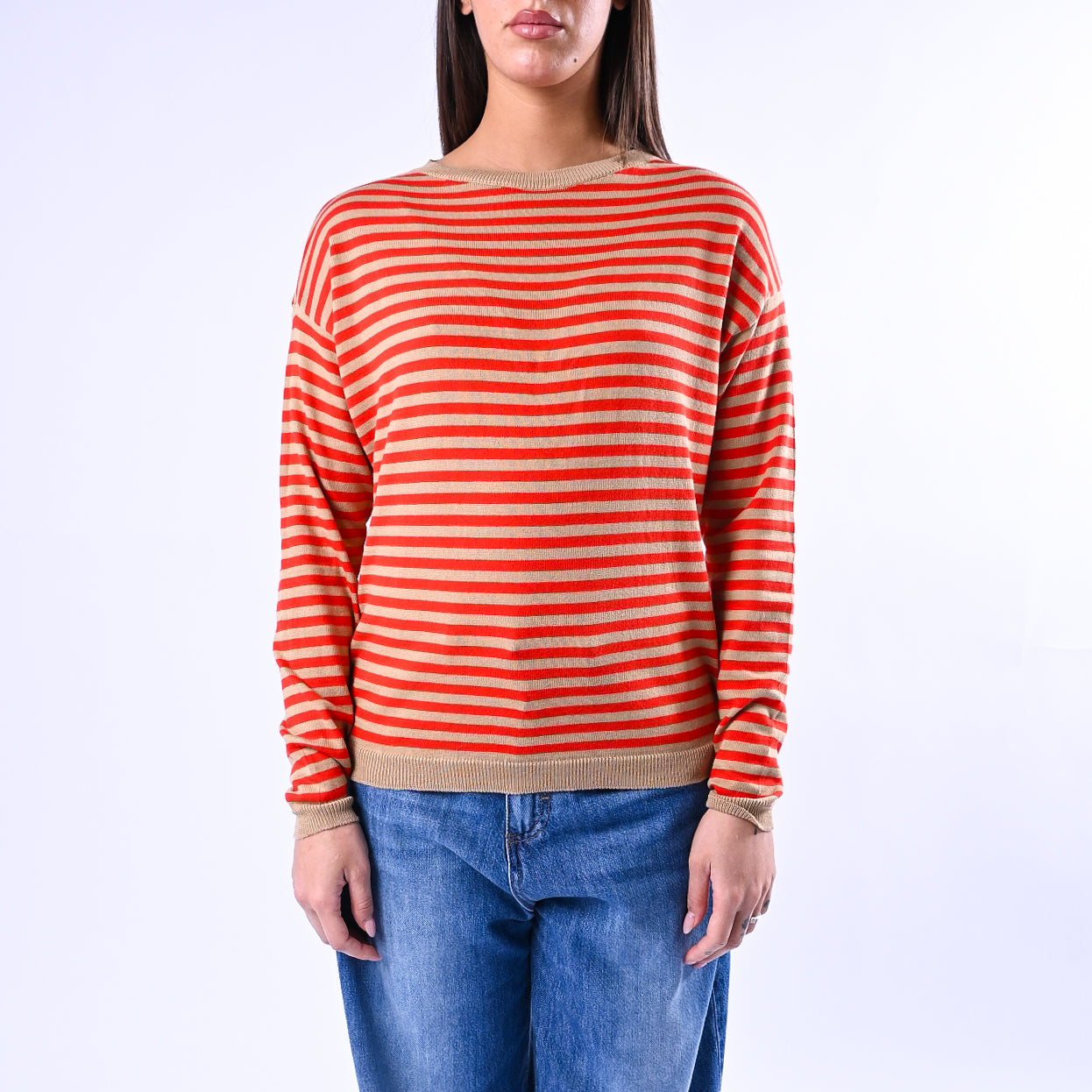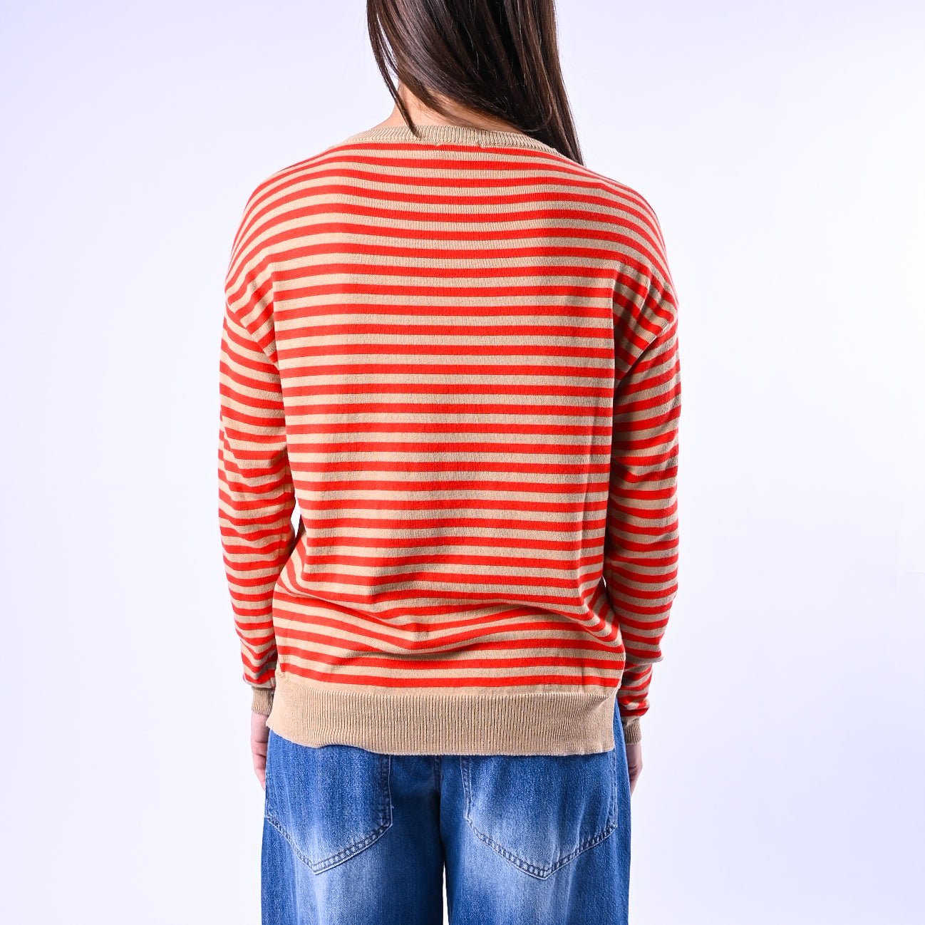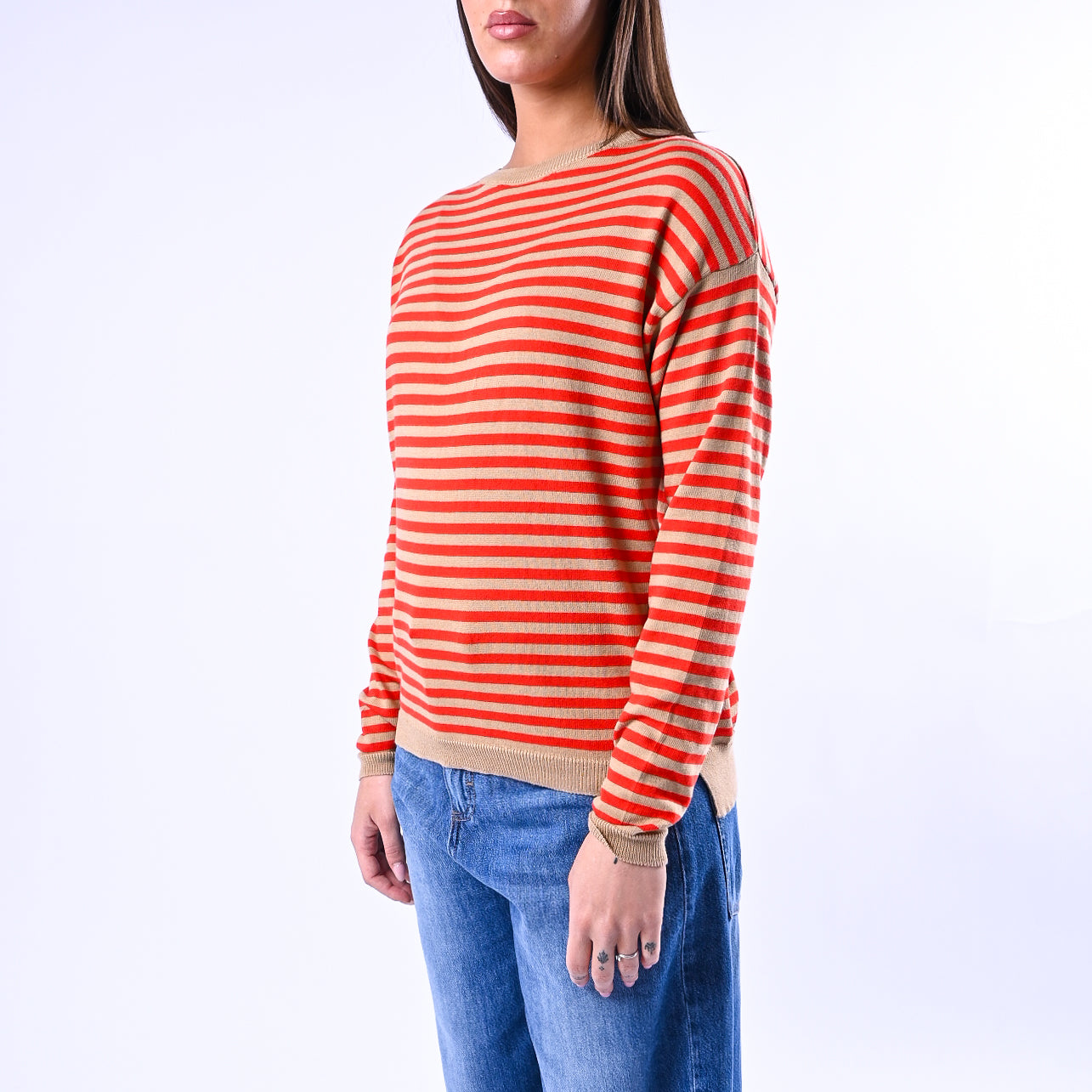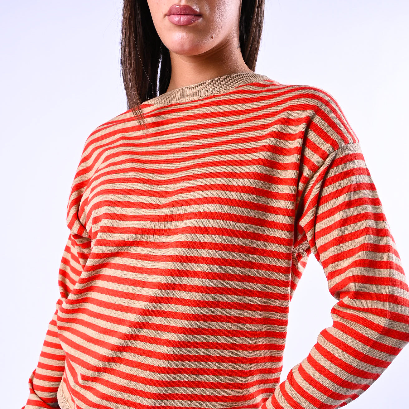B LOVE - MAGLIA RIGHE SCOLLO BARCHETTA ART.C225 - CAMMELLO/ROSSO