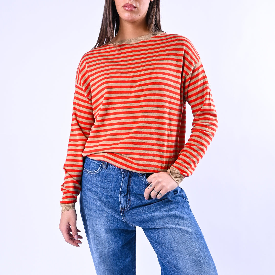 B LOVE - MAGLIA RIGHE SCOLLO BARCHETTA ART.C225 - CAMMELLO/ROSSO