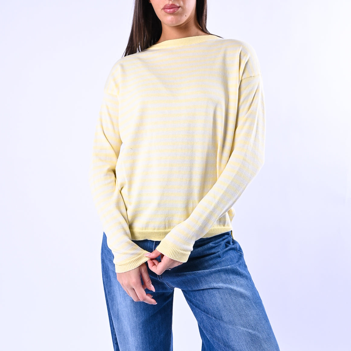 B LOVE - MAGLIA RIGHE SCOLLO BARCHETTA ART.C225 - PANNA/GIALLO
