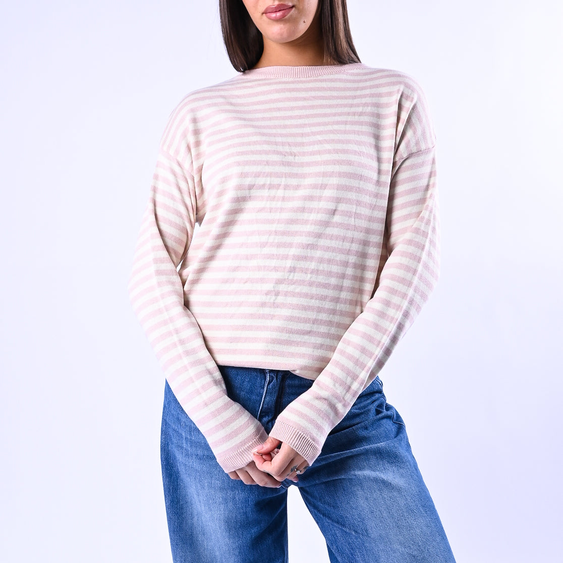 B LOVE - MAGLIA RIGHE SCOLLO BARCHETTA ART.C225 - PANNA/ROSA