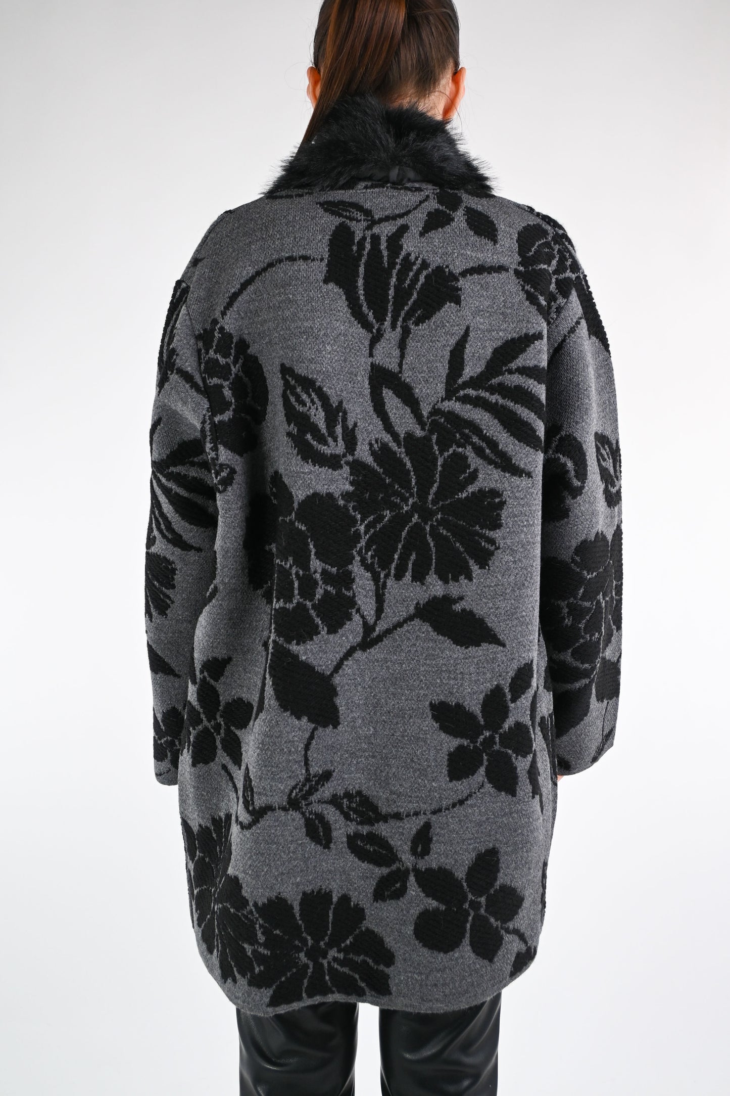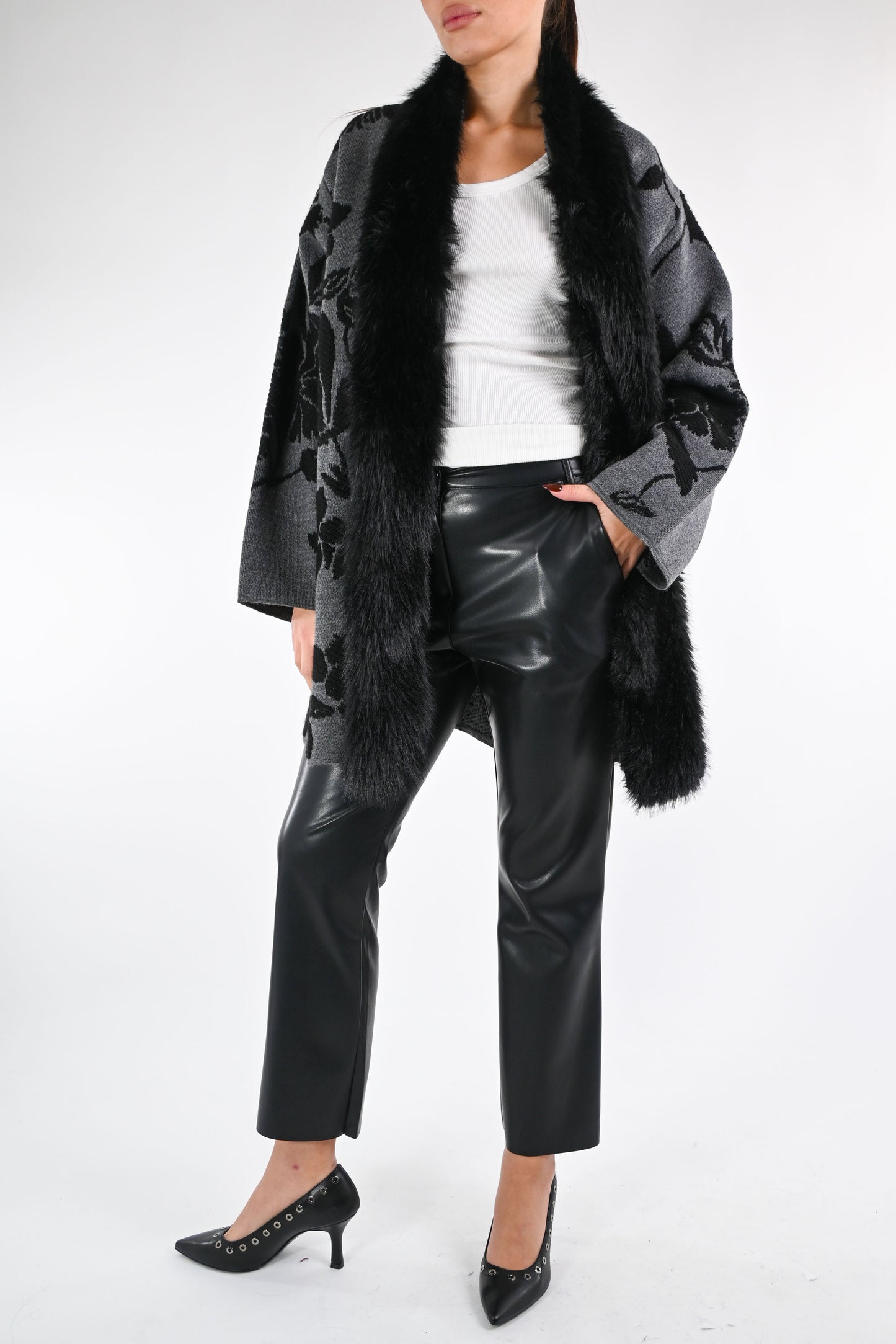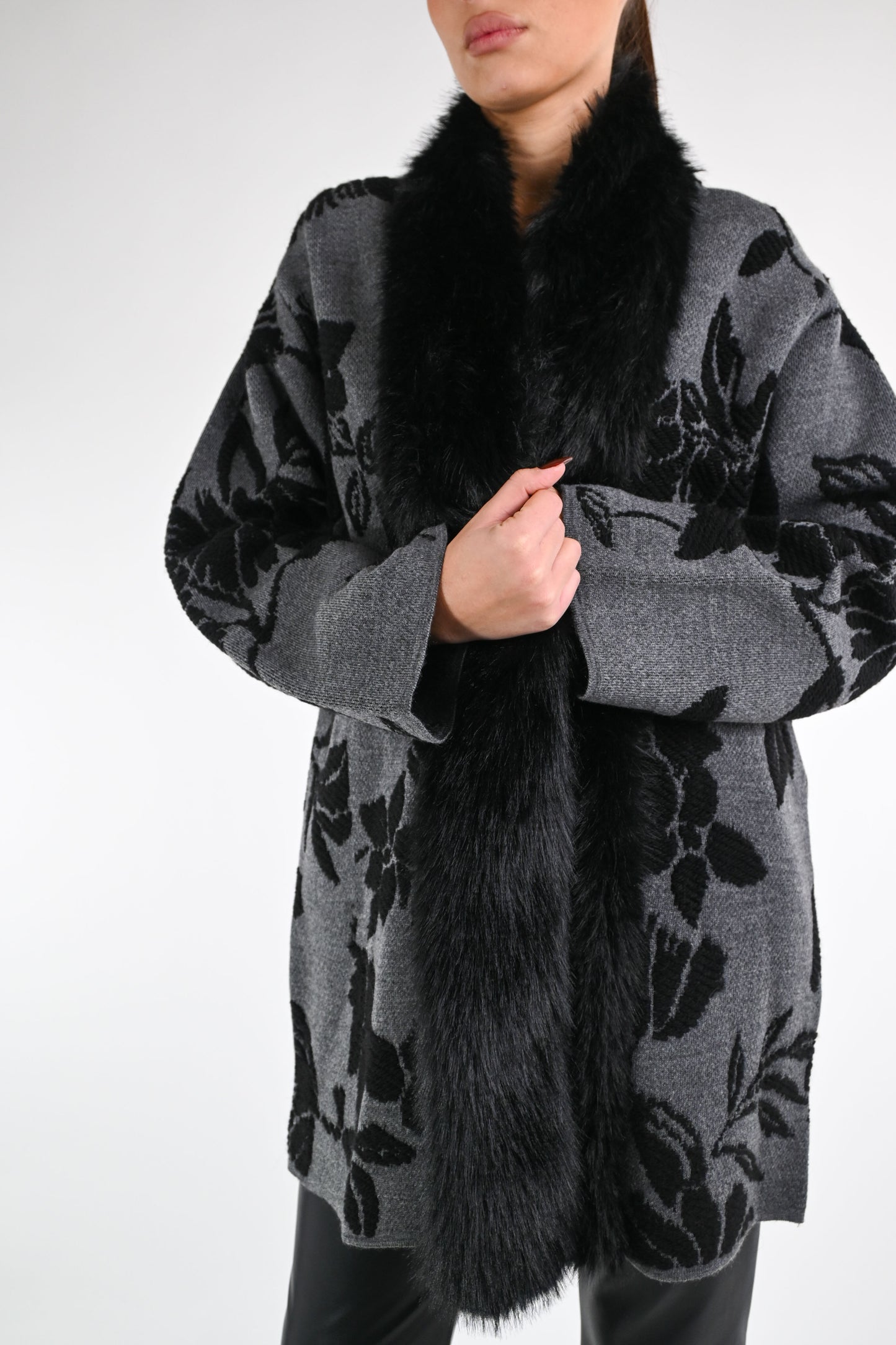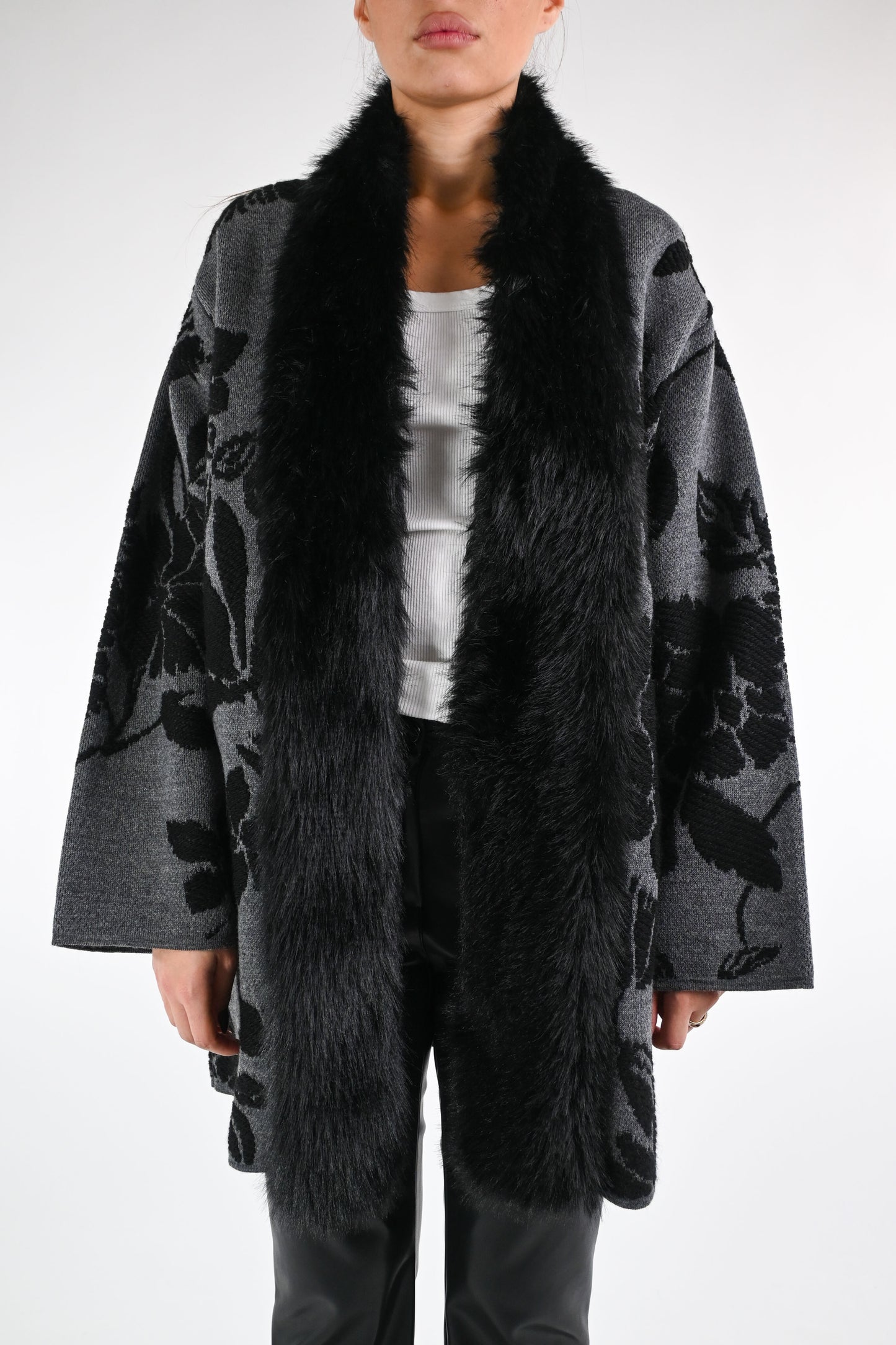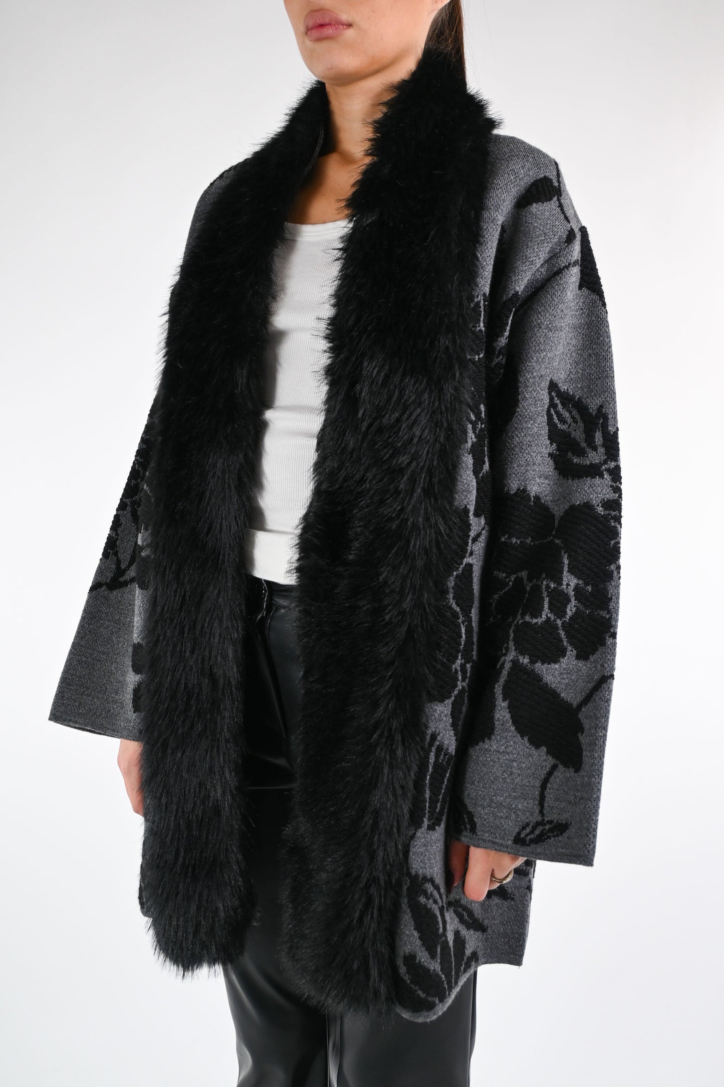 MOTEL - CARDIGAN JAQUARD COLLO ECOPELLICCIA ART.G89A400 - GRIGIO/NERO