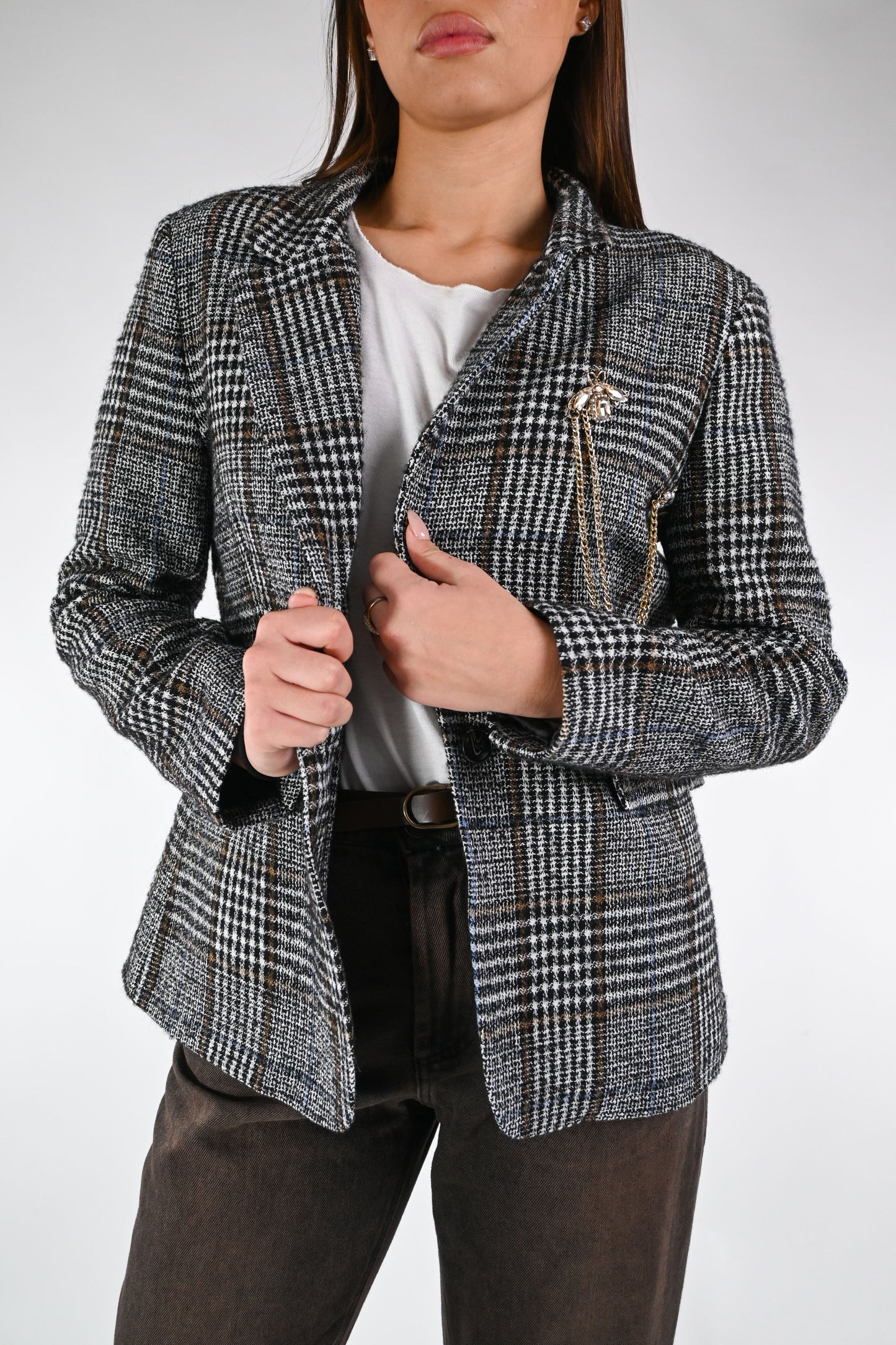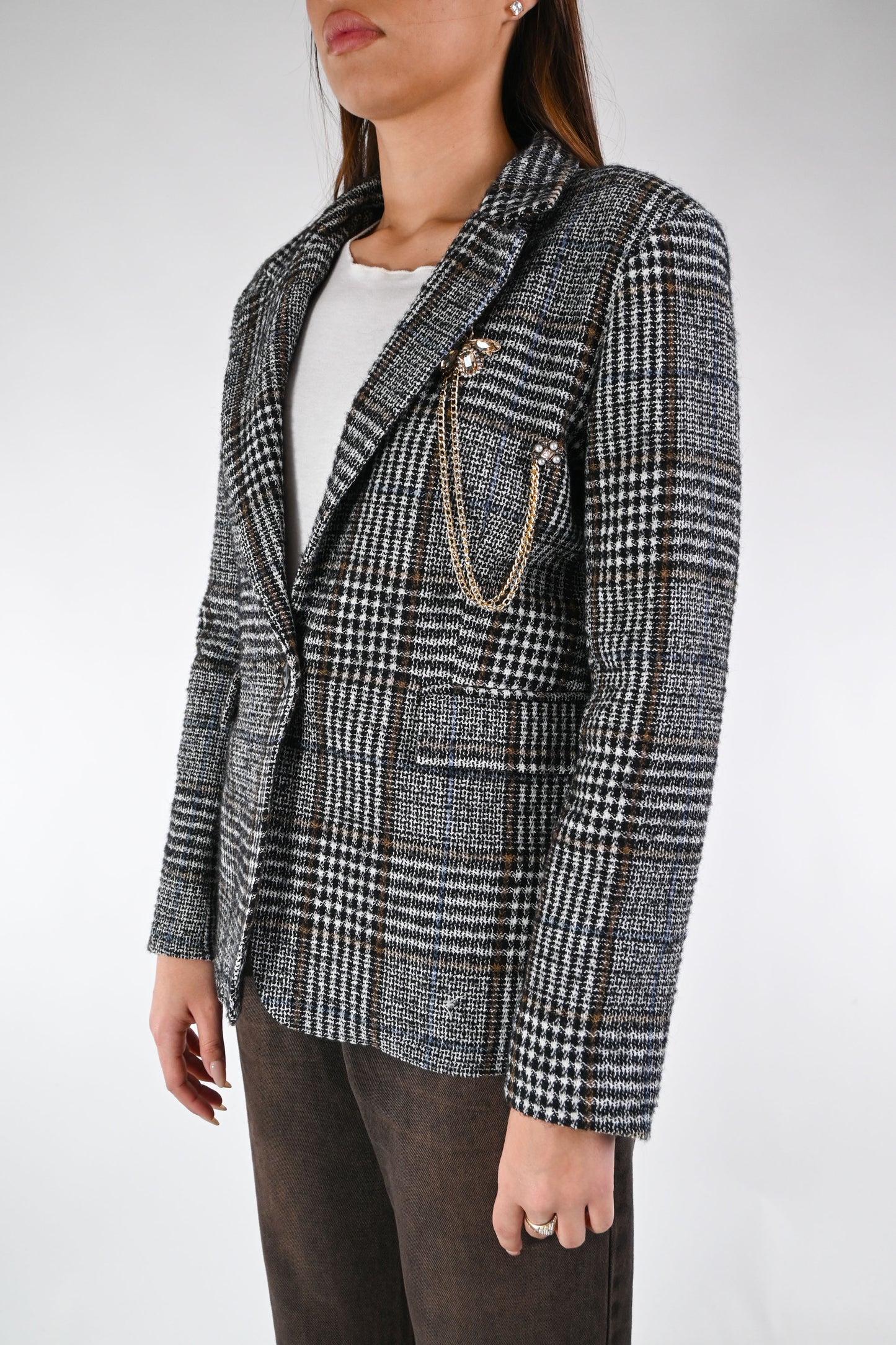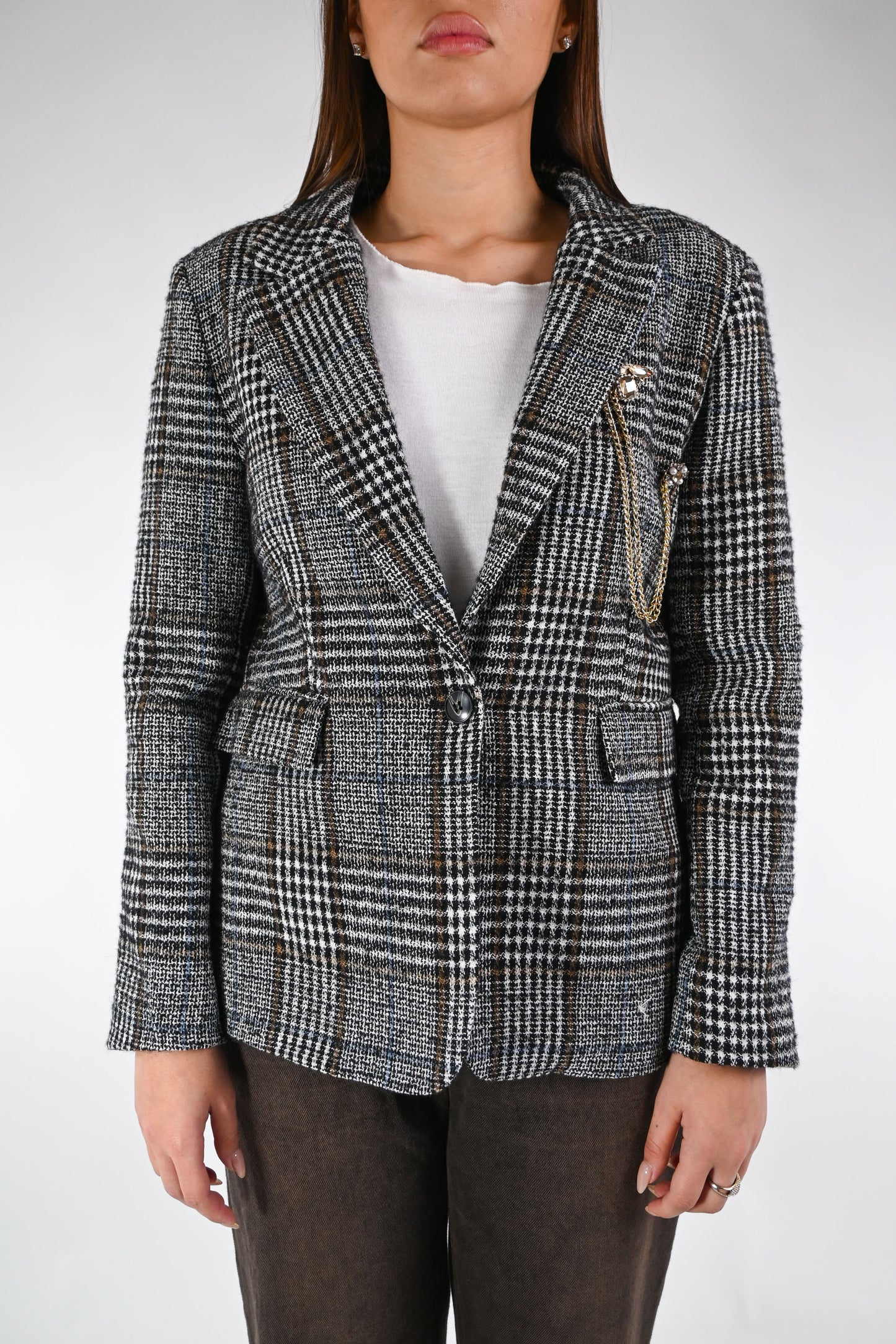 MOTEL - GIACCA PRINCIPE DI GALLES ART.26B1336 - NERO/BRUCIATO/PANNA