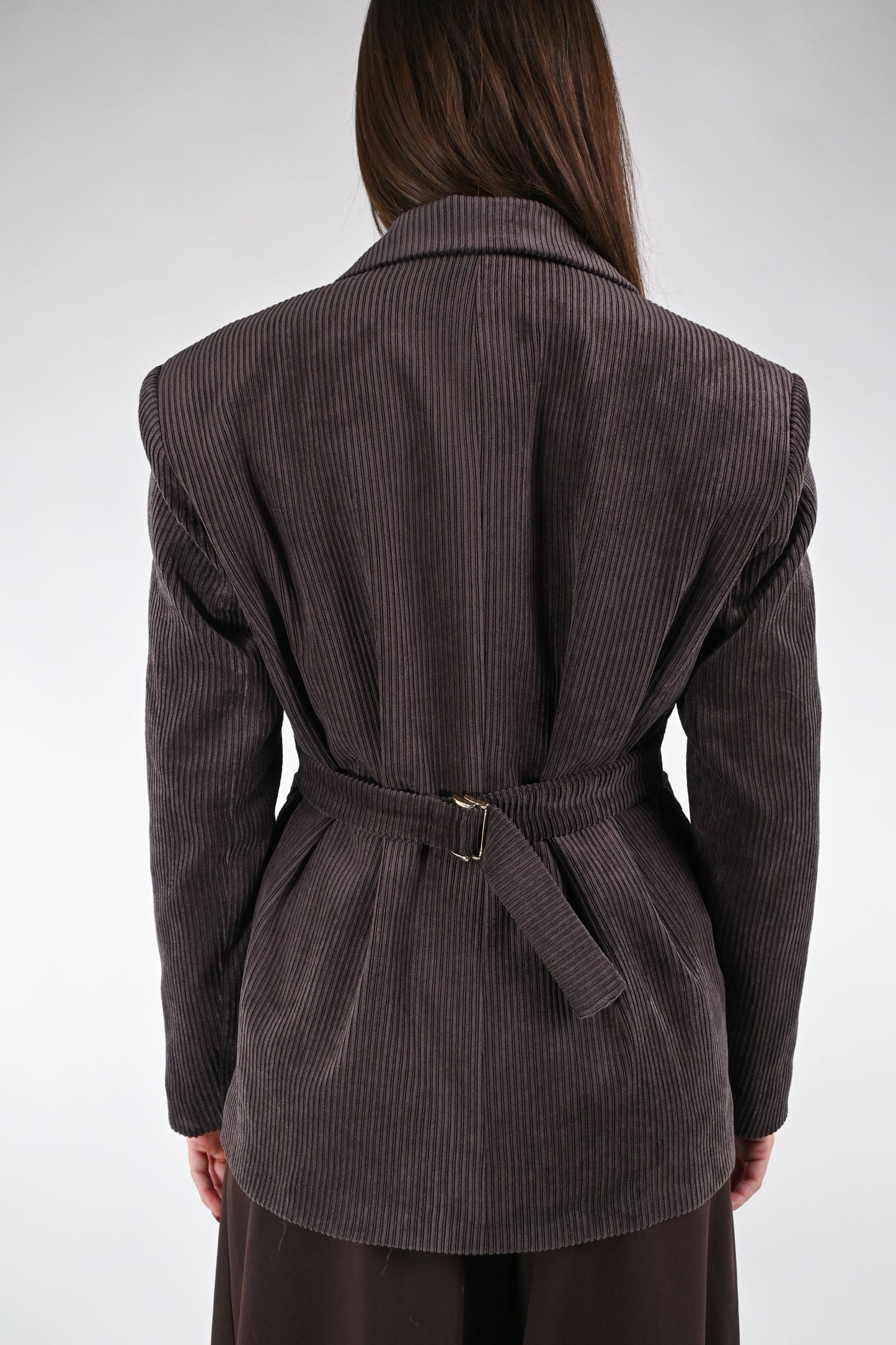 Giacca doppiopetto in velluto a coste, con martingala dietro, foderata, colore moro