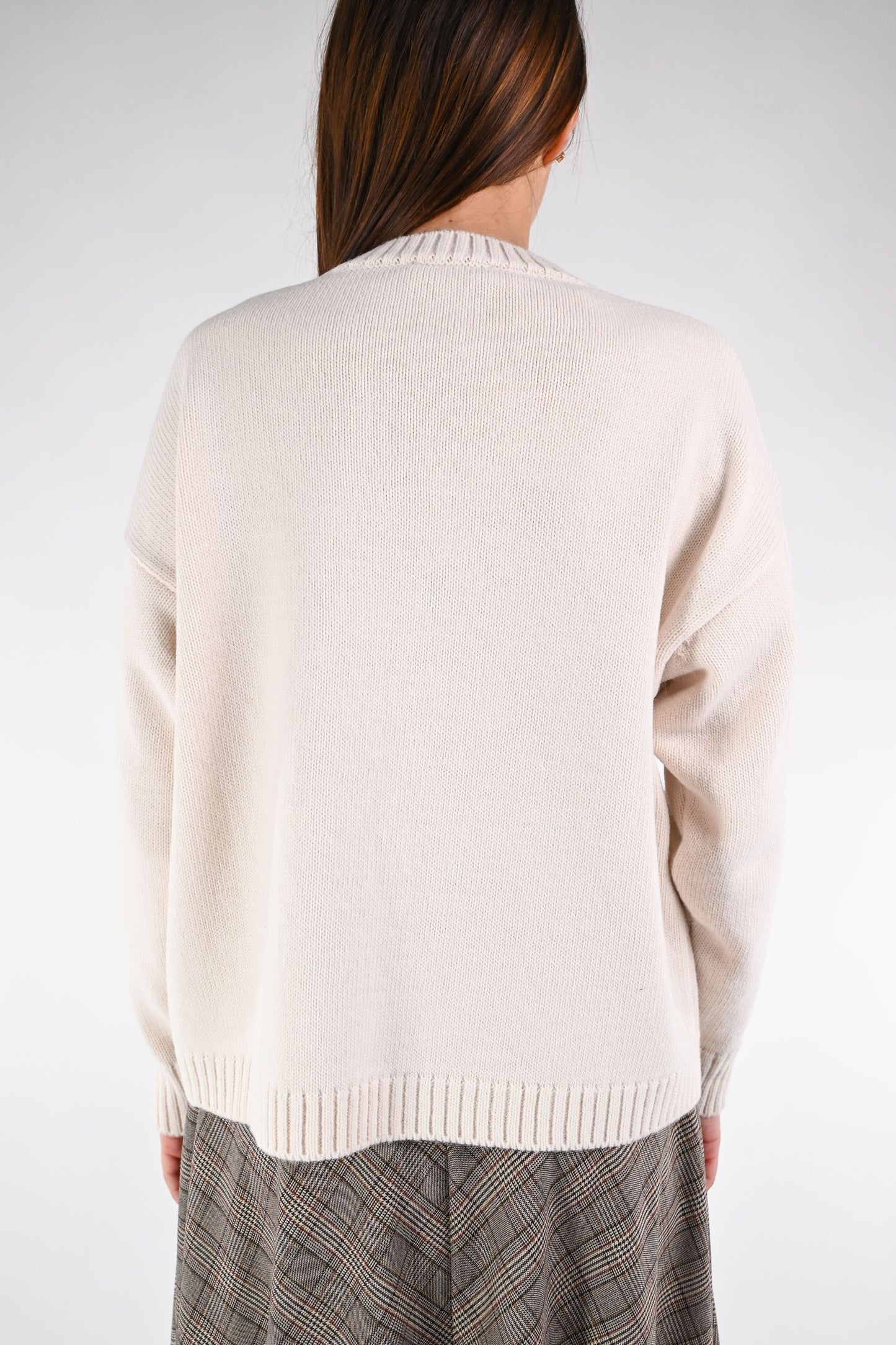 MOTEL - MAGLIA A SCATOLA CON RICAMO ART.MJ41A4 - PANNA/MORO