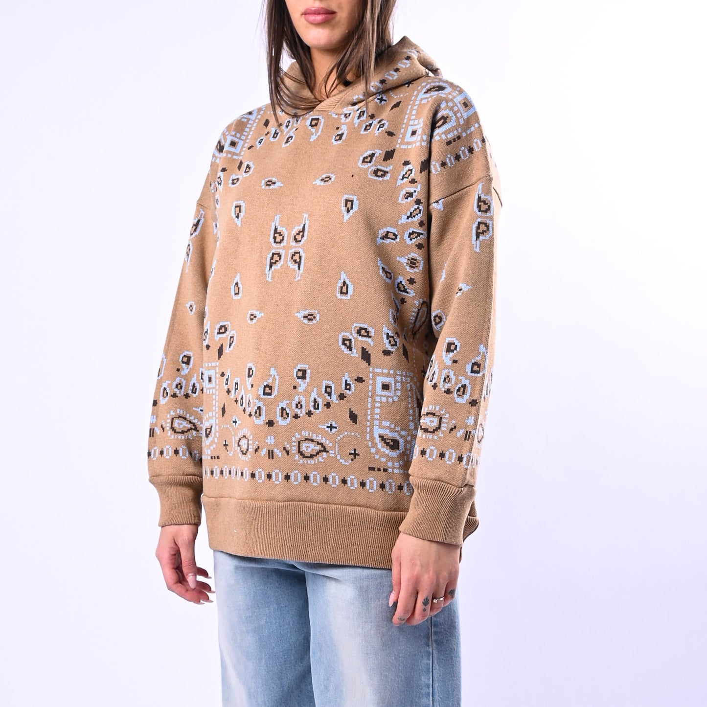 Maglia over in cotone con cappuccio e stampa bandana, perfetta per uno stile casual e versatile. Comfort e carattere in un'unica proposta, ideale per chi ricerca capi statement con personalità.