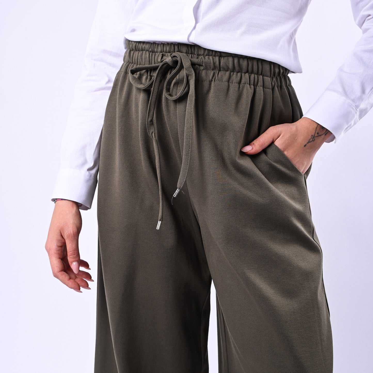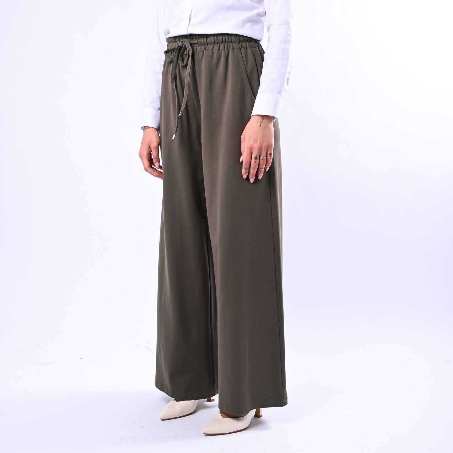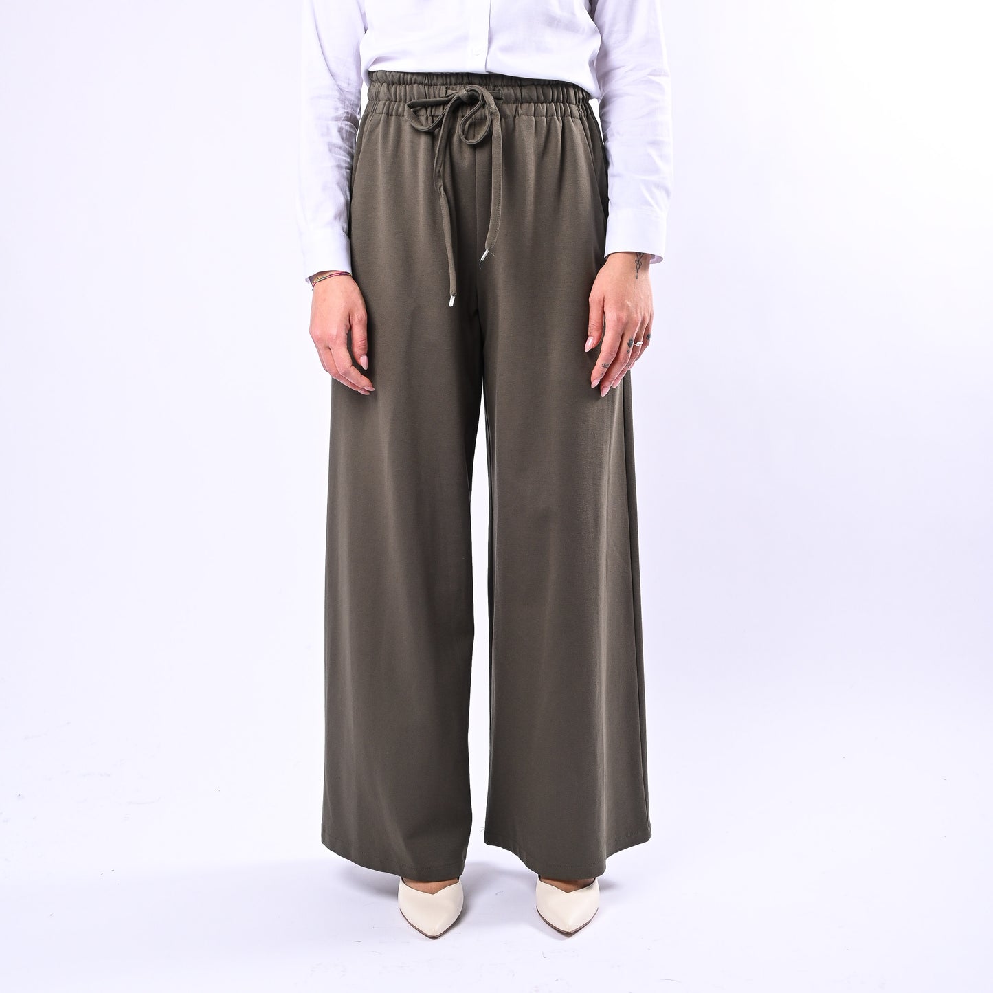 MOTEL - PANTALONE PALAZZO PUNTO MILANO CON COULISSE ART.26P3676 - MILITARE