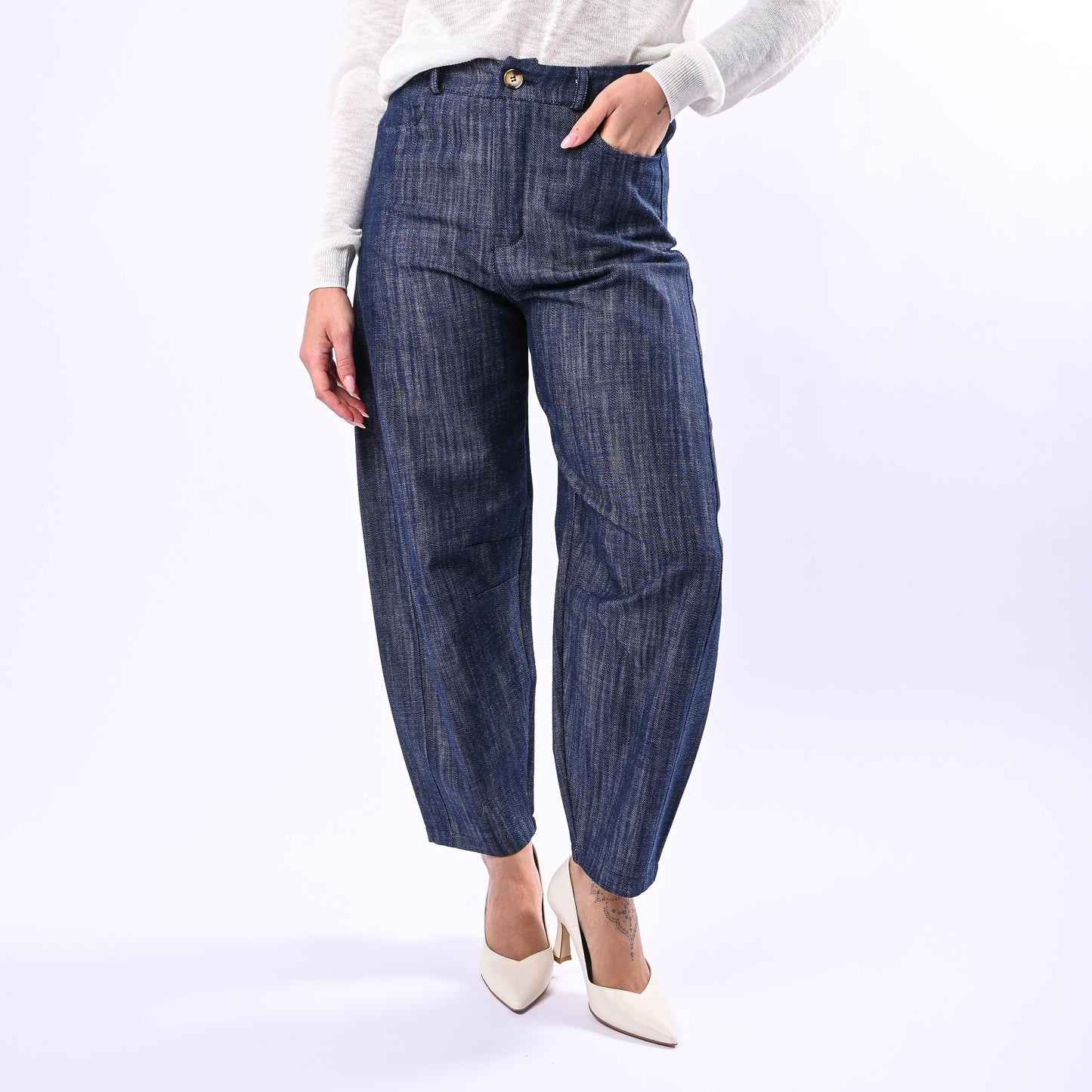 HAVEONE - PANTALONE BALLOON IN CHAMBERAY ART.PNO-Q168 - DENIM SCURO