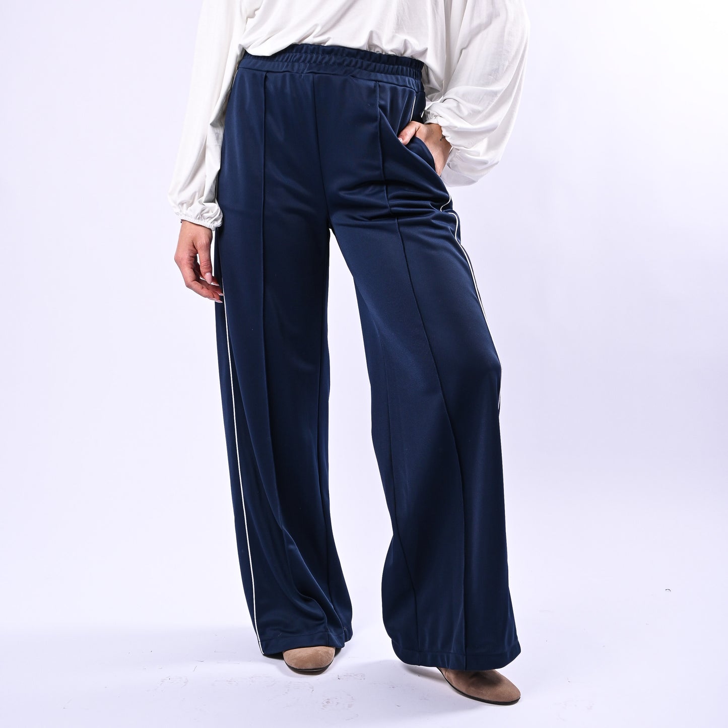 HAVEONE - PANTALONE PALAZZO ACETATO ART.PVS-Q166 - BLU