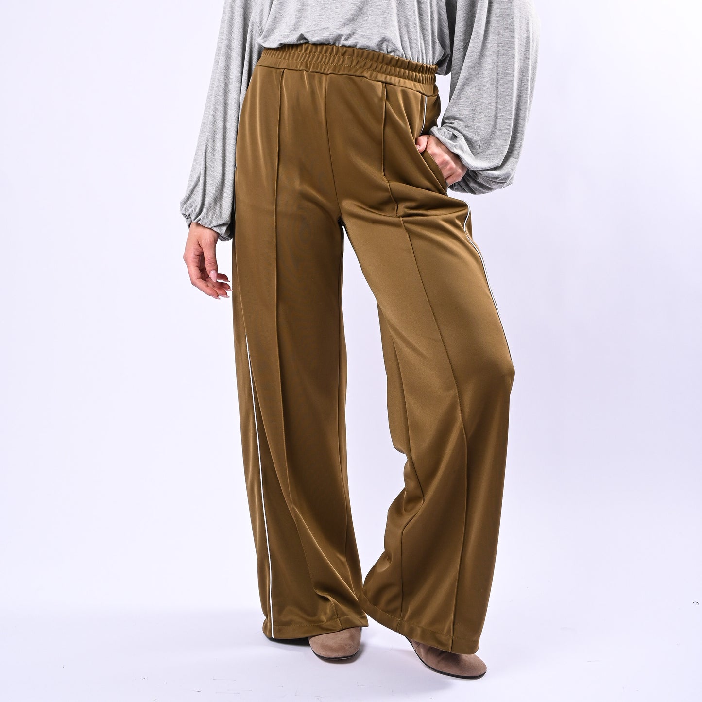 HAVEONE - PANTALONE PALAZZO ACETATO ART.PVS-Q166 - OLIO