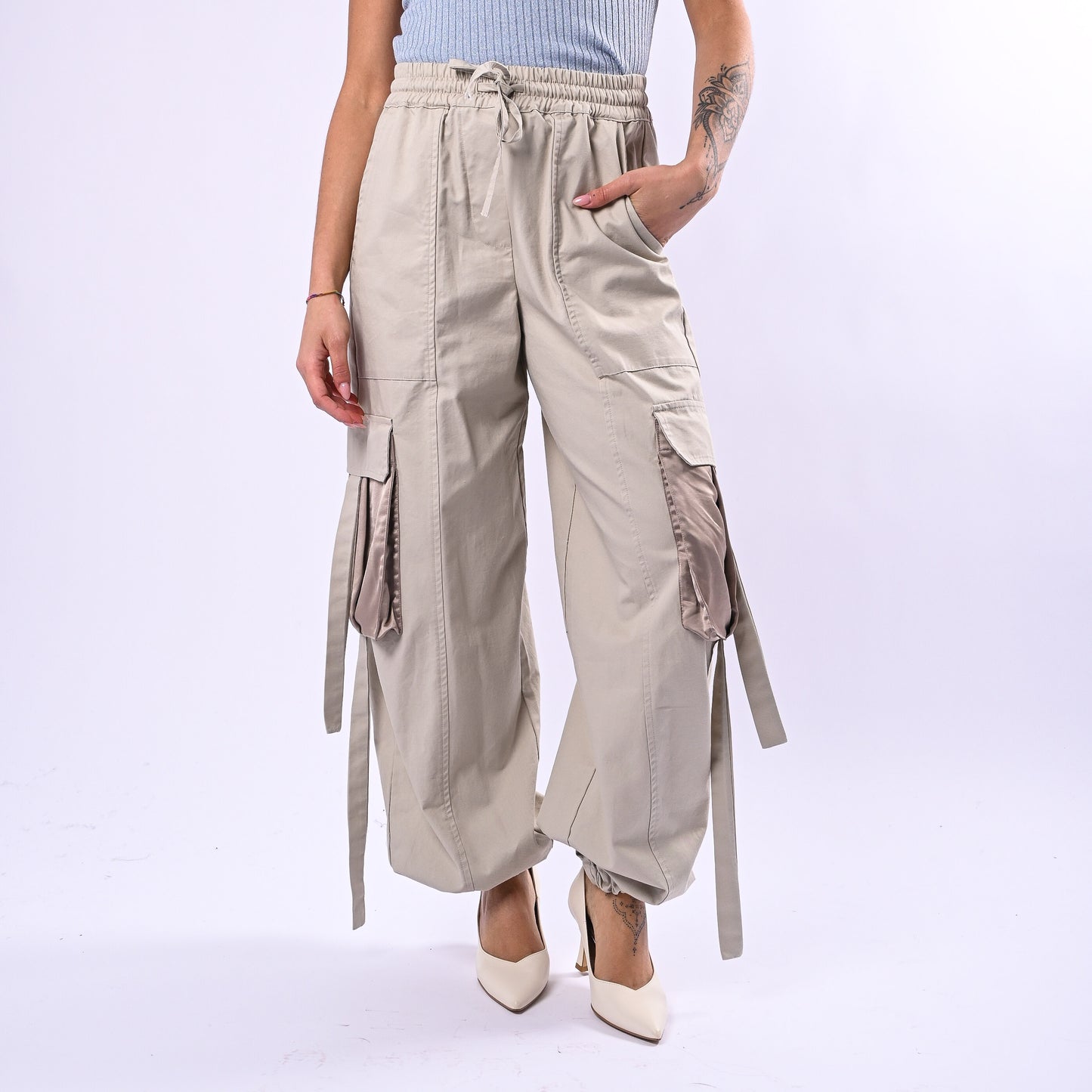 MOTEL - PANTALONE CARGO CON COULISSE ART.38369G - SABBIA