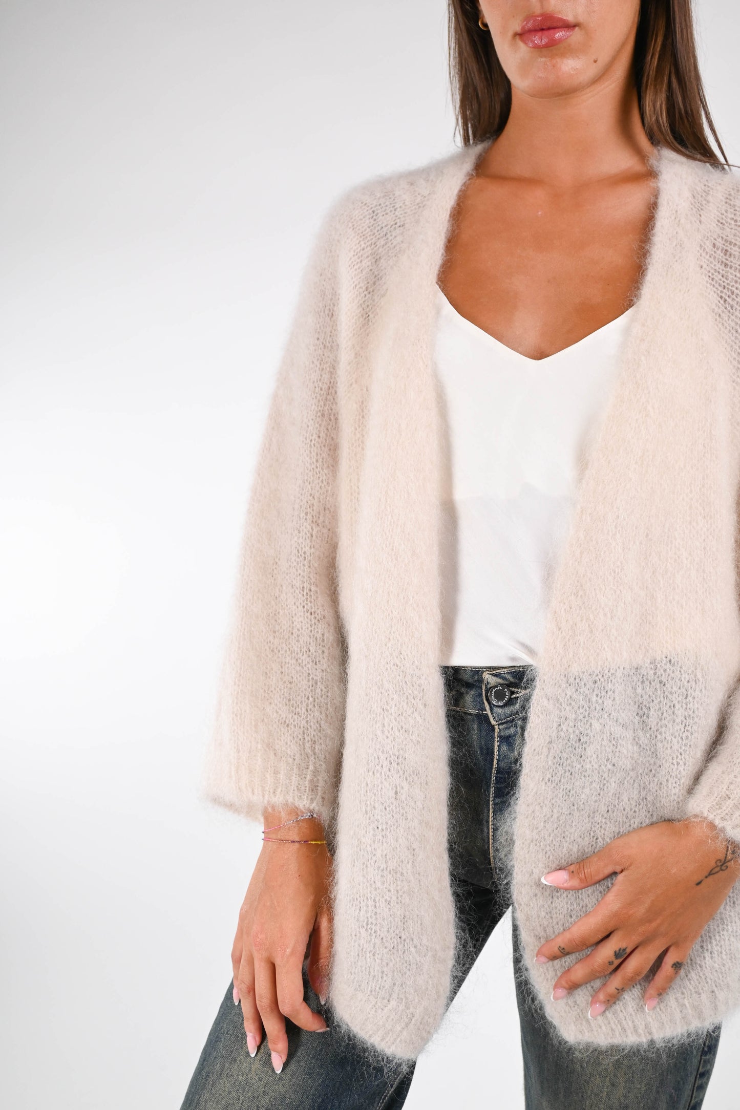 B LOVE - CARDIGAN OVER KID MOHAIR ART. HH24209 - BEIGE
