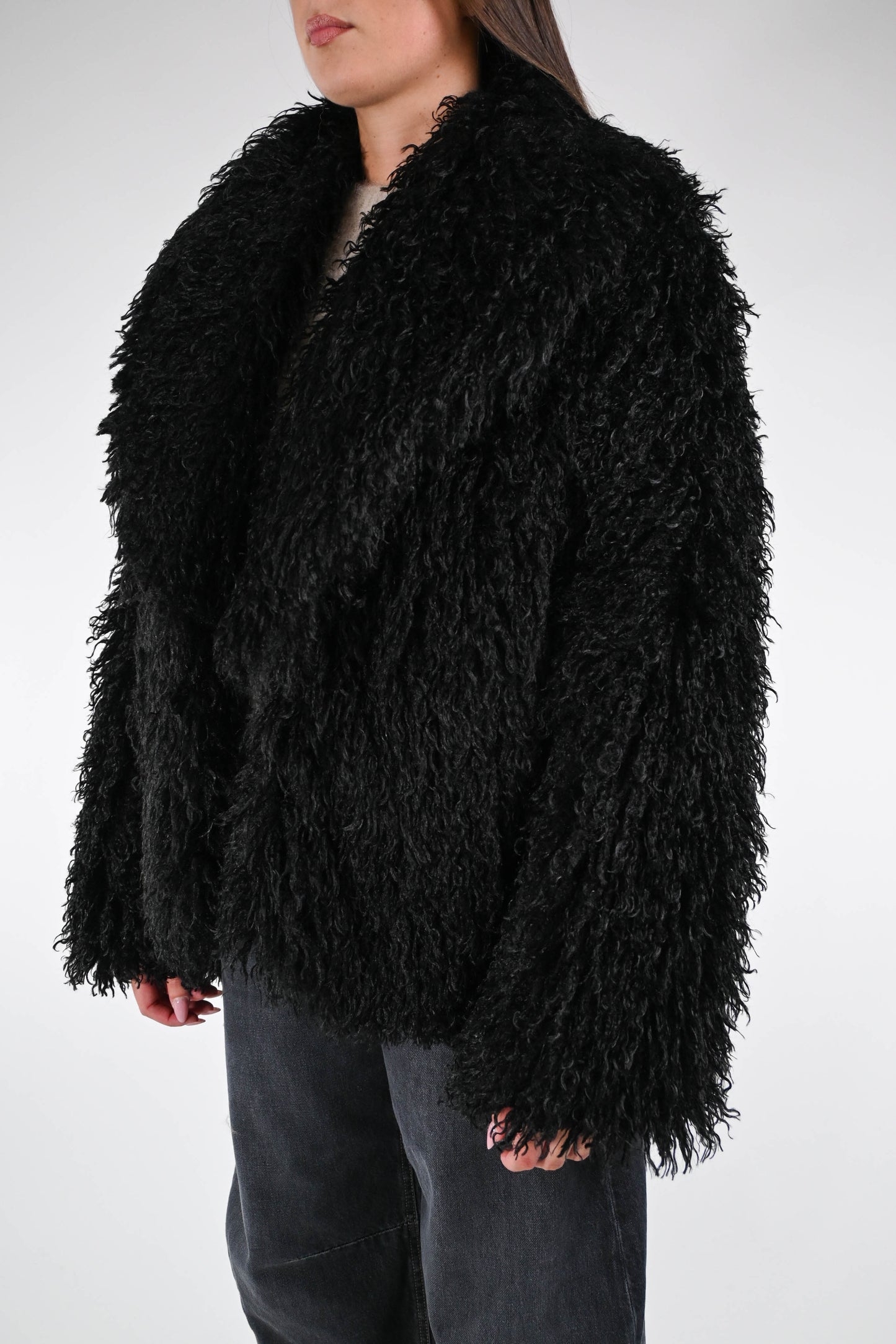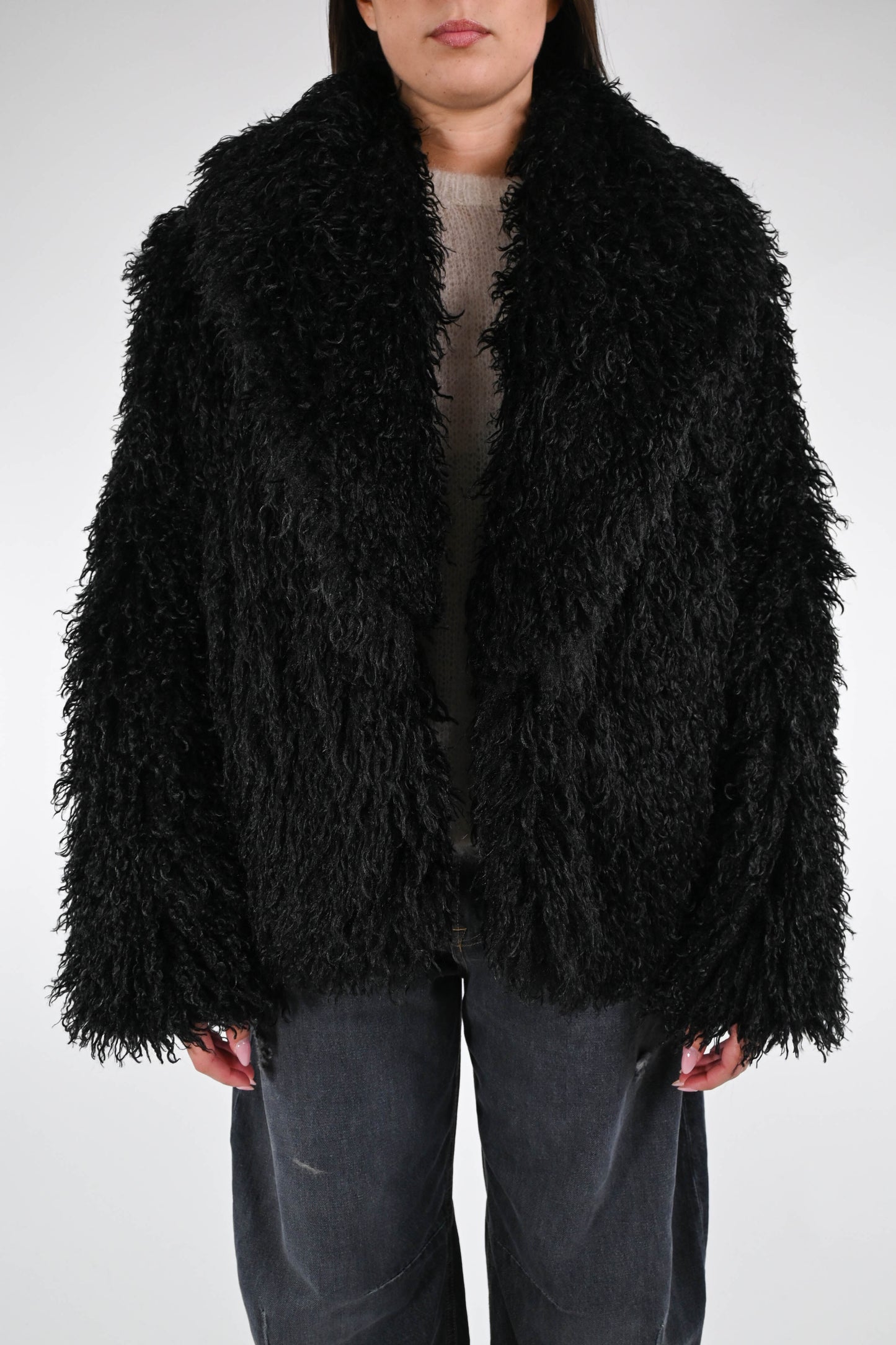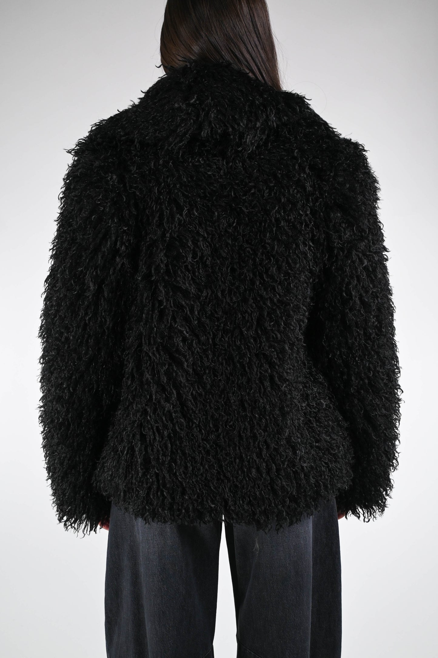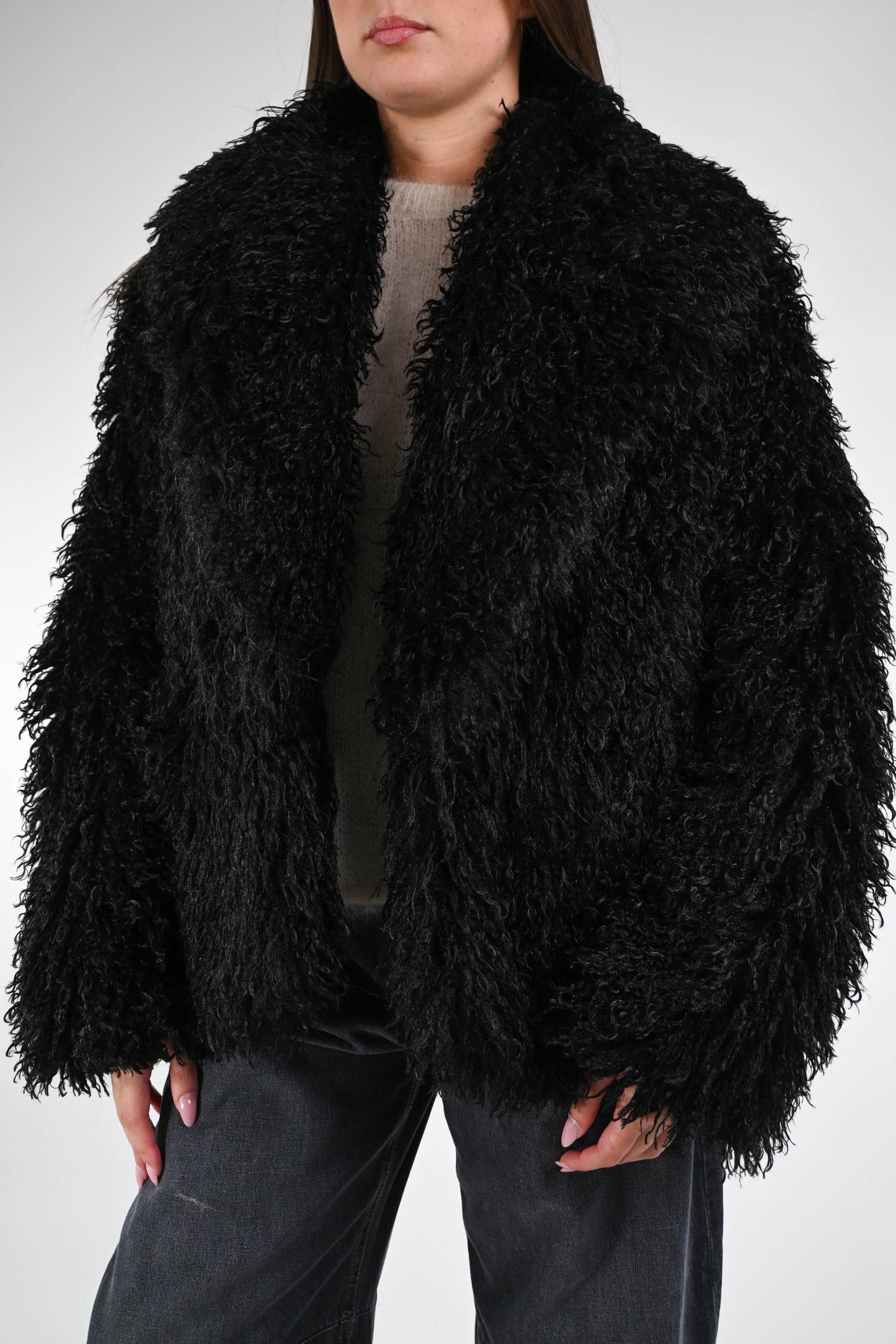 B LOVE - ECOPELLICCIA MONGOLIA CON COLLO SCIALLE ART.6AW006 - NERO