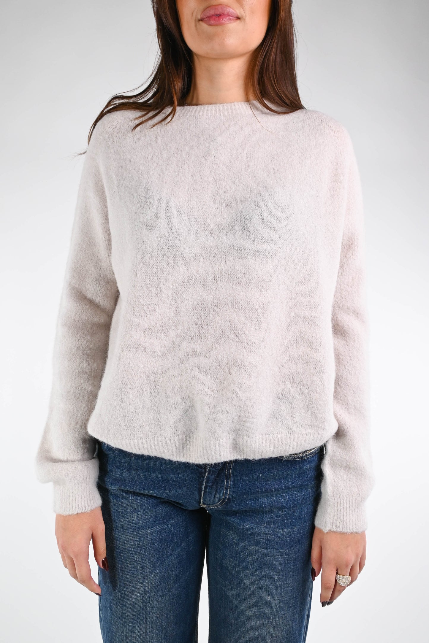 Maglia girocollo baby alpaca, manica lunga, colore Beige