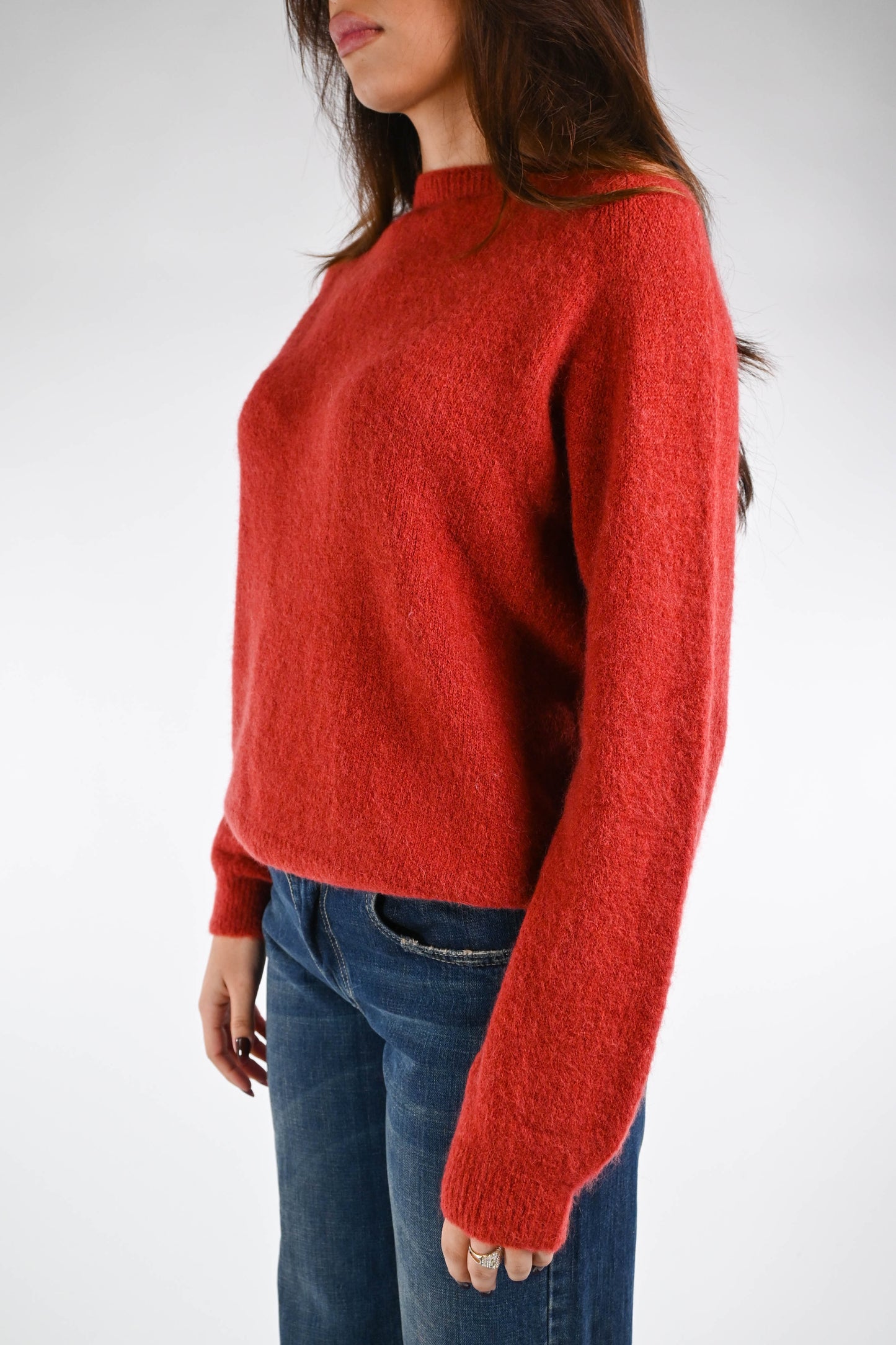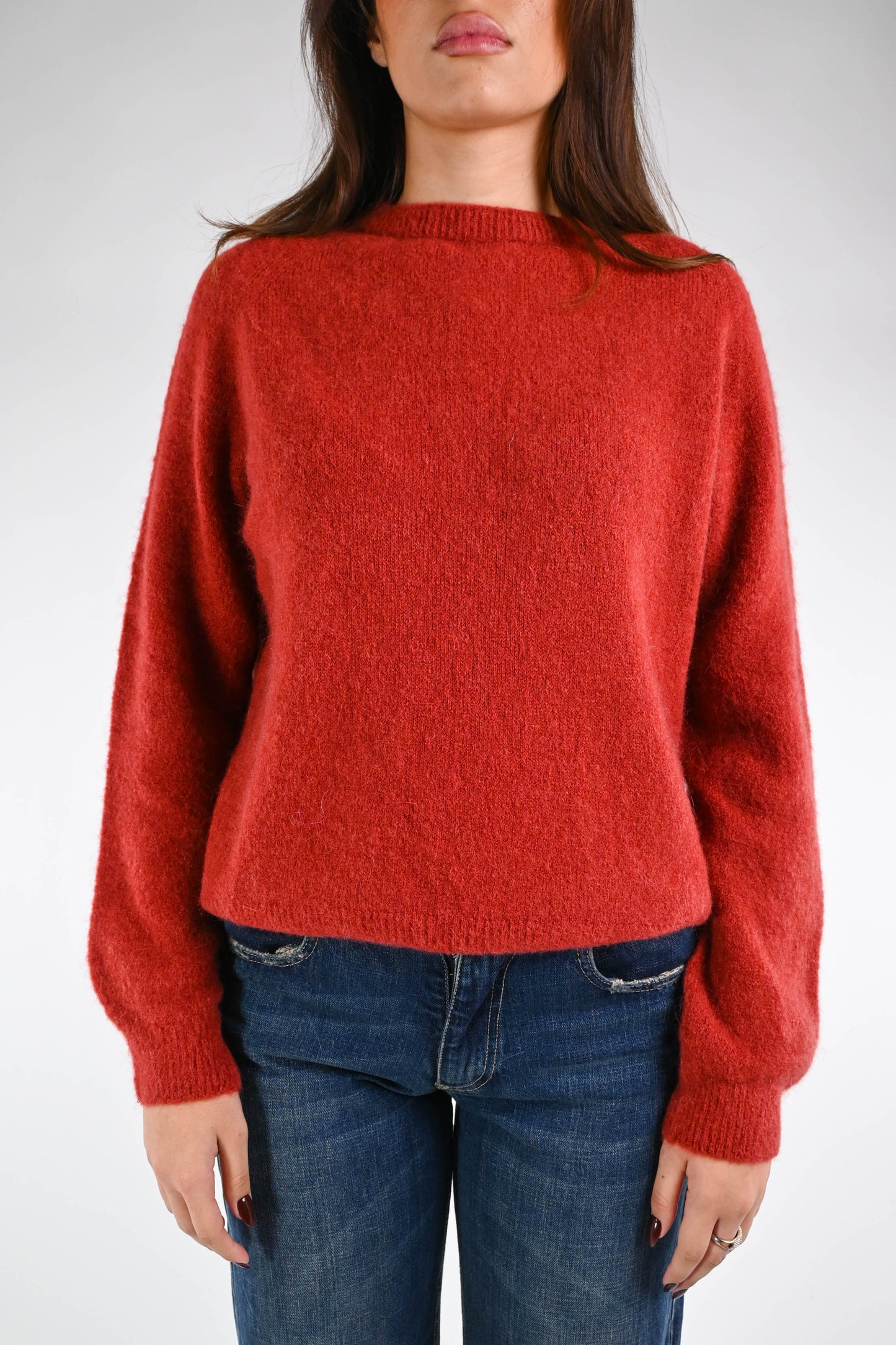 Maglia girocollo baby alpaca, manica lunga, colore Bruciato