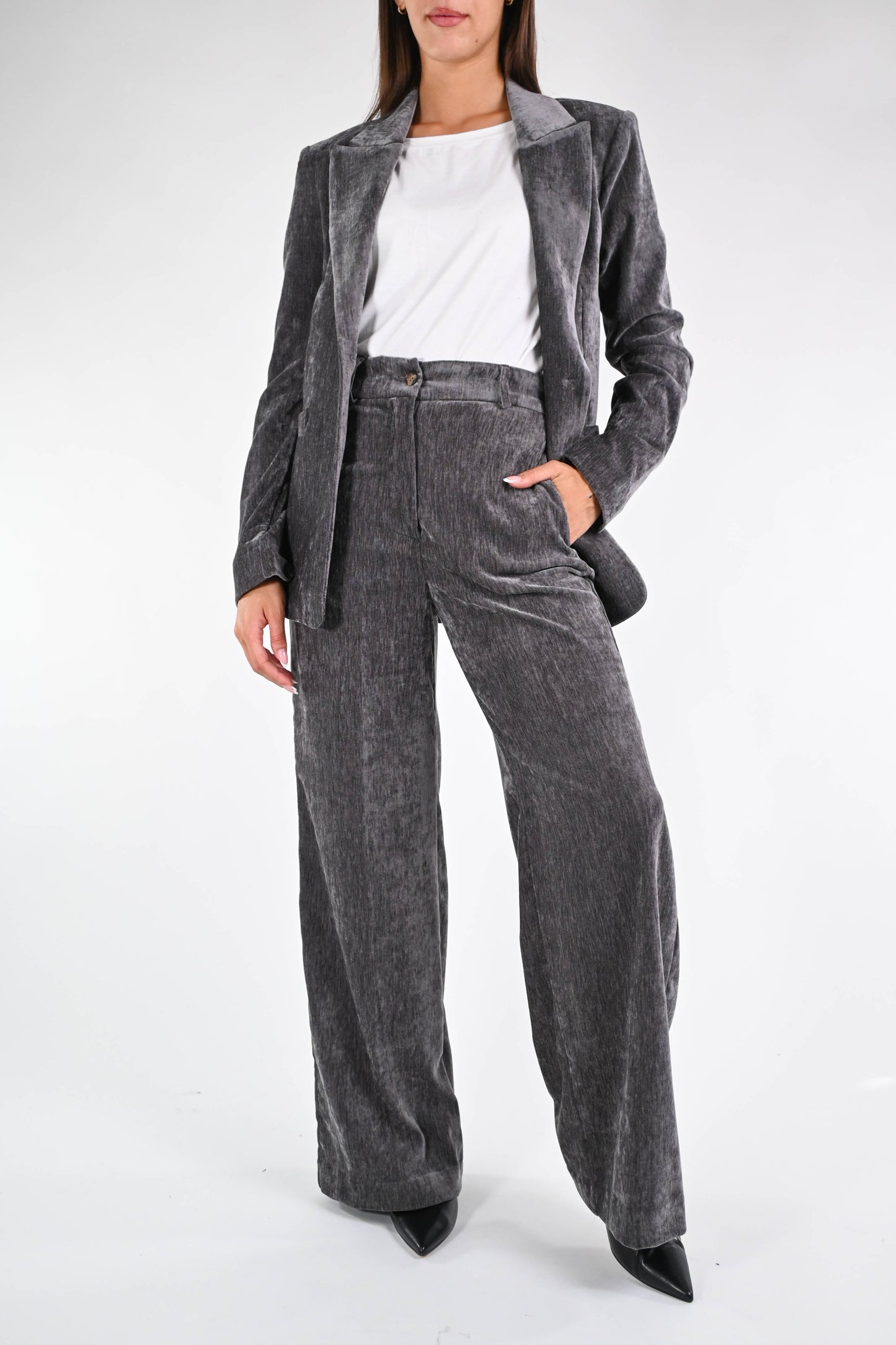 Giacca collo lancia in velluto liscio, ad un bottone, sfoderata, elasticizzata, color piombo