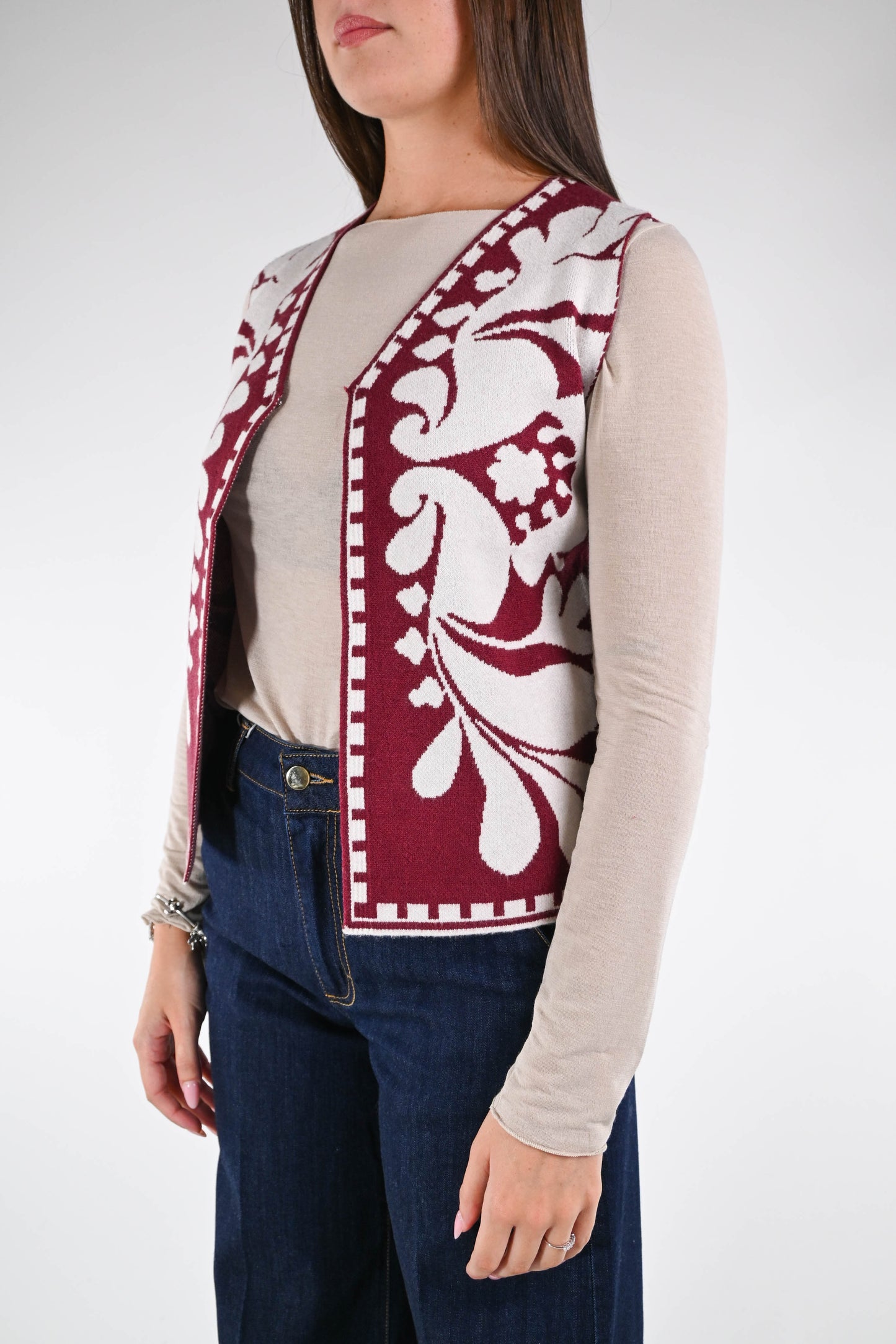 HAVEONE - GILET IN MAGLIA ART.LAY-P012 - DAMASCATO BORDEAUX