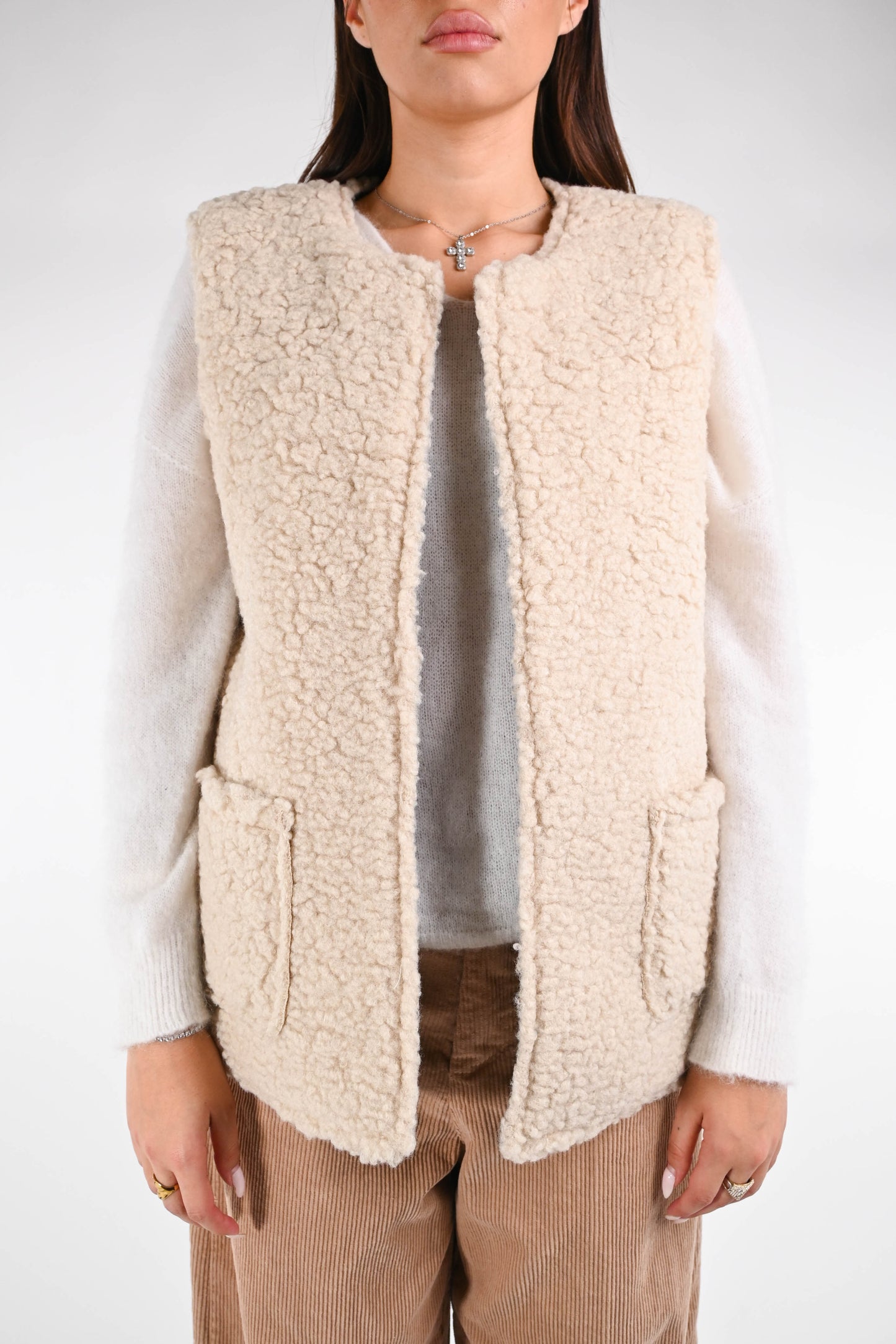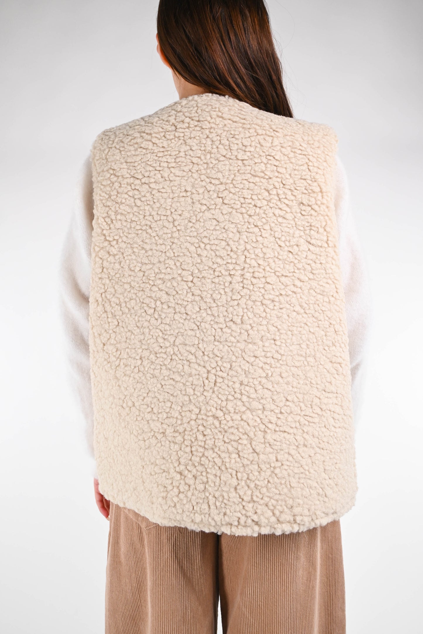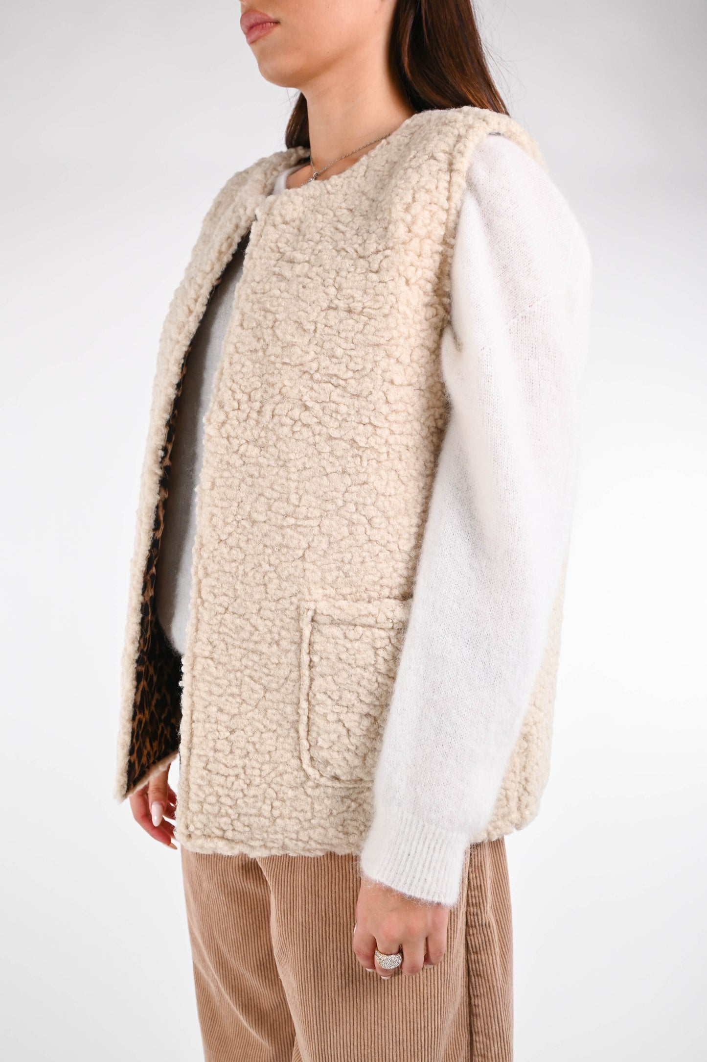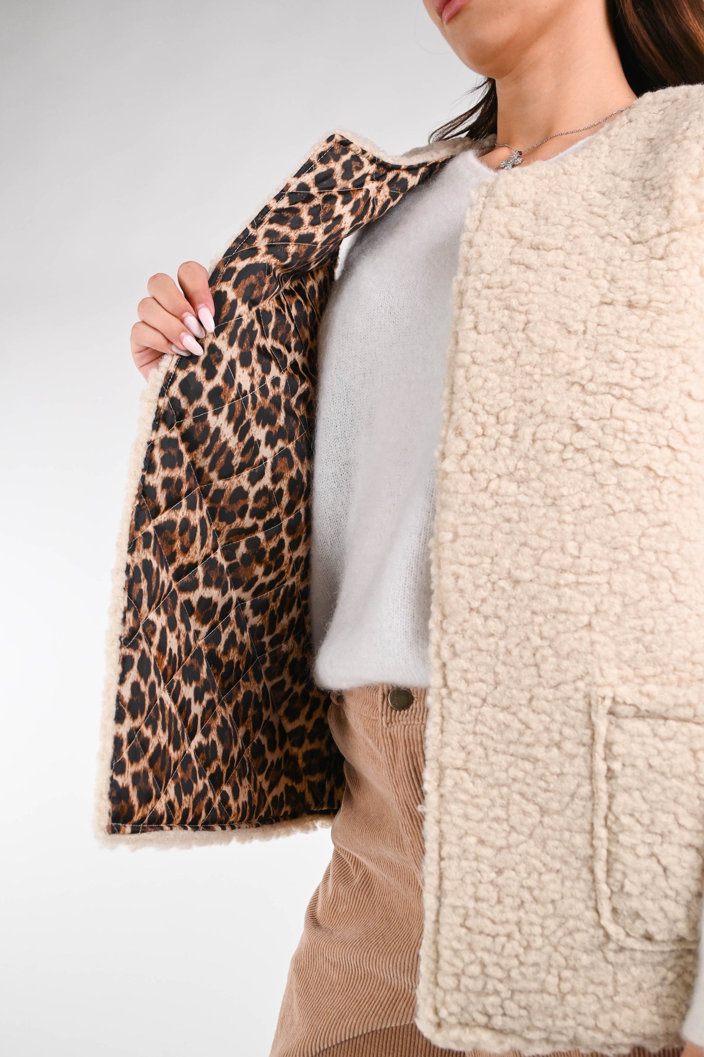 HAVEONE - GILET TEDDY CON FODERA ANIMALIER ART.LFW-P011 - PANNA