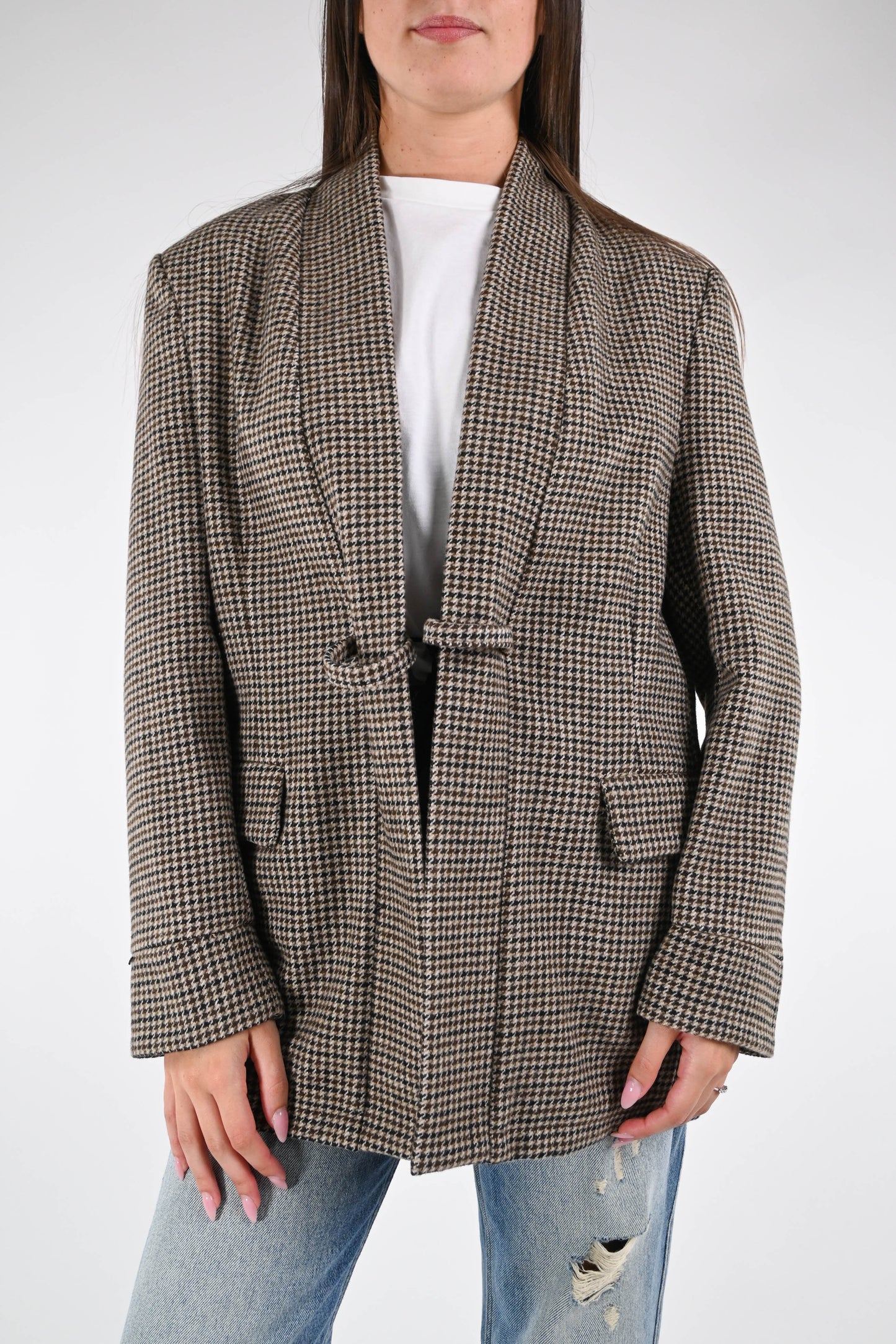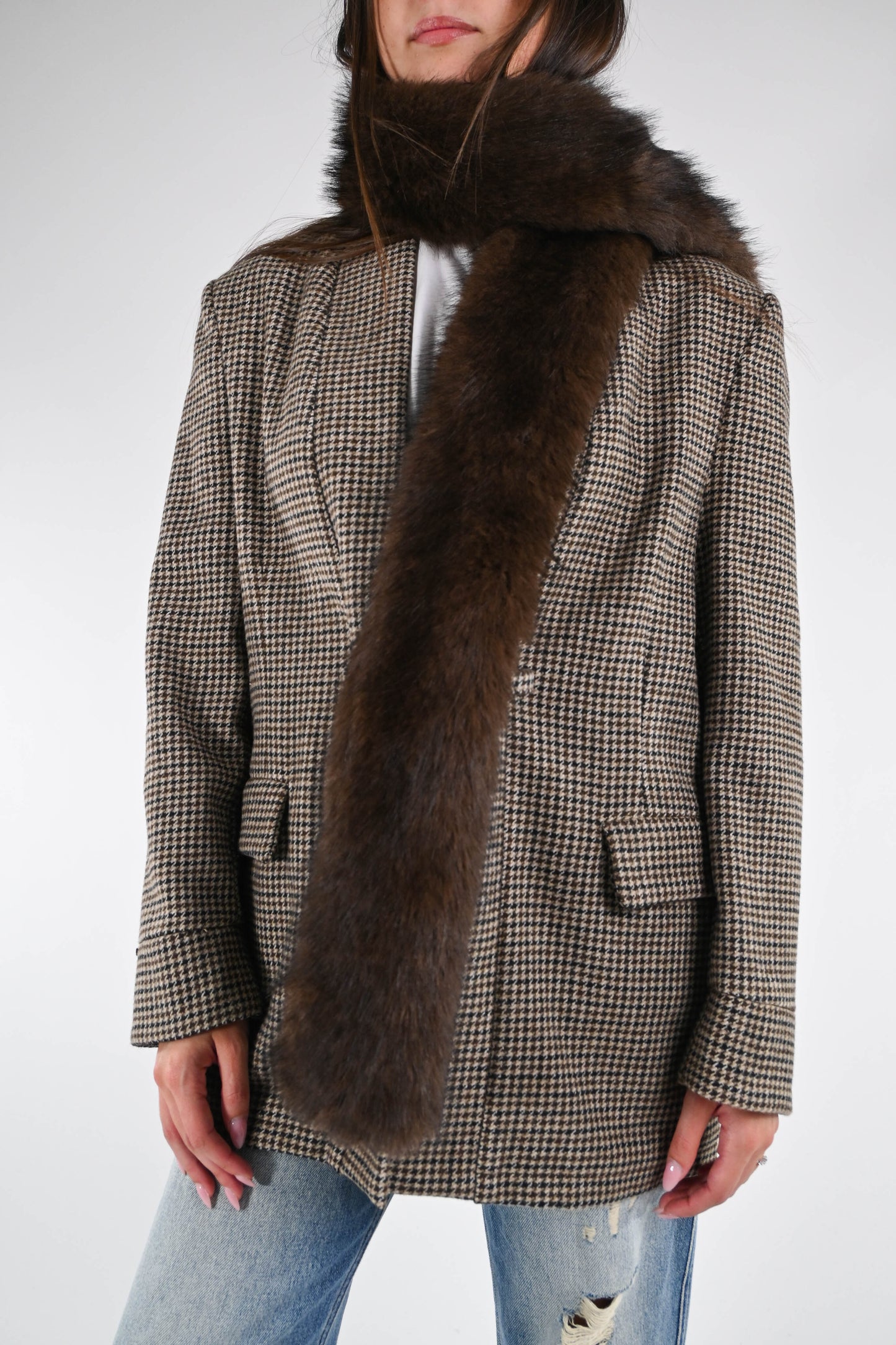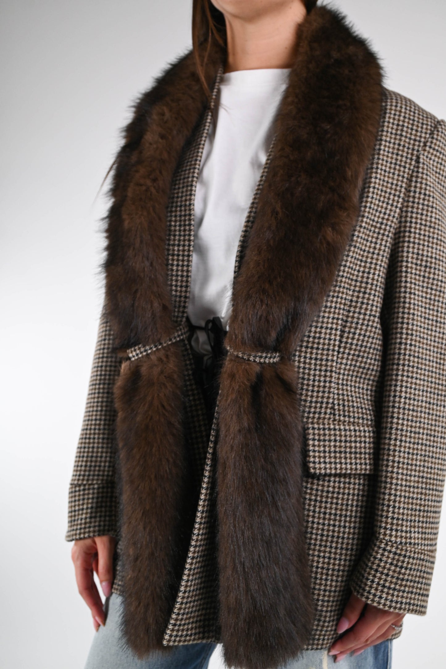 MOTEL - GIACCA PIED DI POULE CON COLLO ECOPELLICCIA ART. W25J522 - BEIGE/TABACCO