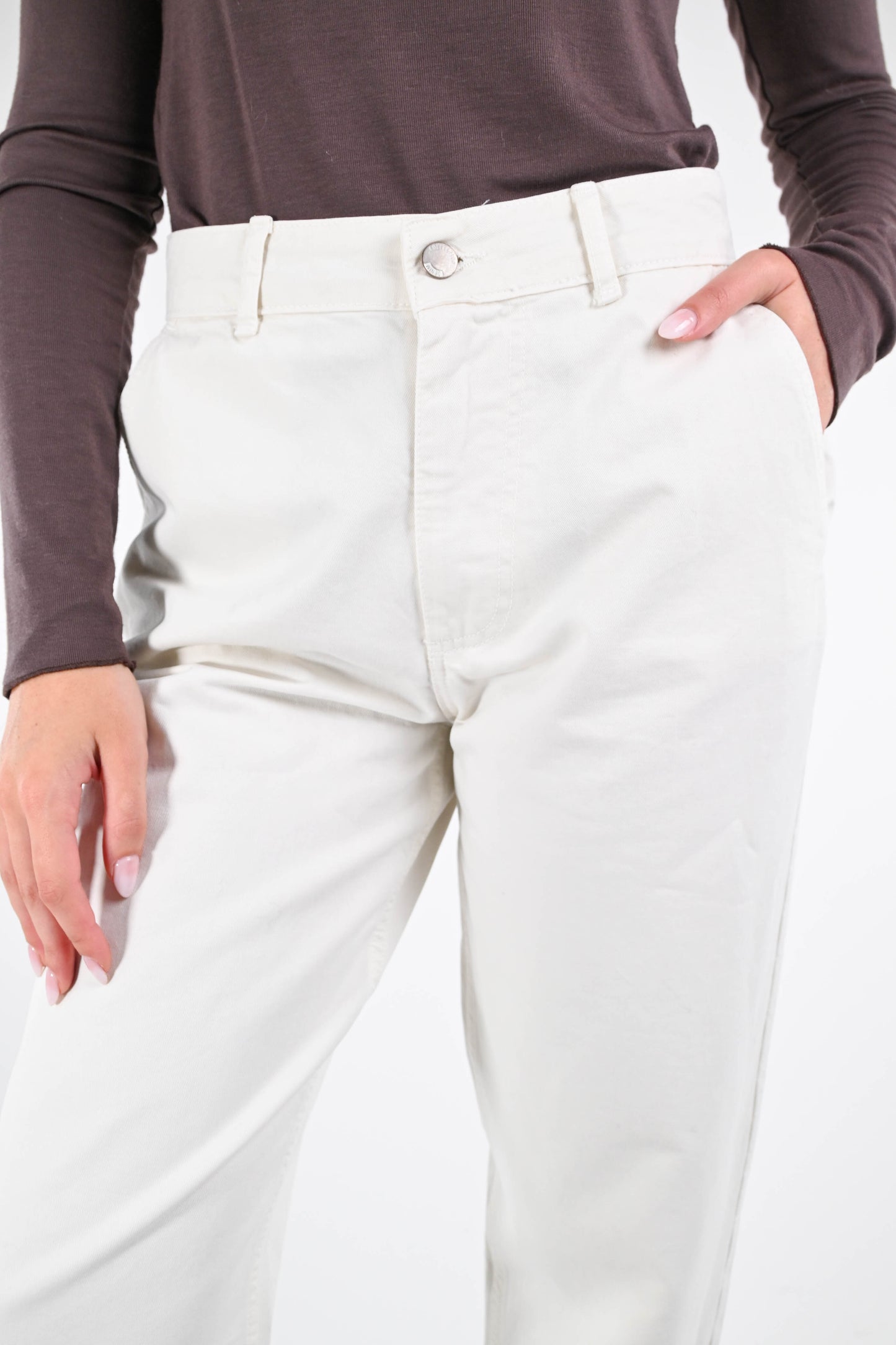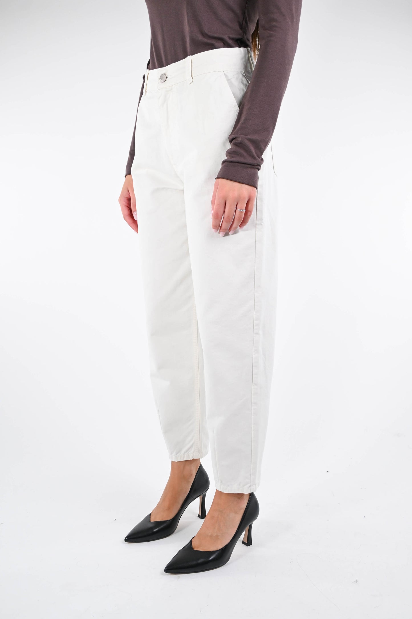 Pantalone chinos baggy, con tasca americana, cucitura sul fondo, colore Latte.