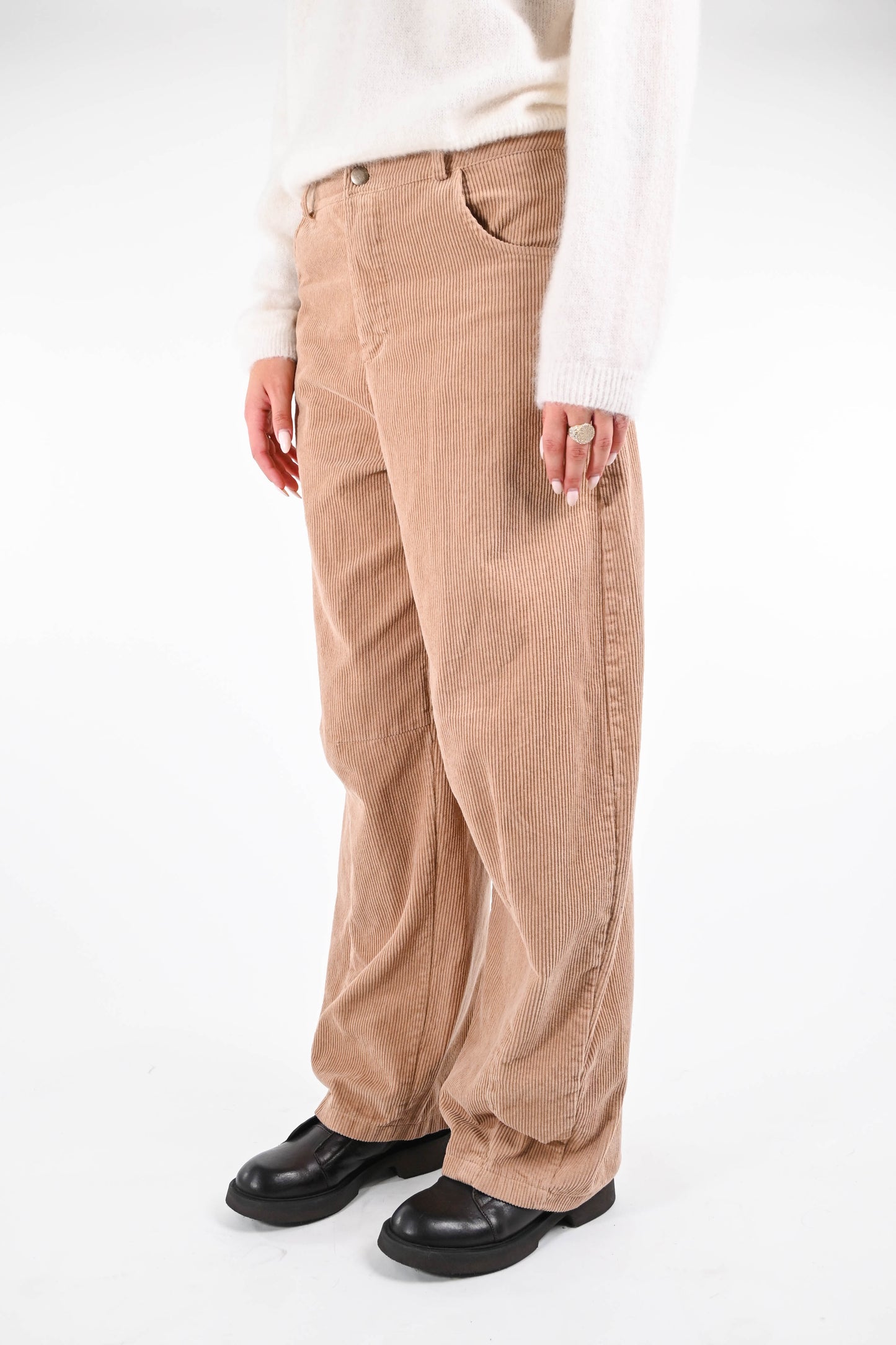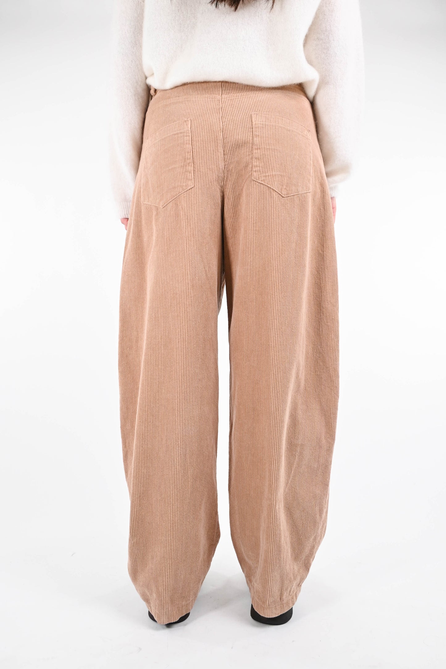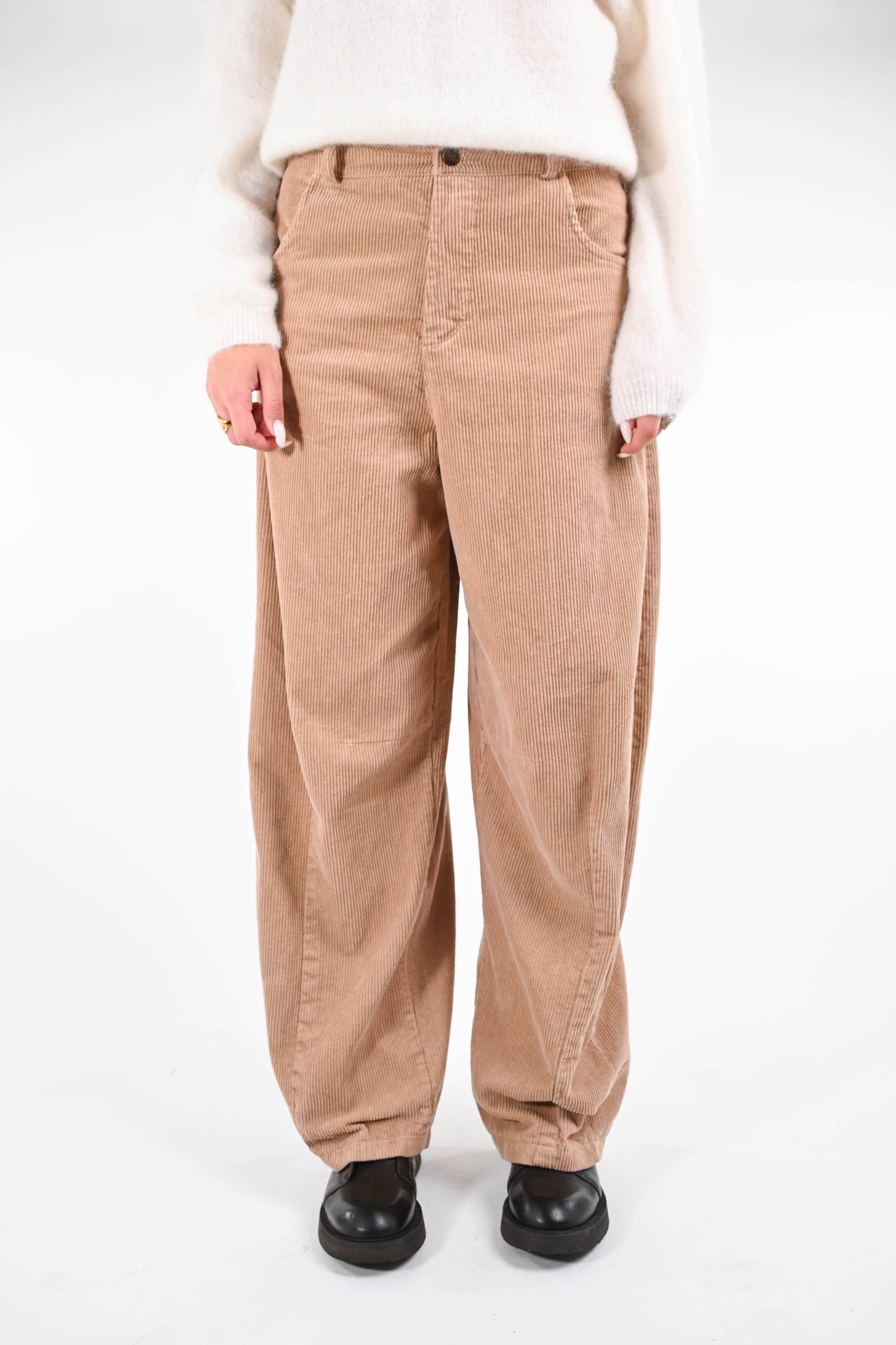 Pantalone balloon in velluto lavato, con cucitura sulle ginocchia, 4 tasche, colore Beige.
