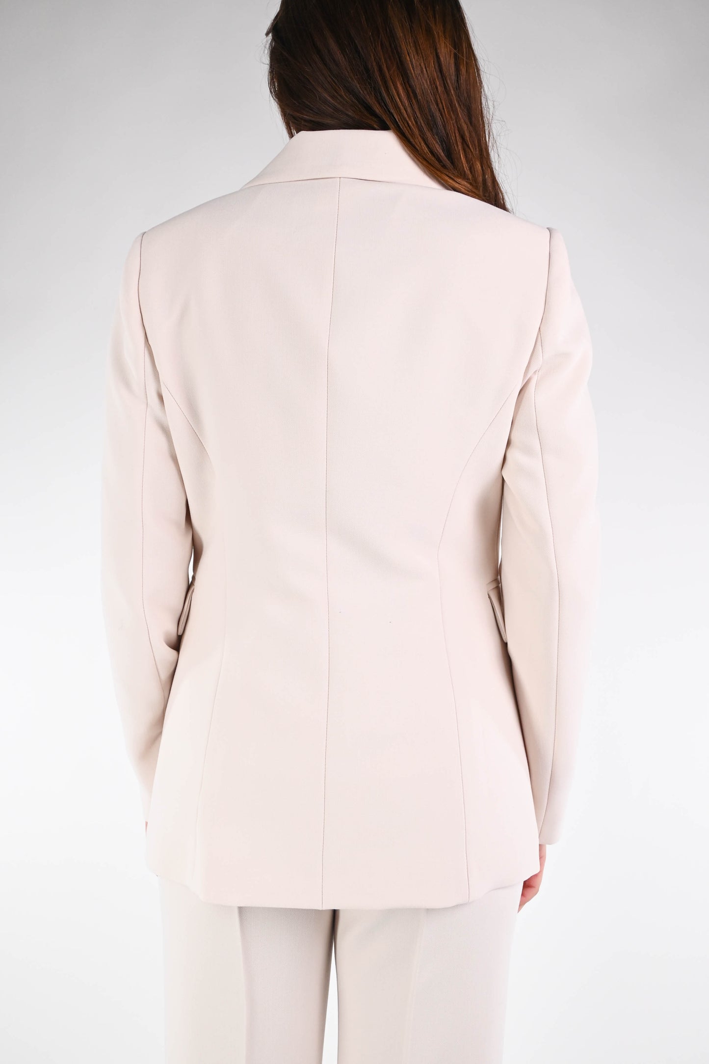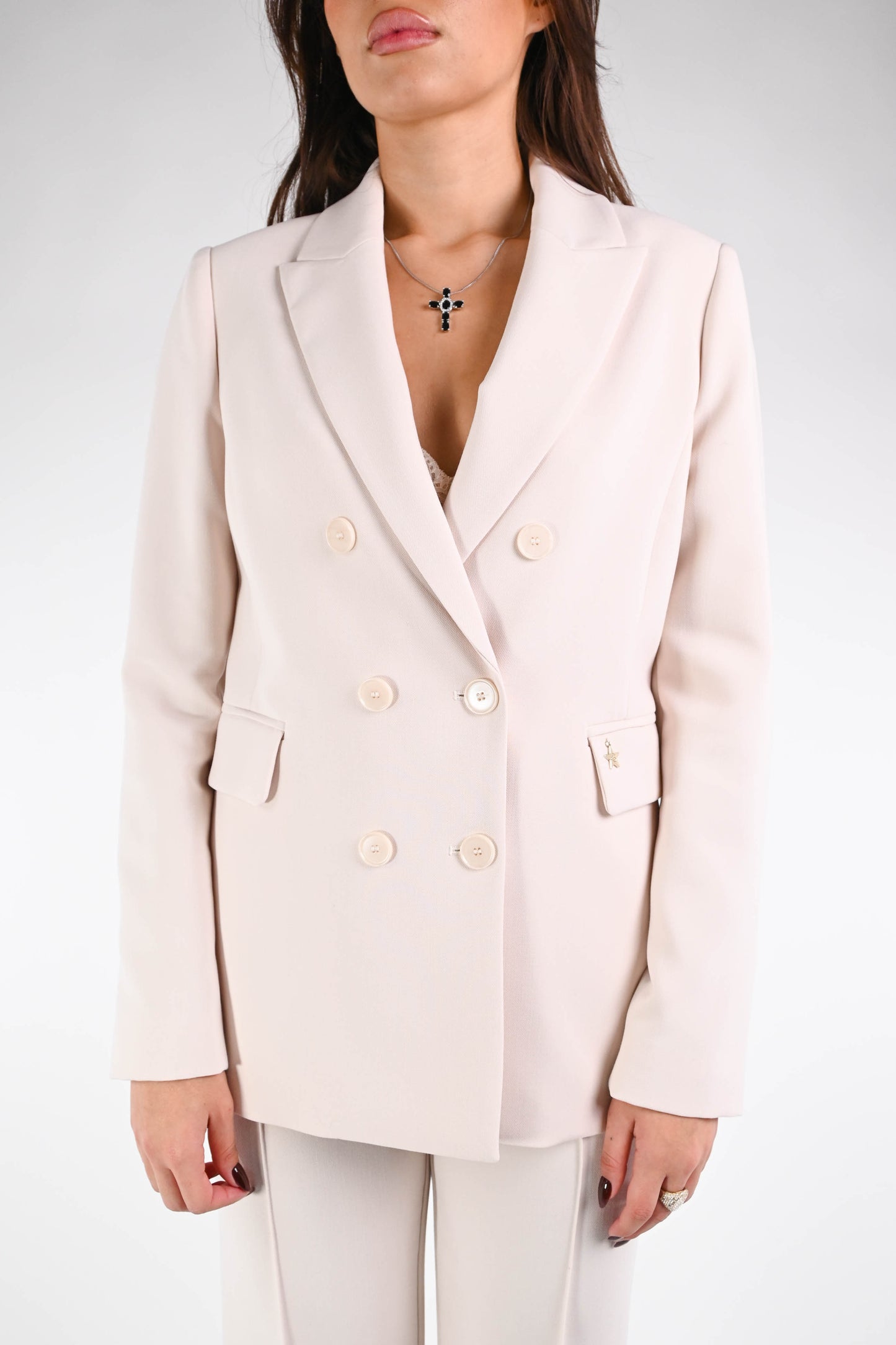 Giacca doppiopetto in drill elasticizzato, foderata, colore crema