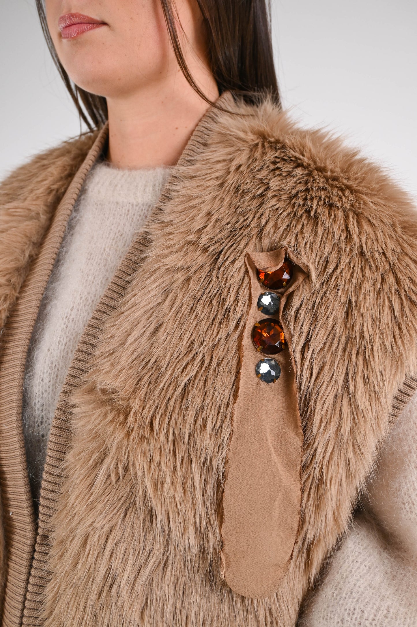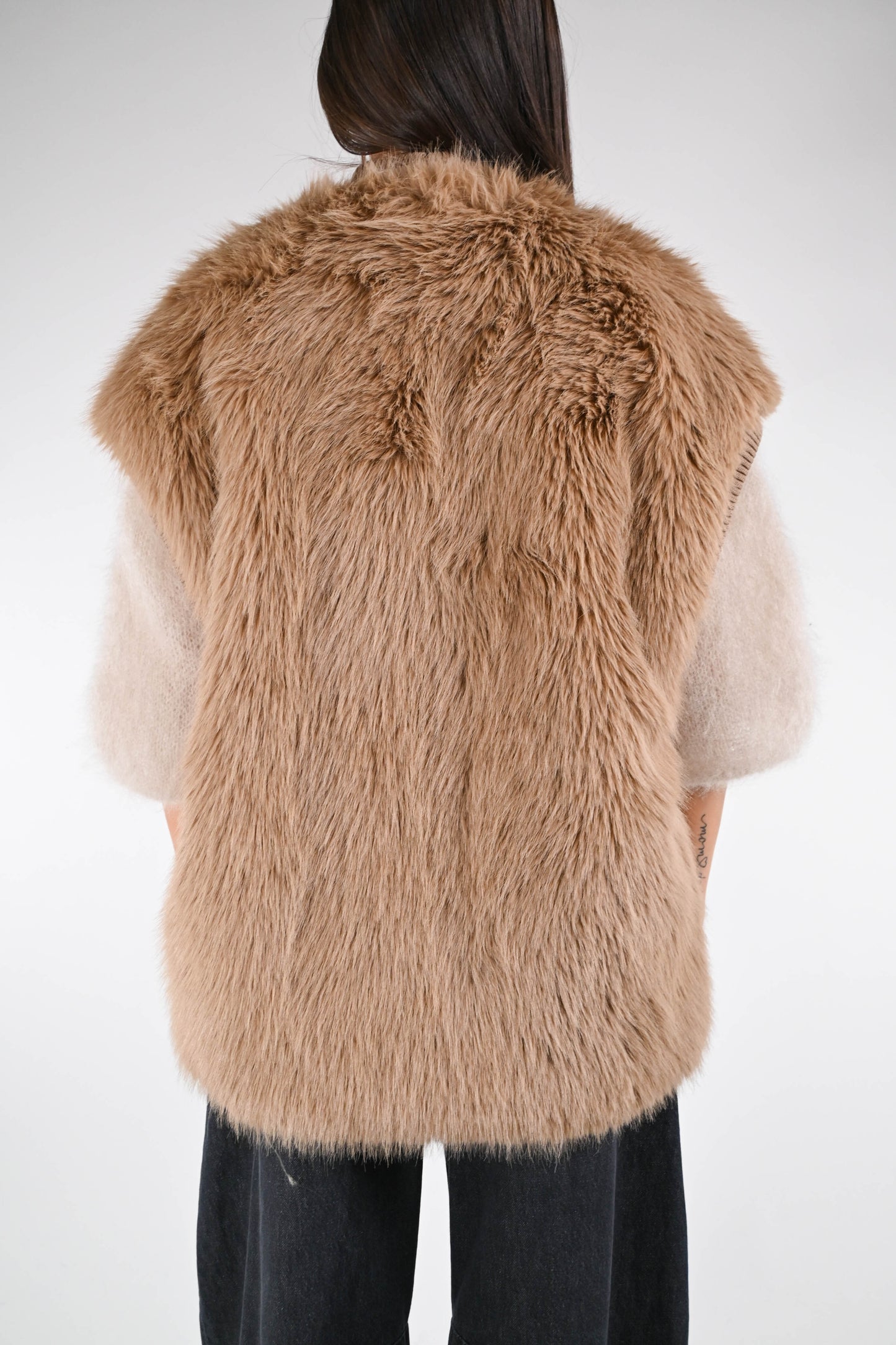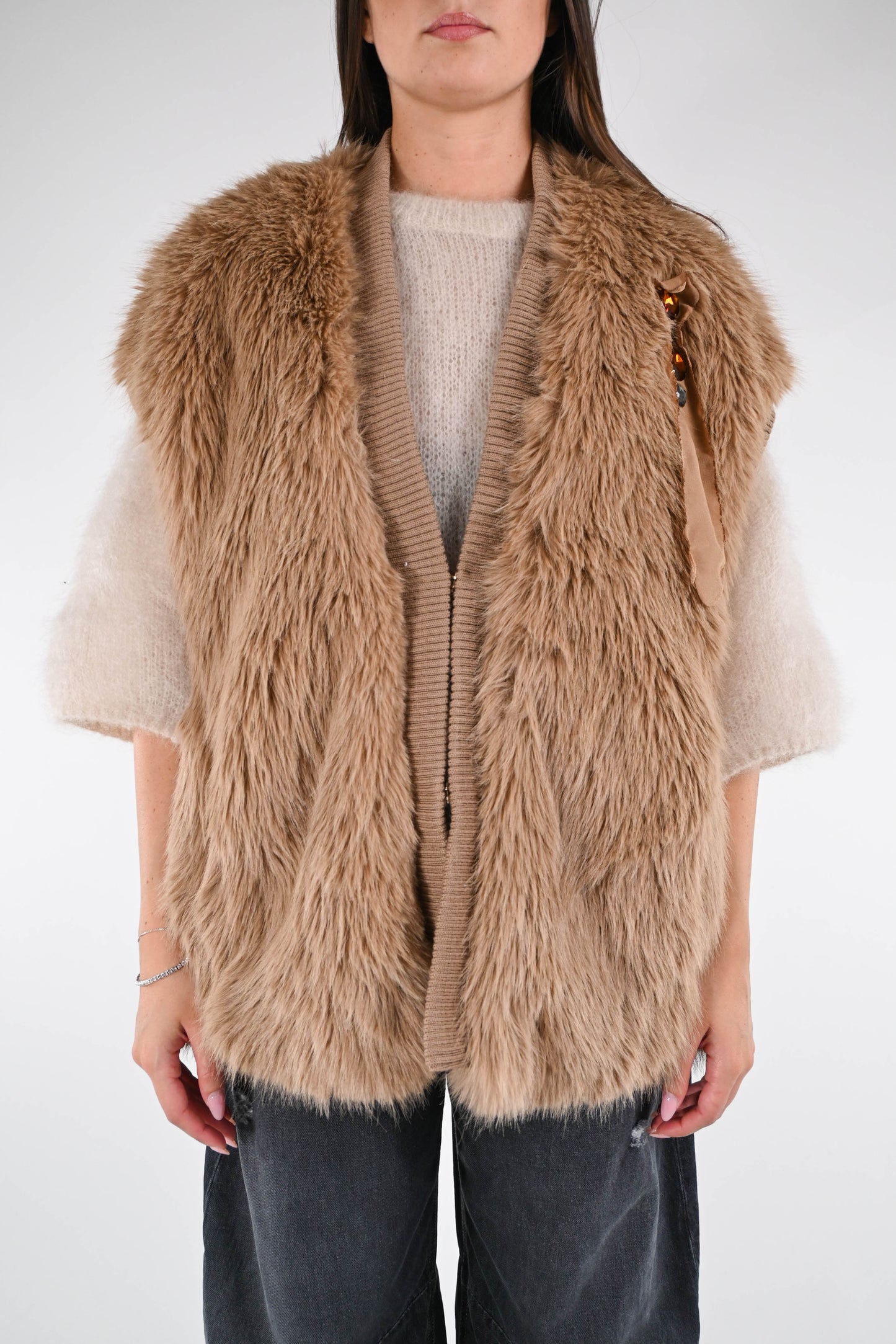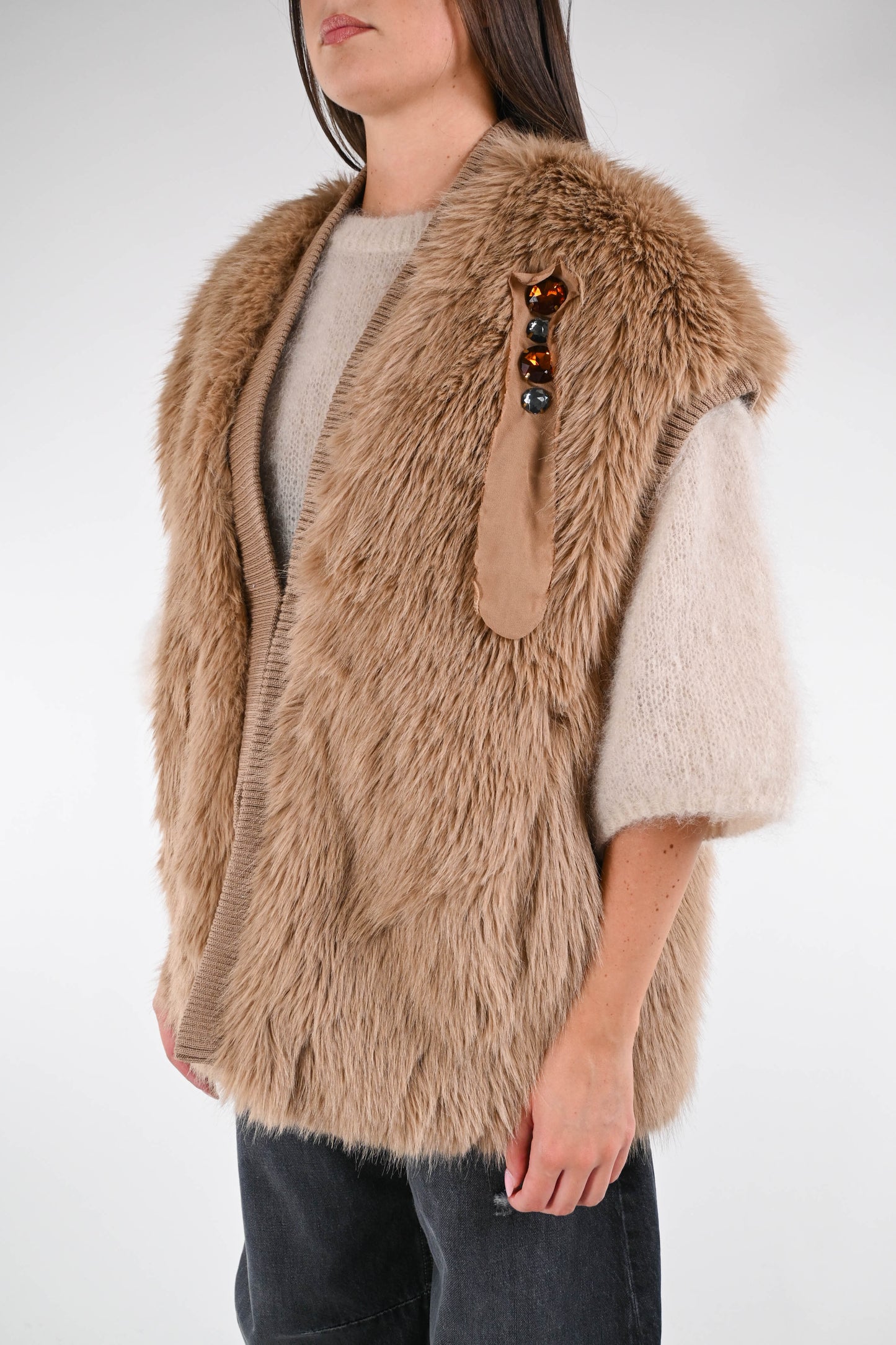 SOUVENIR - GILET ECOPELLICCIA CON PROFILI LANA ART.S38M0107 - MIELE
