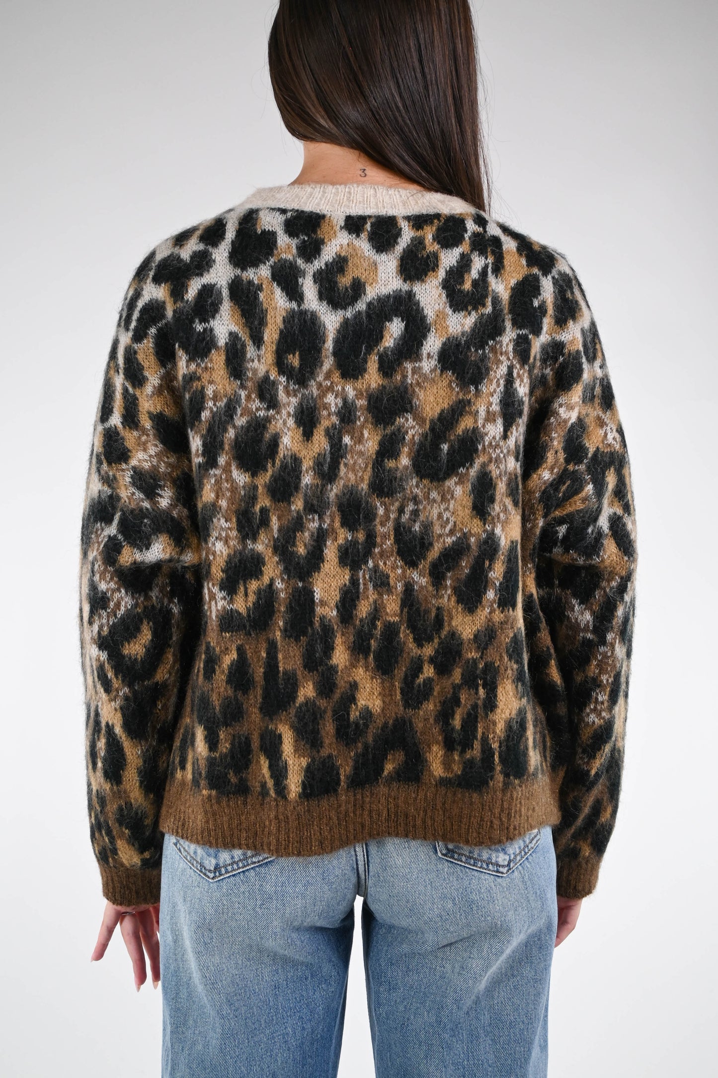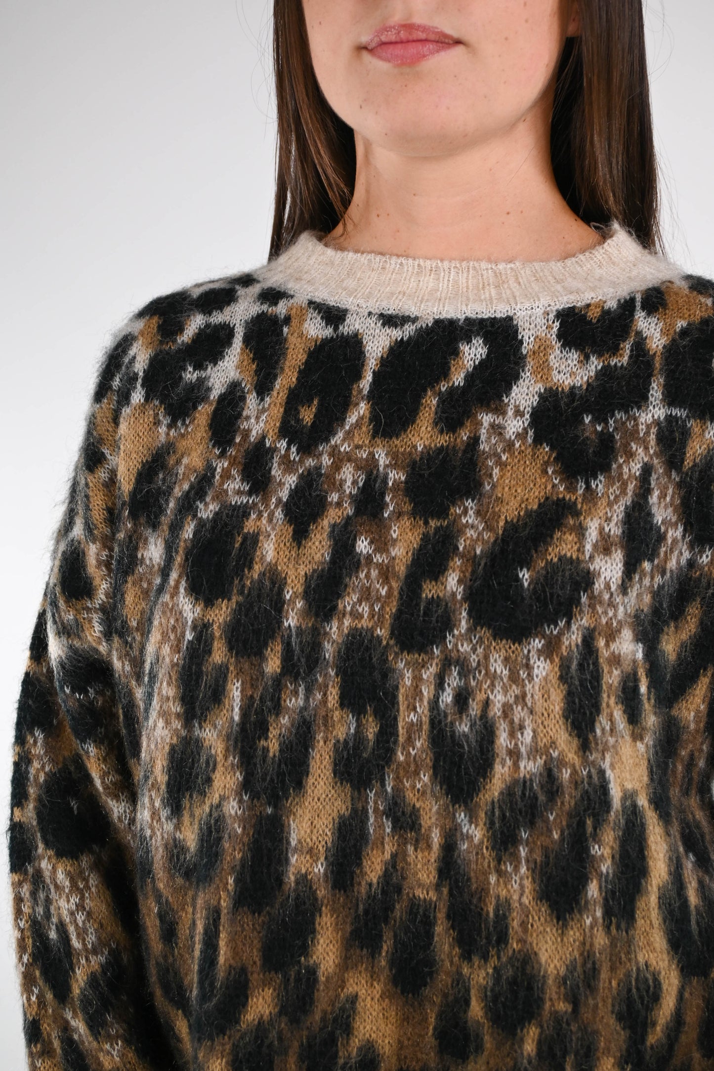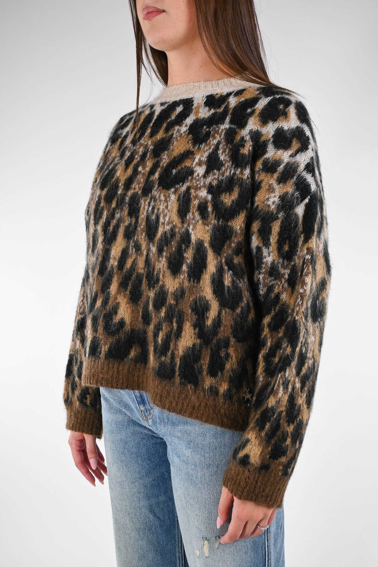 Maglia over maculato in misto mohair, colore tabacco/nero/cammello